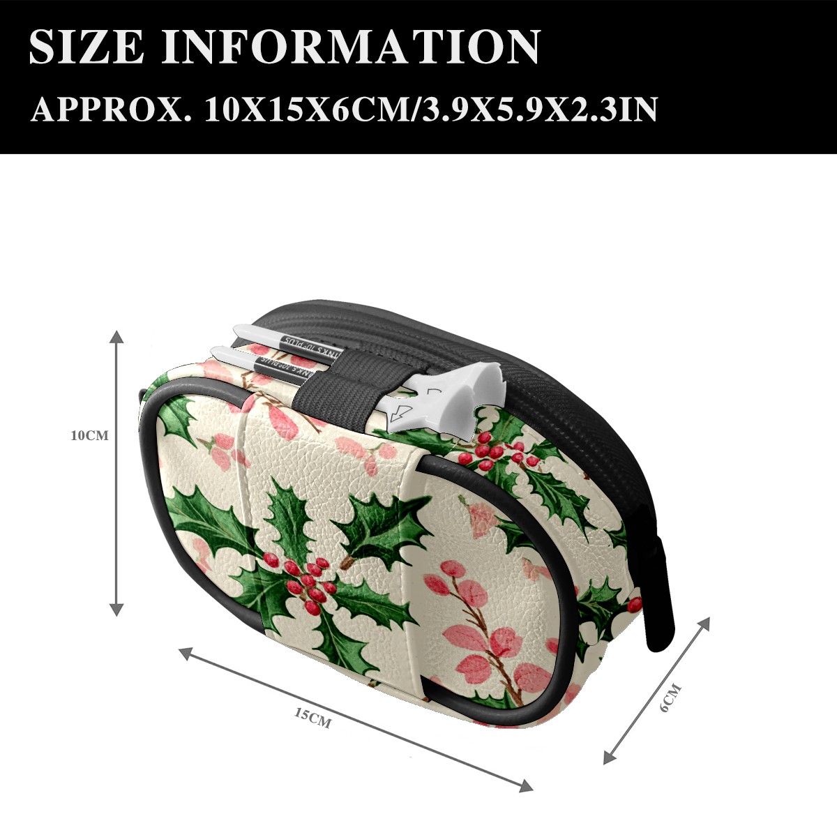 Golf Ball Waist Bag PU Leather Golf Ball Pouch with Belt Clip, Portable Golf Tee Holder & Golf Accessories for Men Women, Golfing Fanny Pack for Balls Tees Valuables (Holly Leaves)