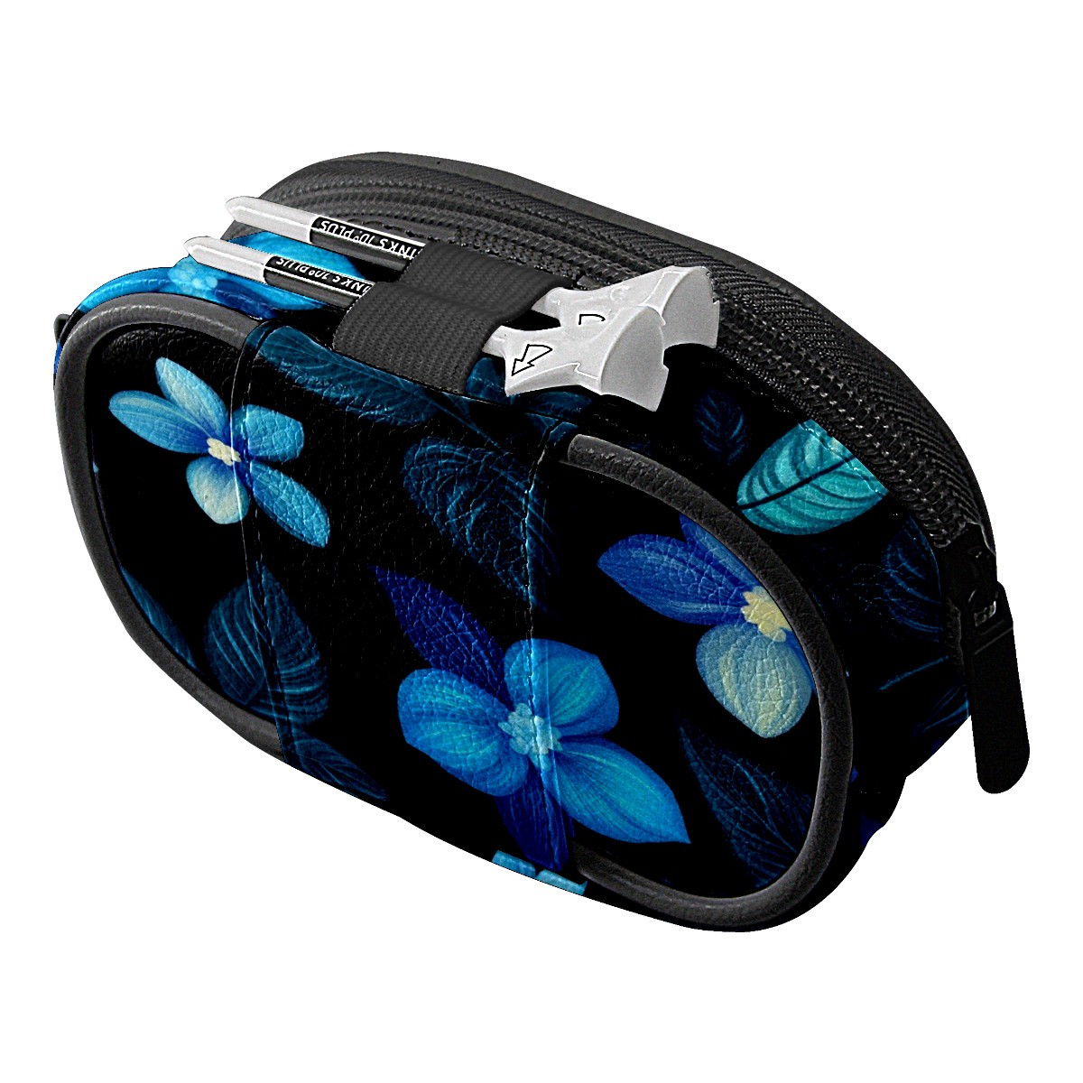 Golf Ball Waist Bag PU Leather Golf Ball Pouch with Belt Clip, Portable Golf Tee Holder & Golf Accessories for Men Women, Golfing Fanny Pack for Balls Tees Valuables (Blue And Teal Flowers)