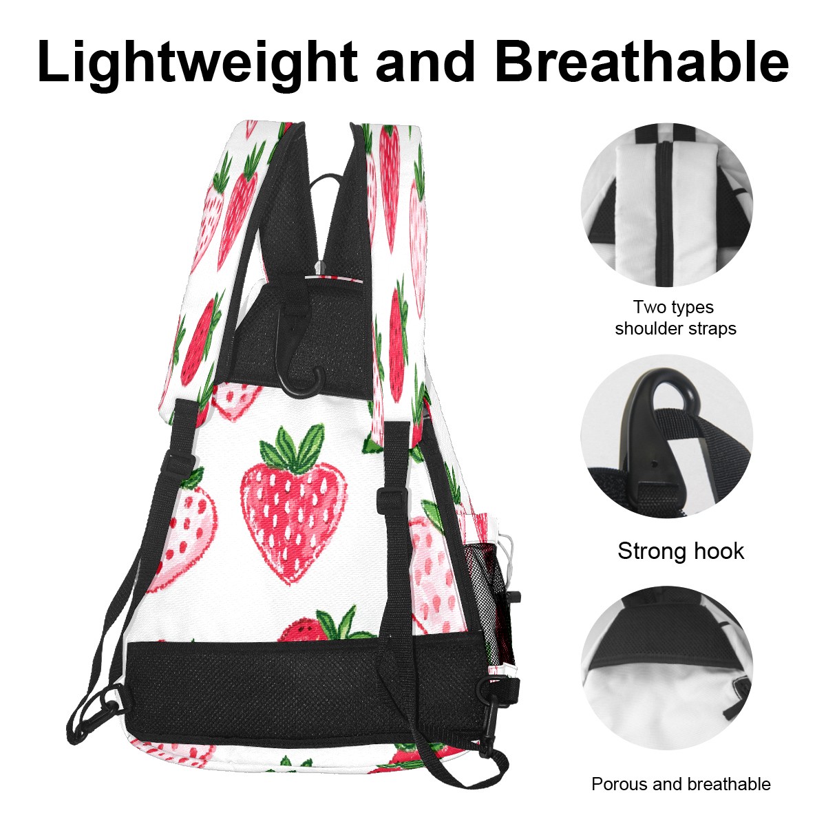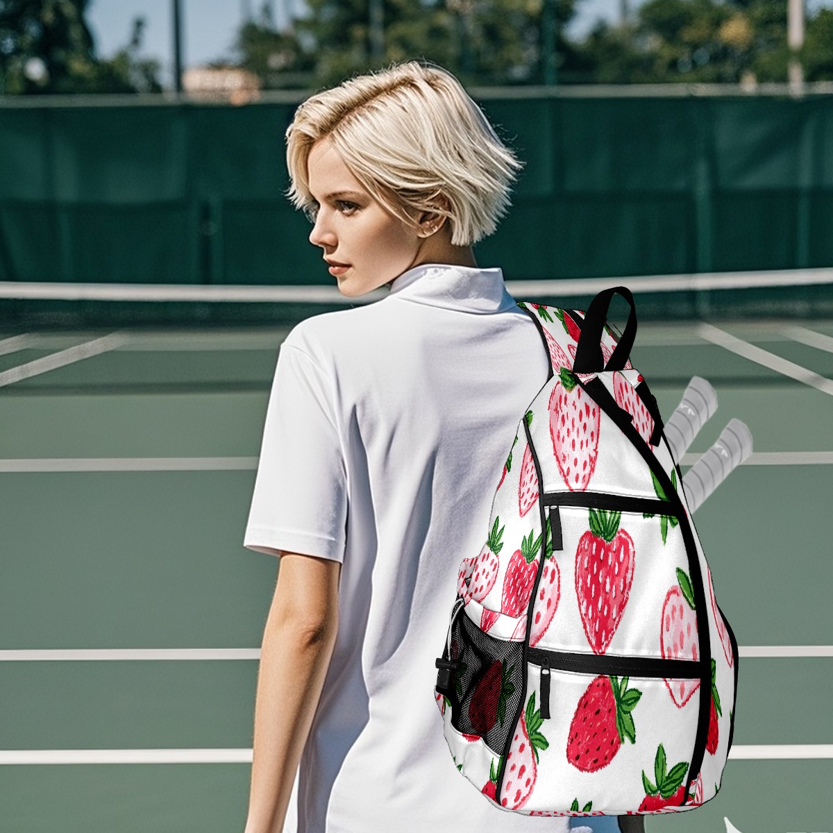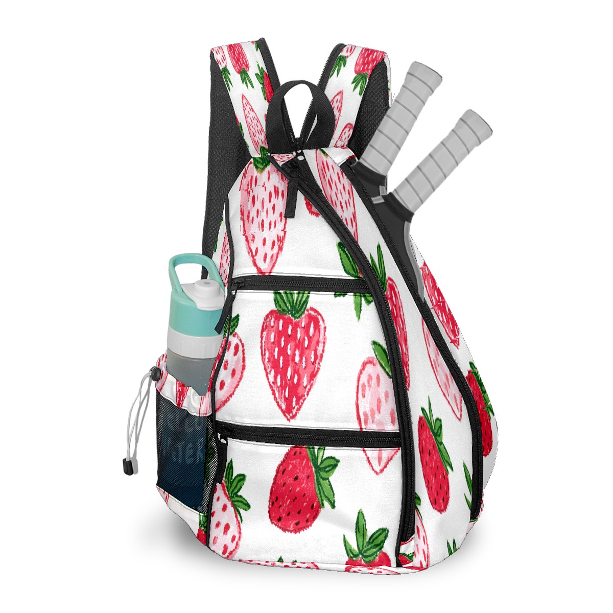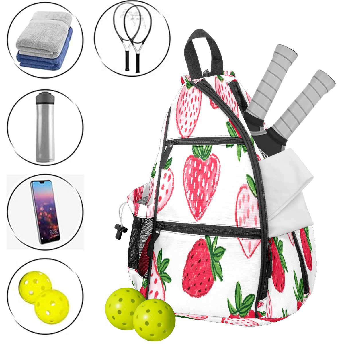Pickleball Backpack for Women and Men, Adjustable Pickleball Sling Bag for Paddles, Balls & Accessories (Strawberry Hearts)