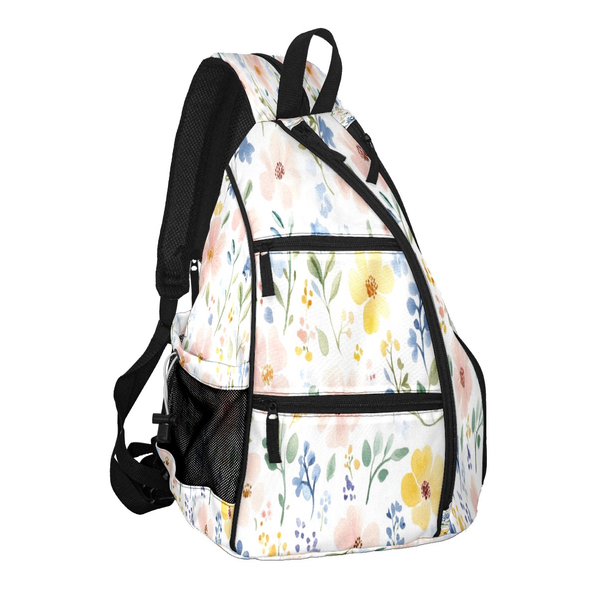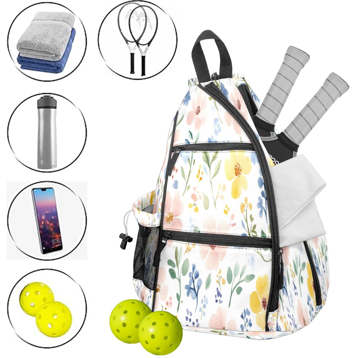 Pickleball Backpack for Women and Men, Adjustable Pickleball Sling Bag for Paddles, Balls & Accessories (Watercolor Floral)