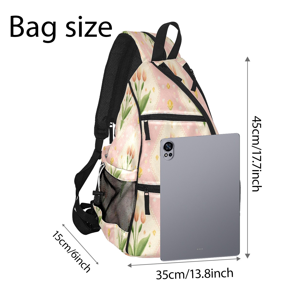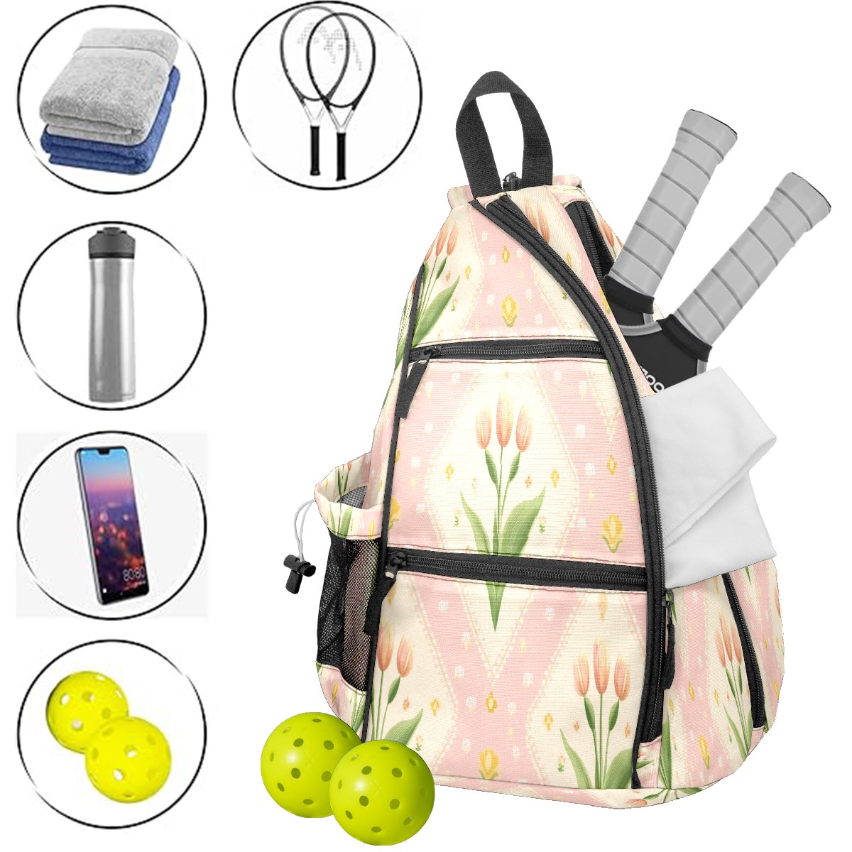 Pickleball Backpack for Women and Men, Adjustable Pickleball Sling Bag for Paddles, Balls & Accessories (Small Tulips)