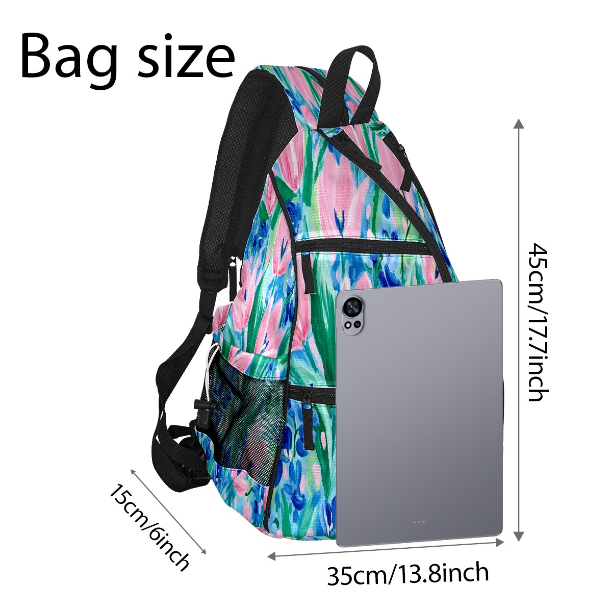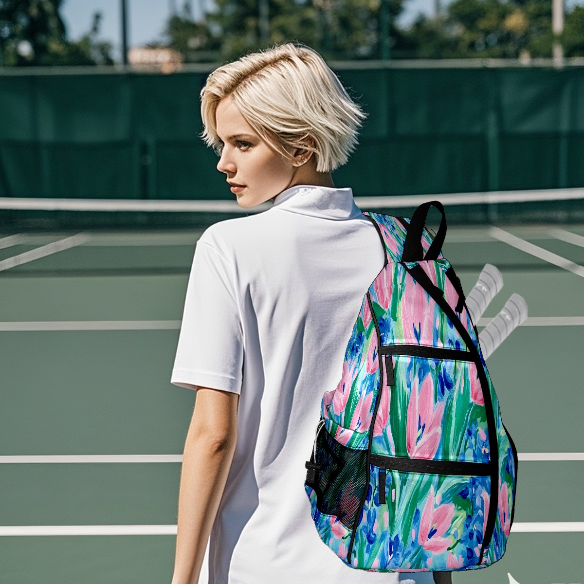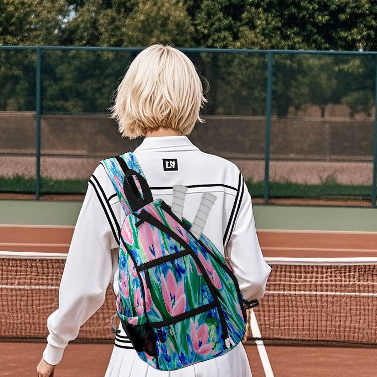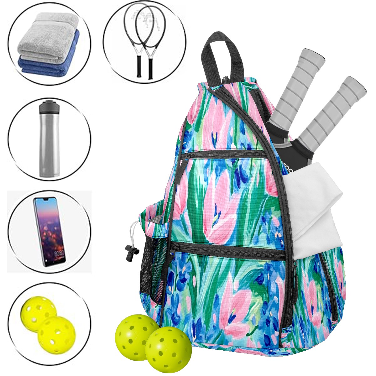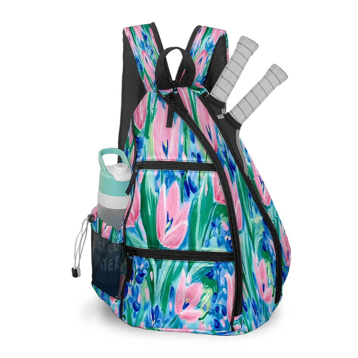 Pickleball Backpack for Women and Men, Adjustable Pickleball Sling Bag for Paddles, Balls & Accessories (Tulips)