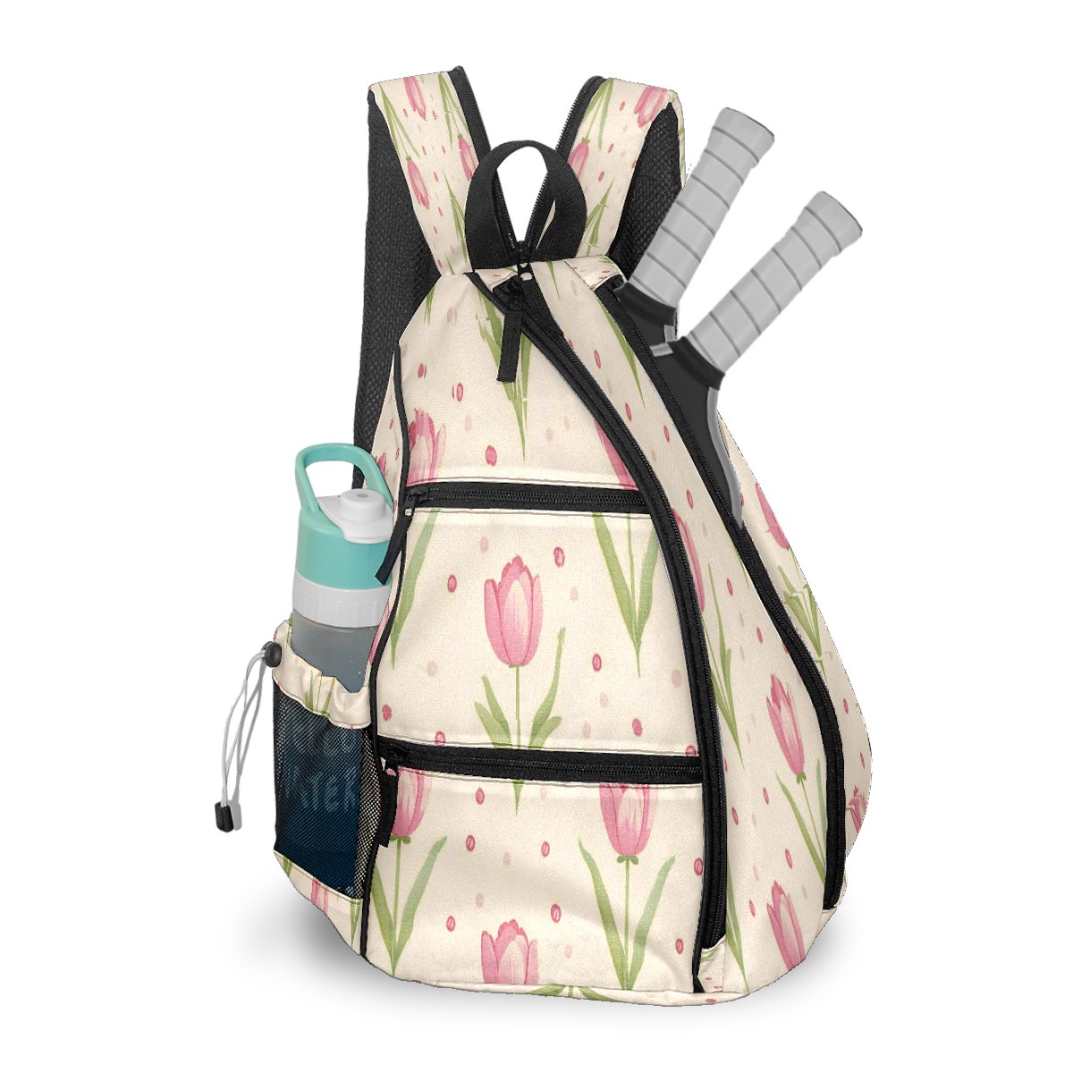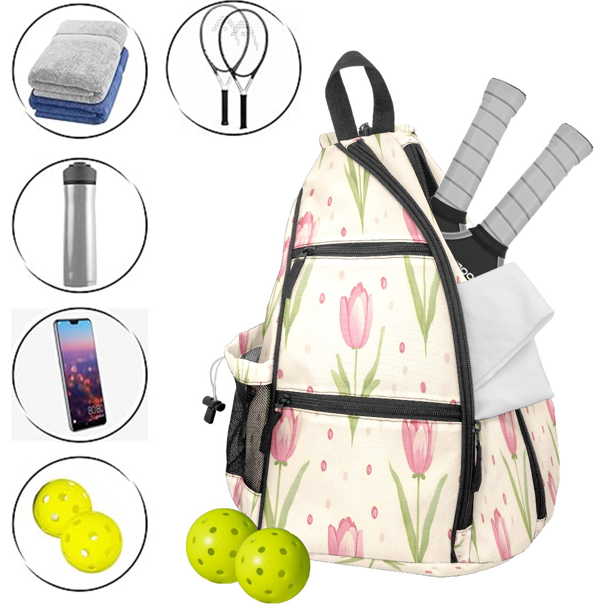 Pickleball Backpack for Women and Men, Adjustable Pickleball Sling Bag for Paddles, Balls & Accessories (Pink Tulip)