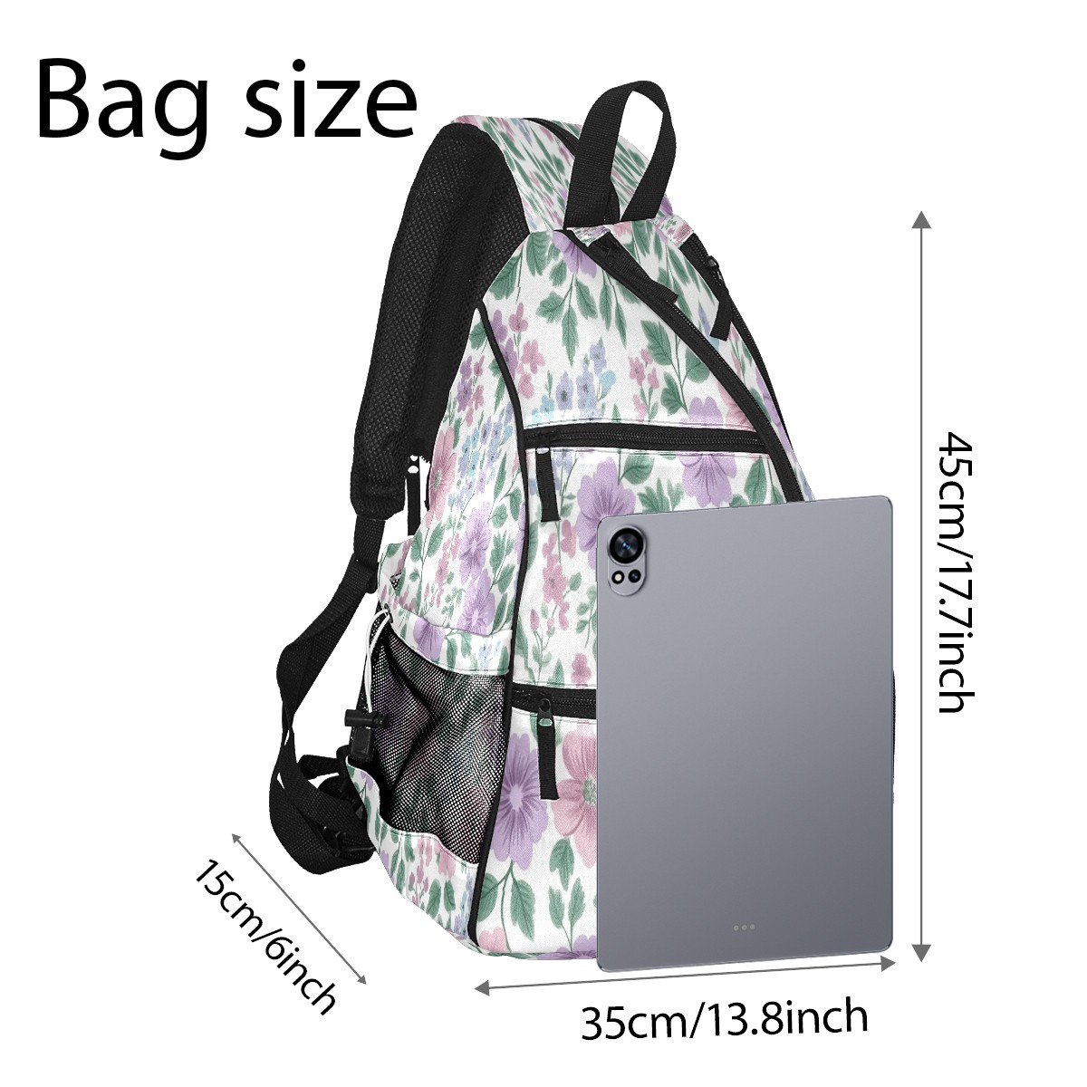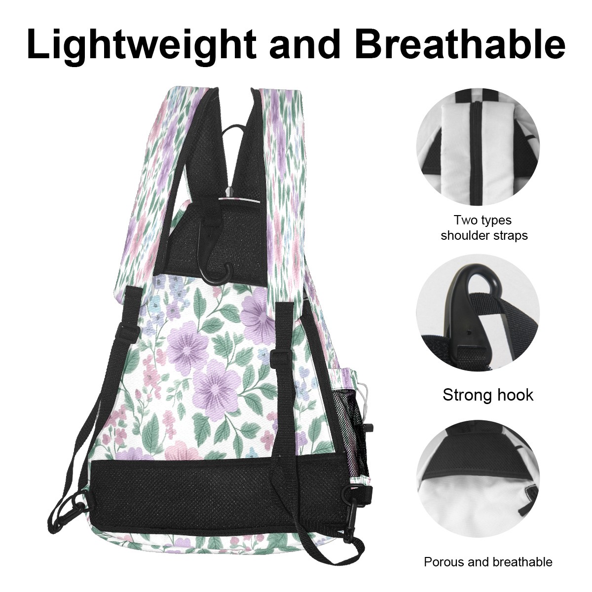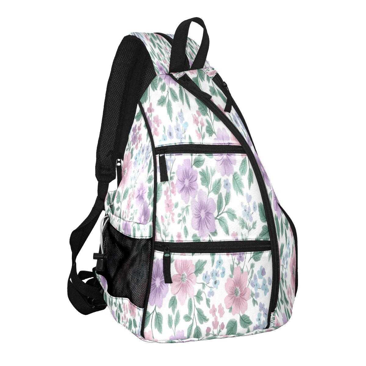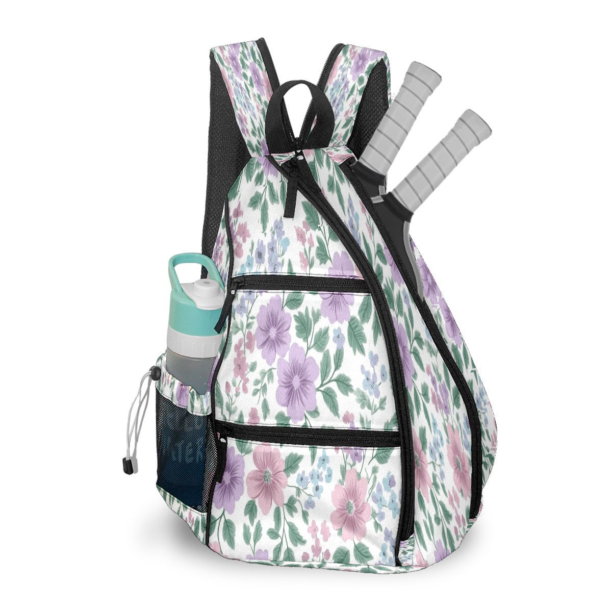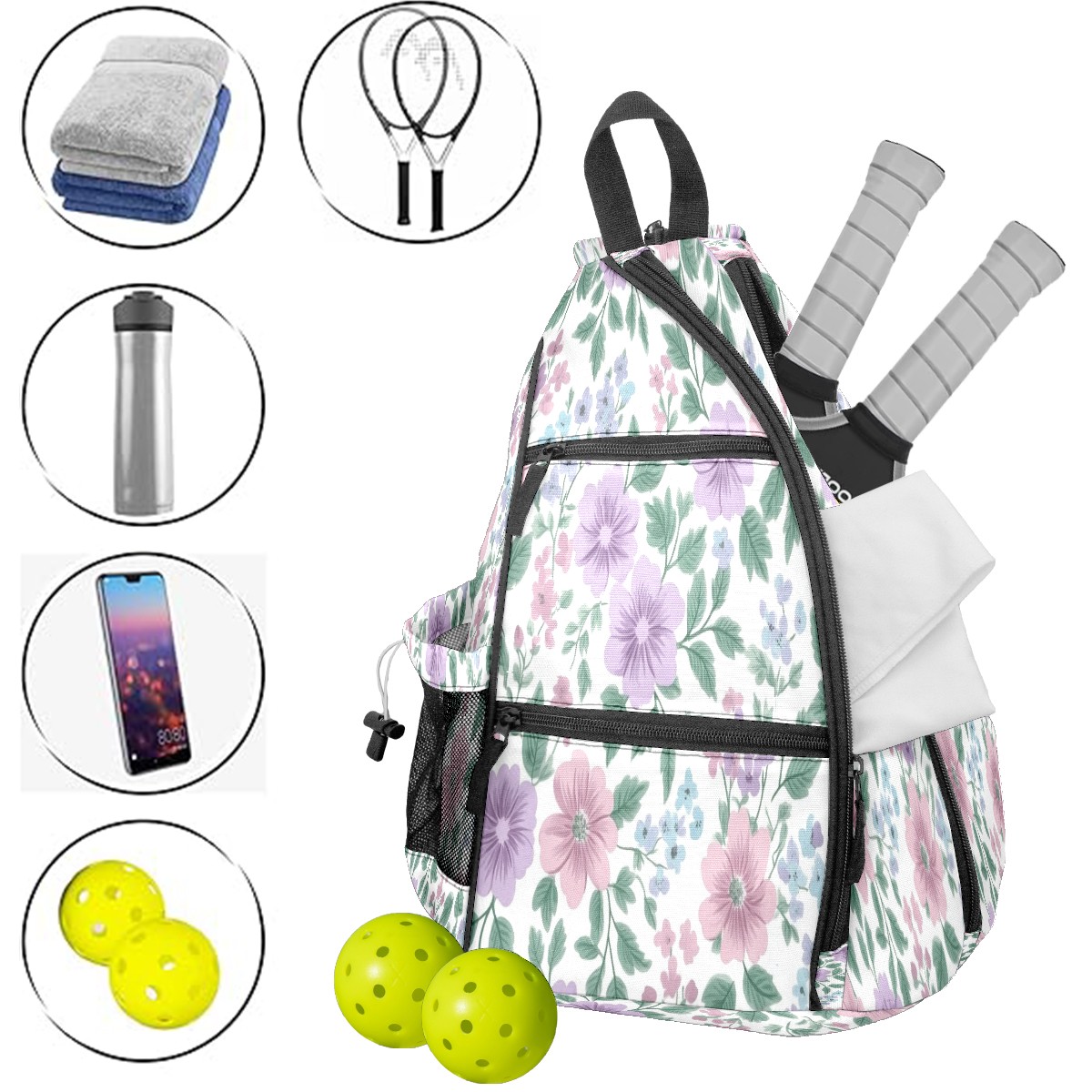Pickleball Backpack for Women and Men, Adjustable Pickleball Sling Bag for Paddles, Balls & Accessories (Pink Lavender Floral)