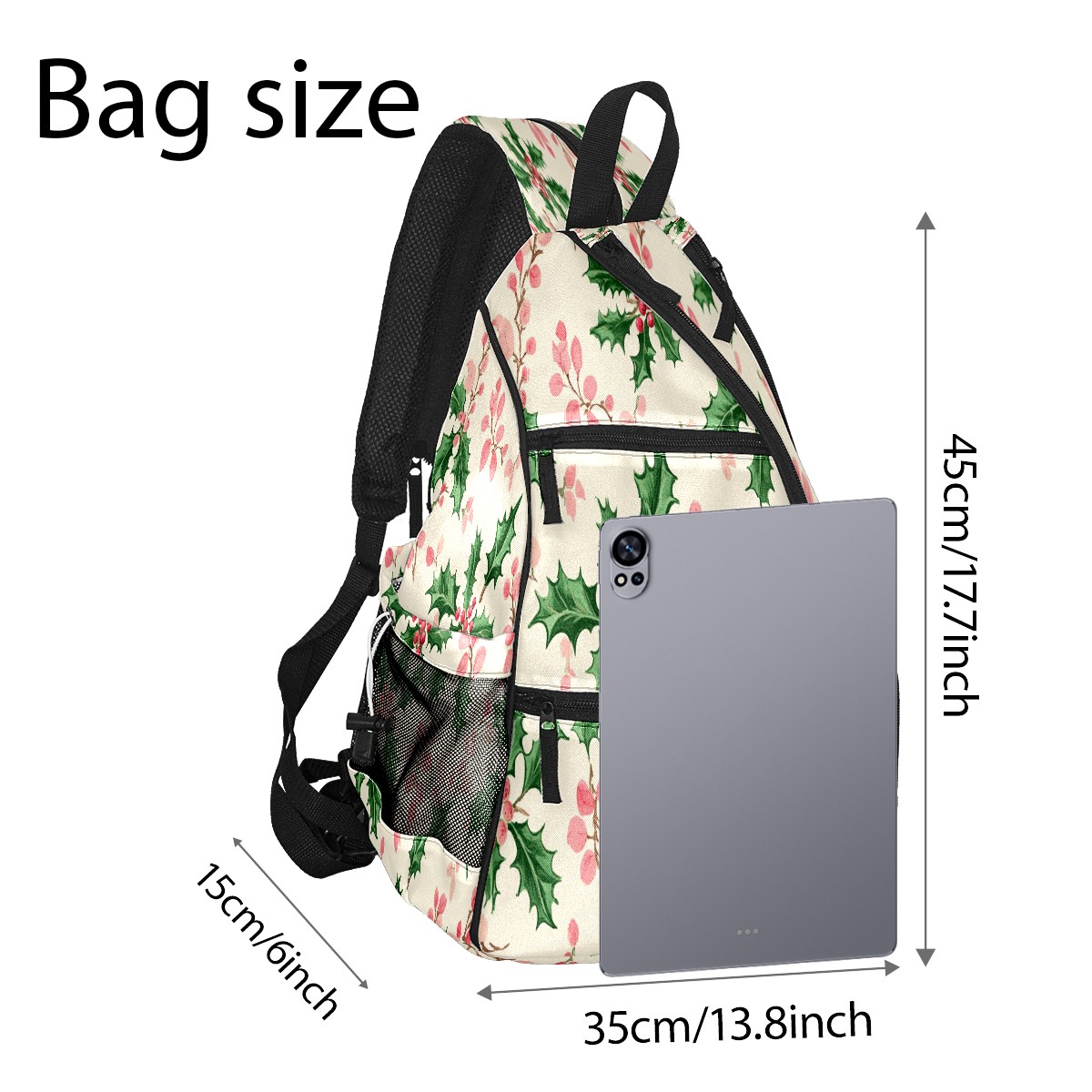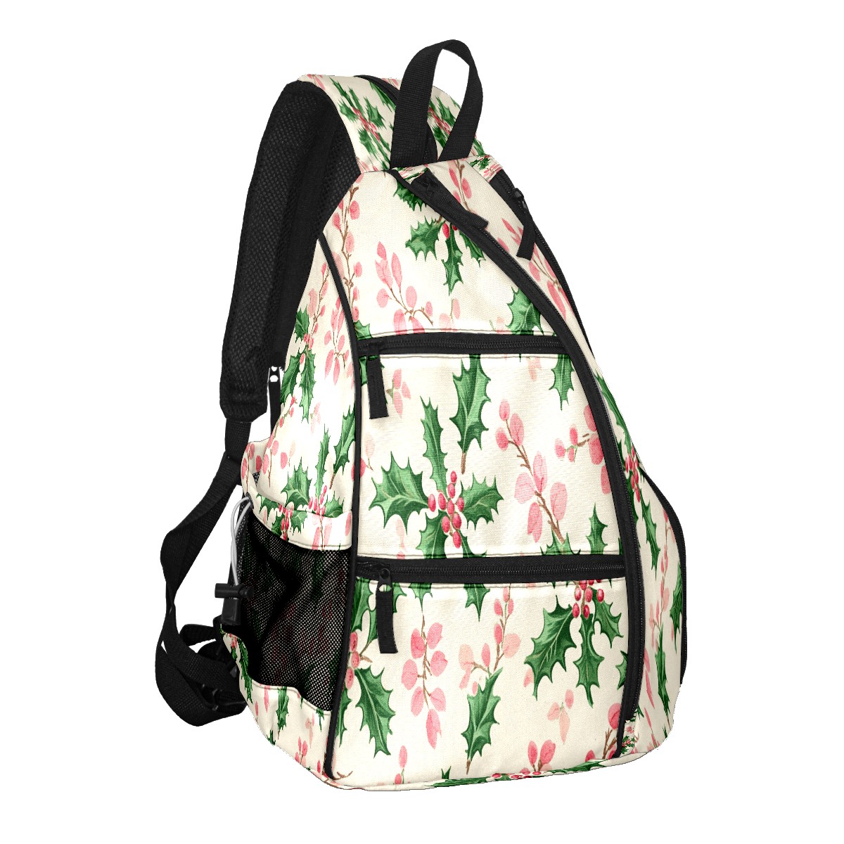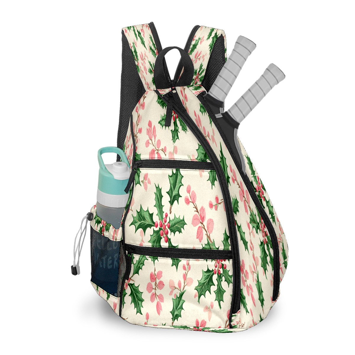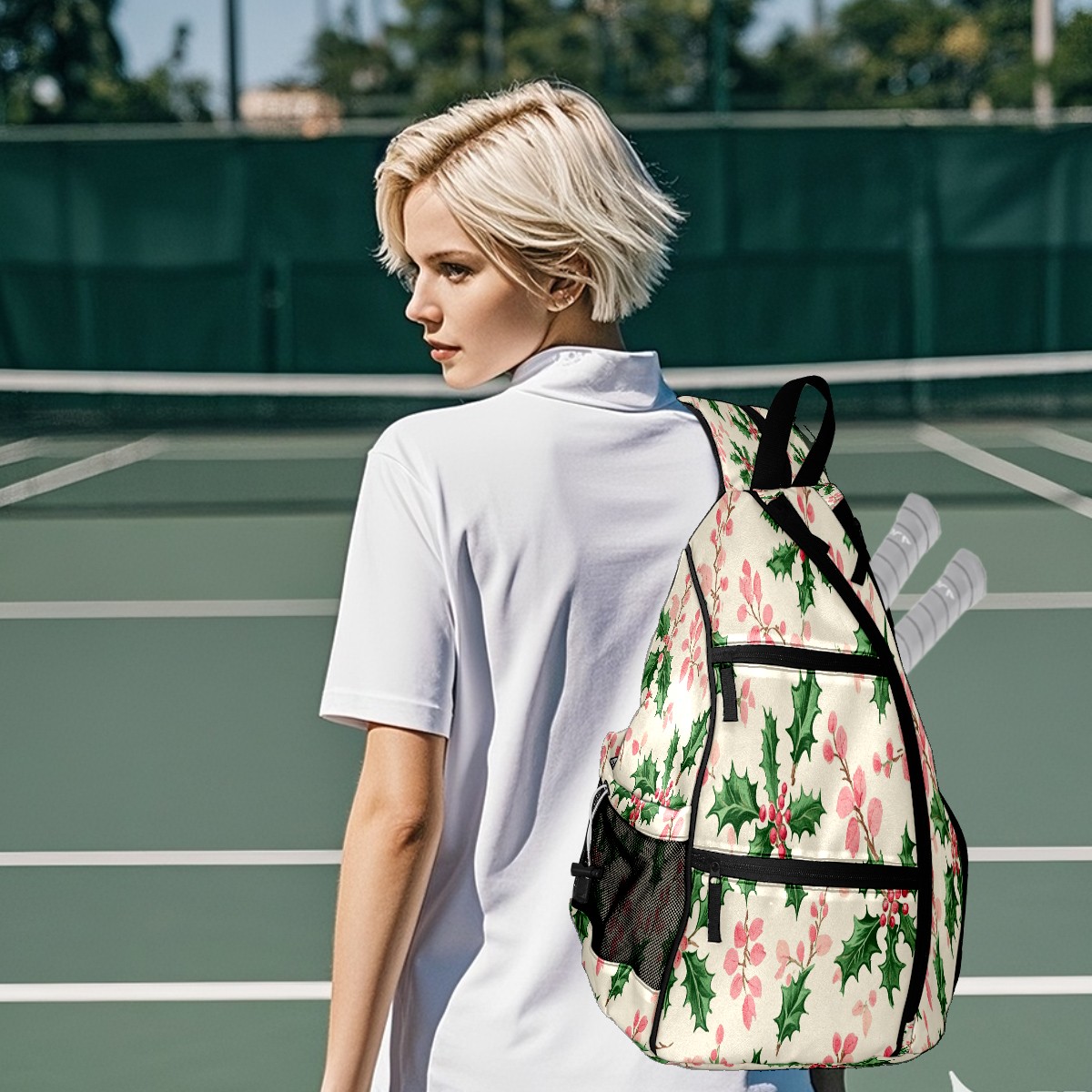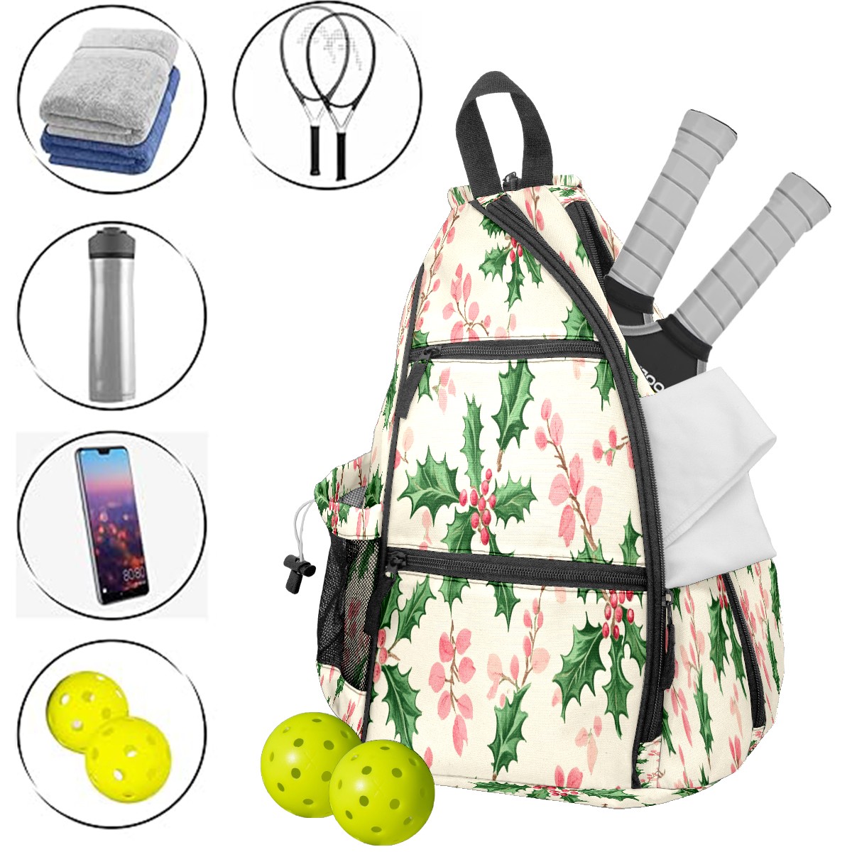 Pickleball Backpack for Women and Men, Adjustable Pickleball Sling Bag for Paddles, Balls & Accessories (Holly Leaves)