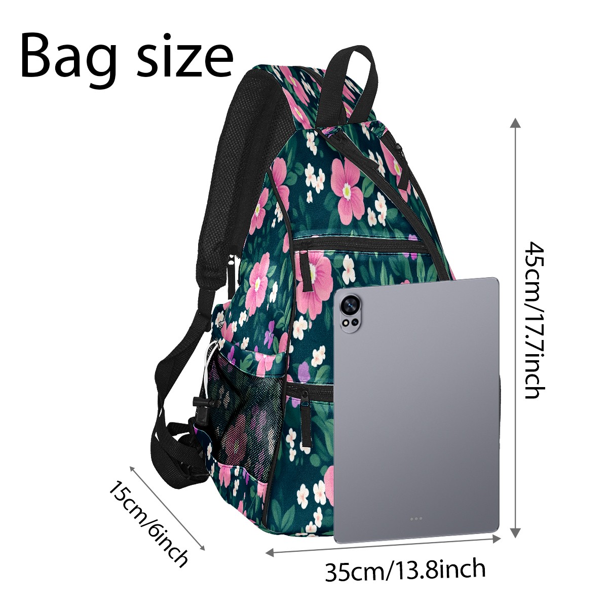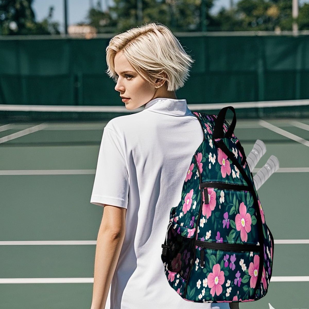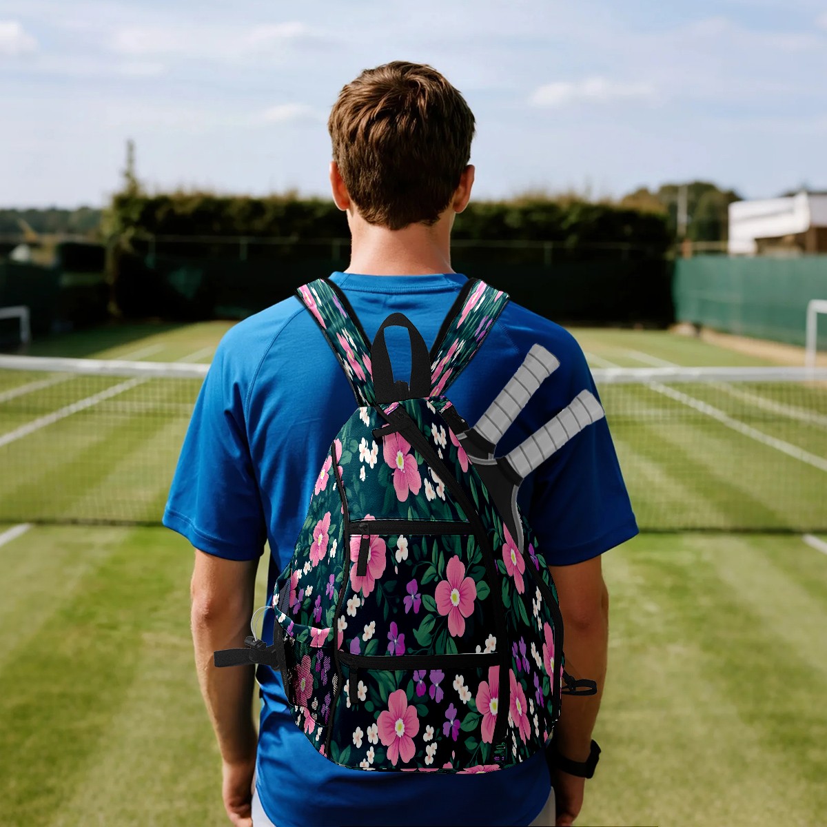 Pickleball Backpack for Women and Men, Adjustable Pickleball Sling Bag for Paddles, Balls & Accessories (Pink And Green Floral)