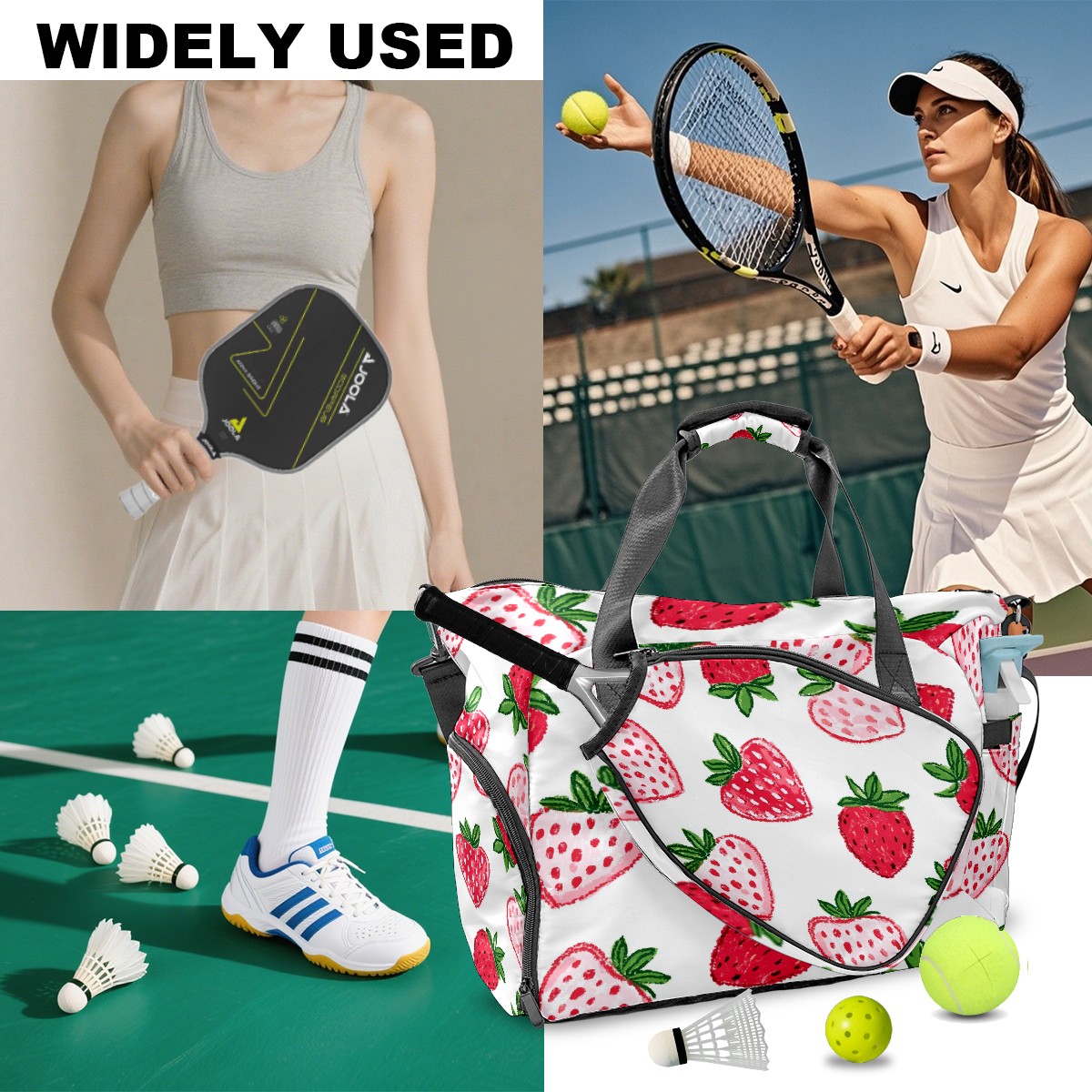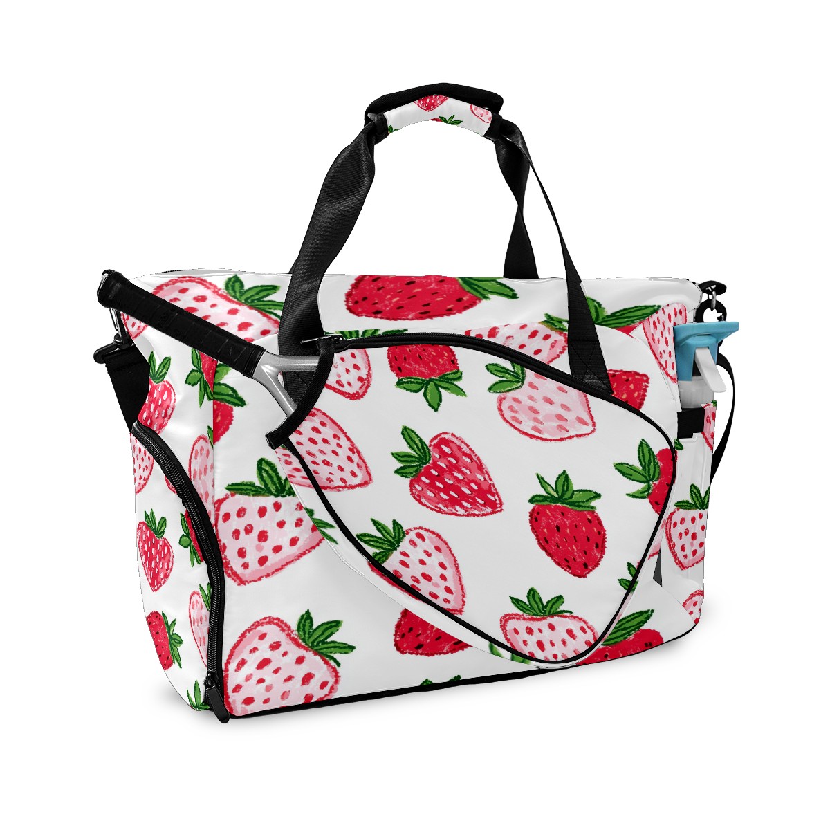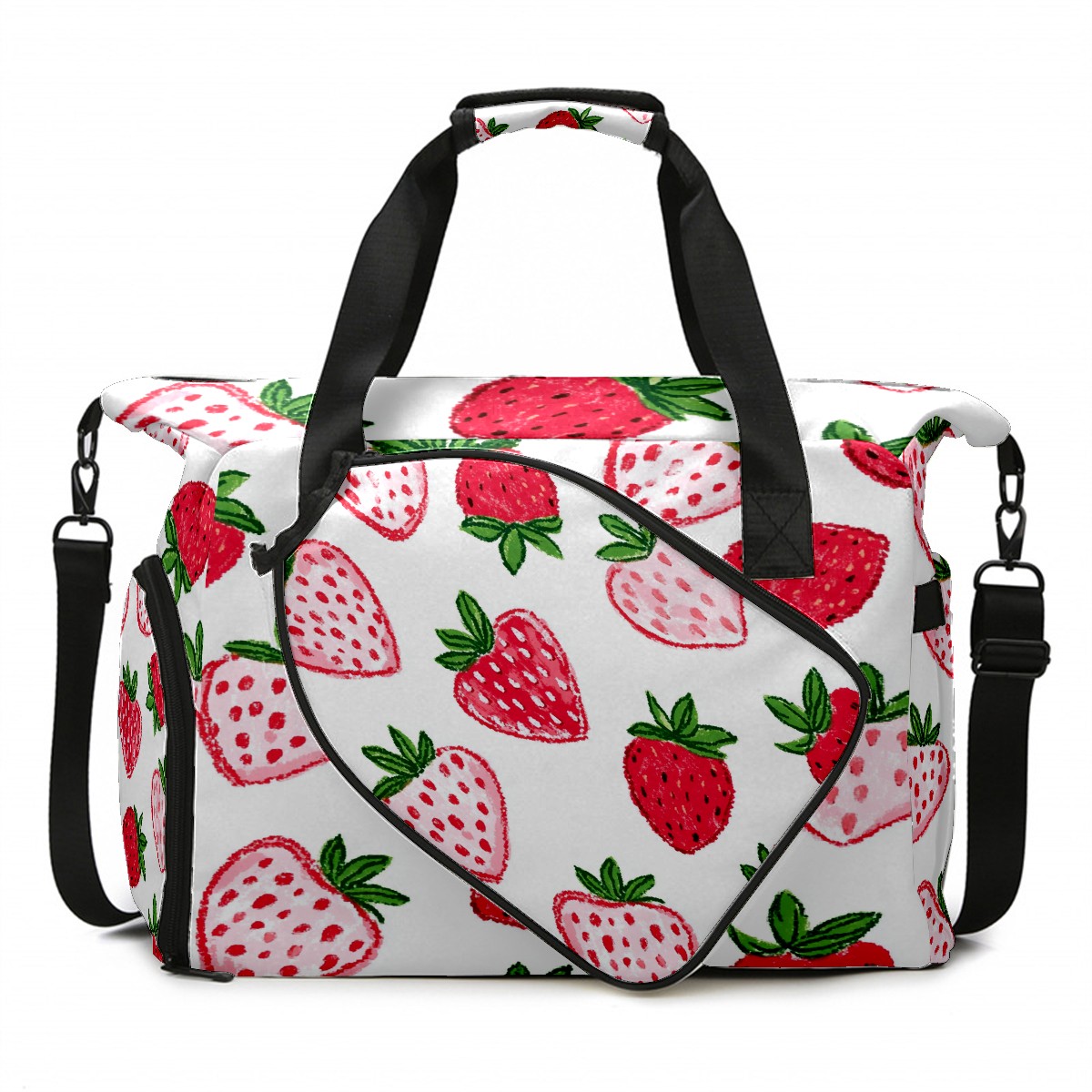 Pickleball Tote Bag Carryall for Paddles Balls and Accessories, Portable Lightweight Gear Bag for Players(Strawberry Hearts)