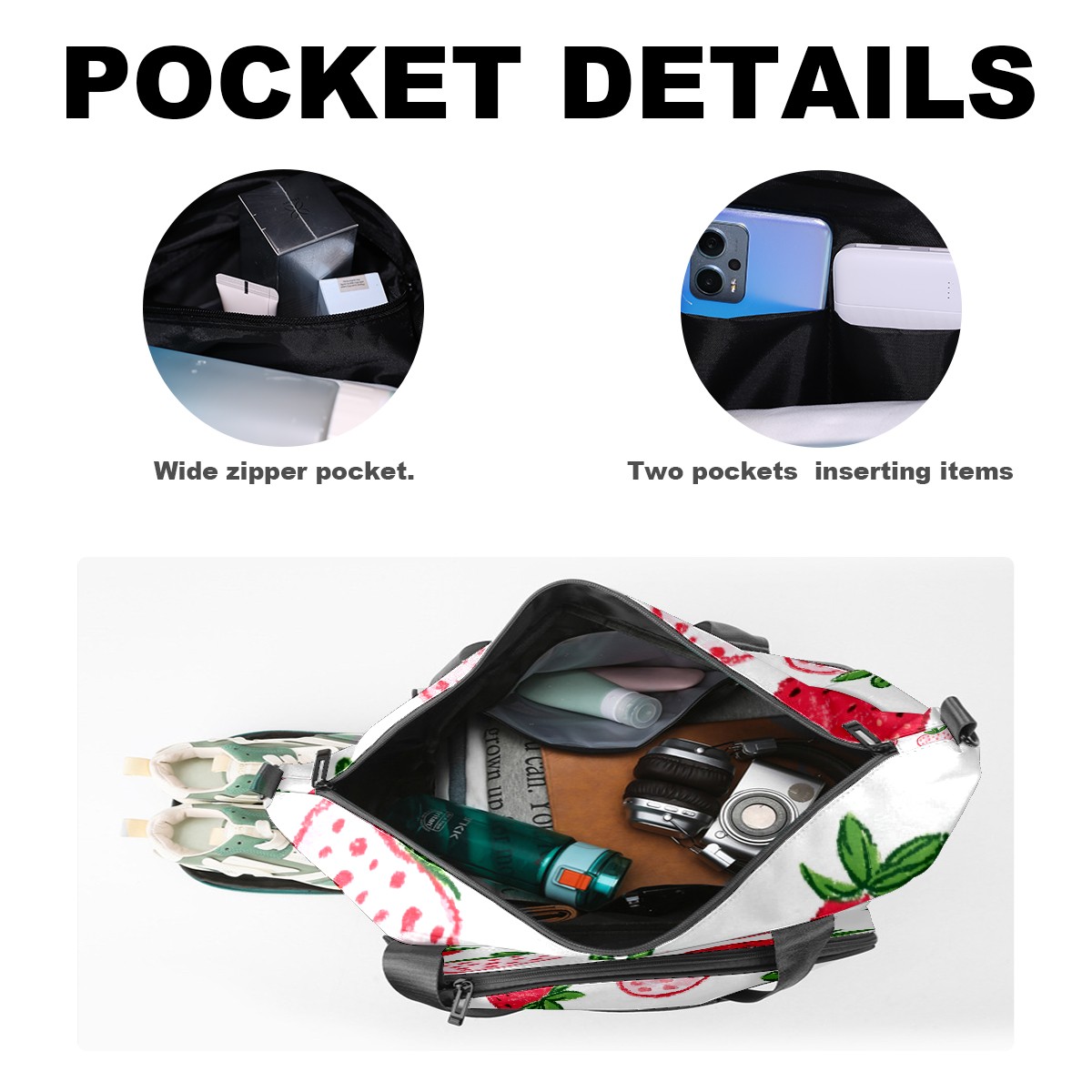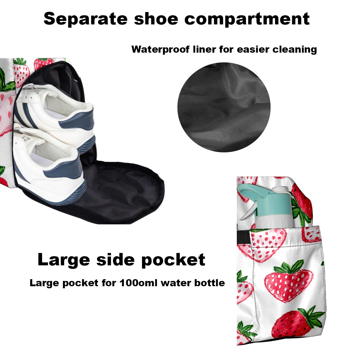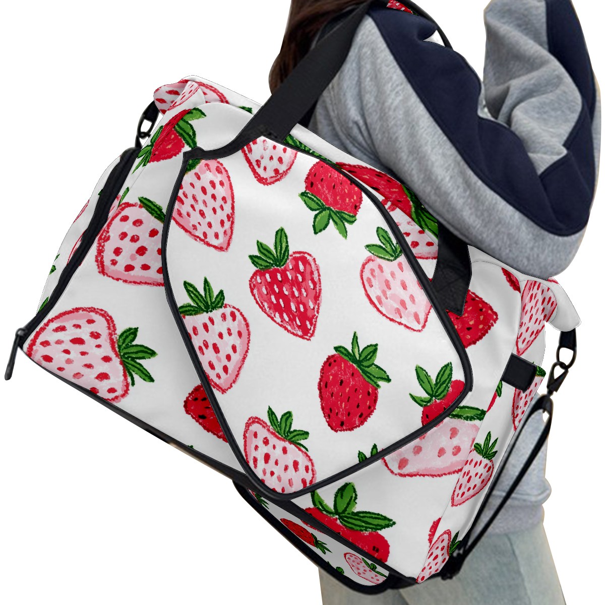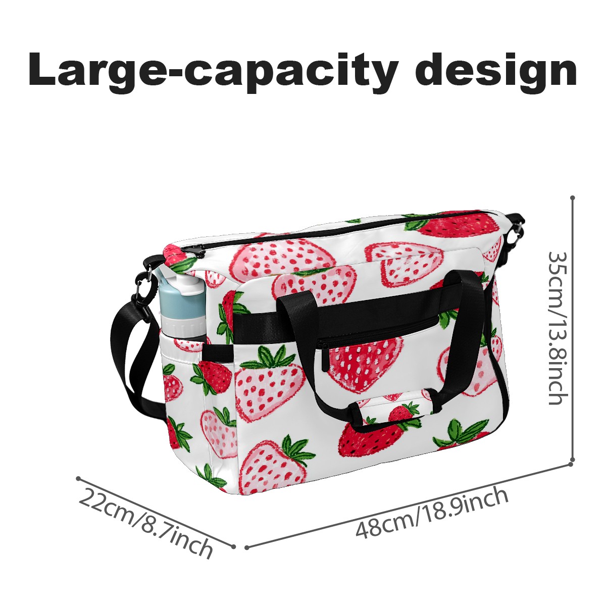 Pickleball Tote Bag Carryall for Paddles Balls and Accessories, Portable Lightweight Gear Bag for Players(Strawberry Hearts)