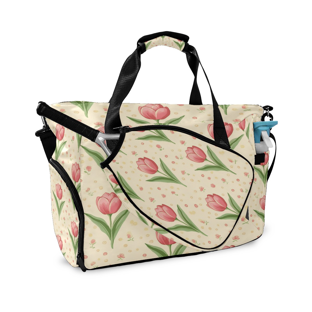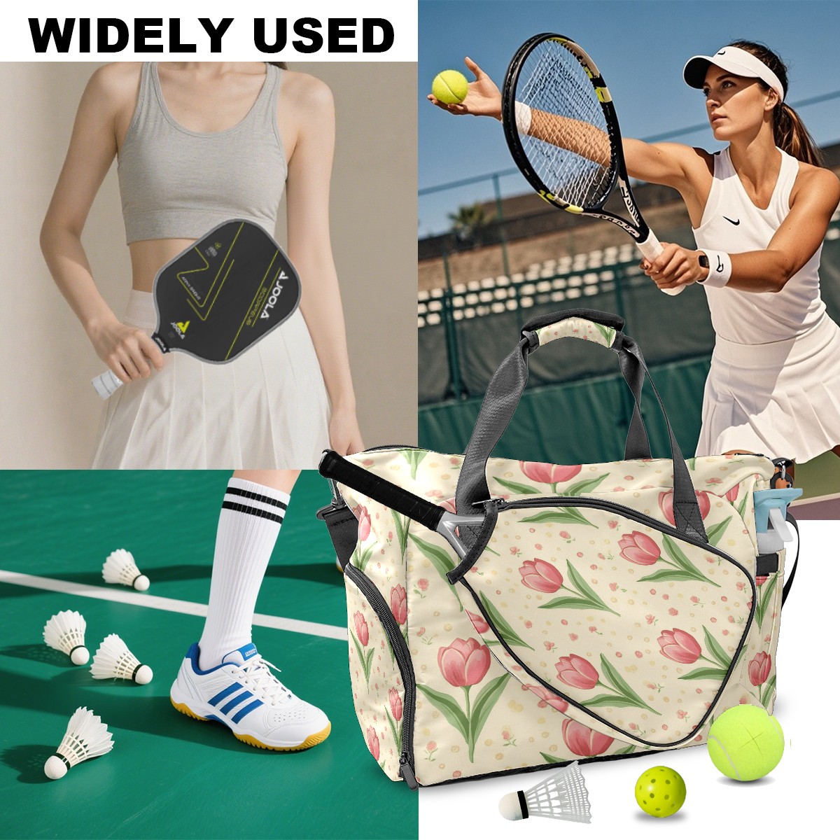 Pickleball Tote Bag Carryall for Paddles Balls and Accessories, Portable Lightweight Gear Bag for Players(Tulip)