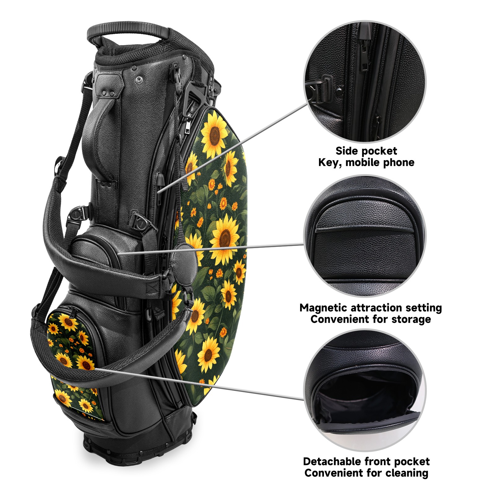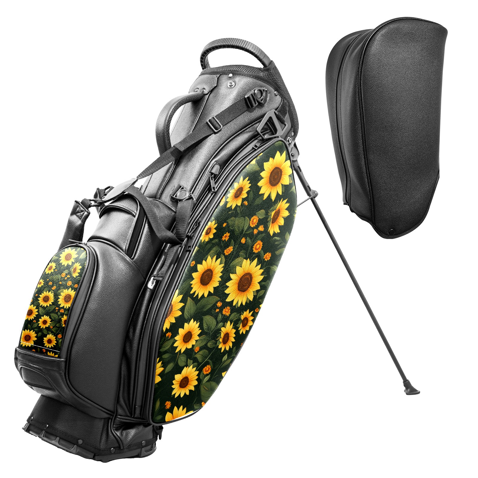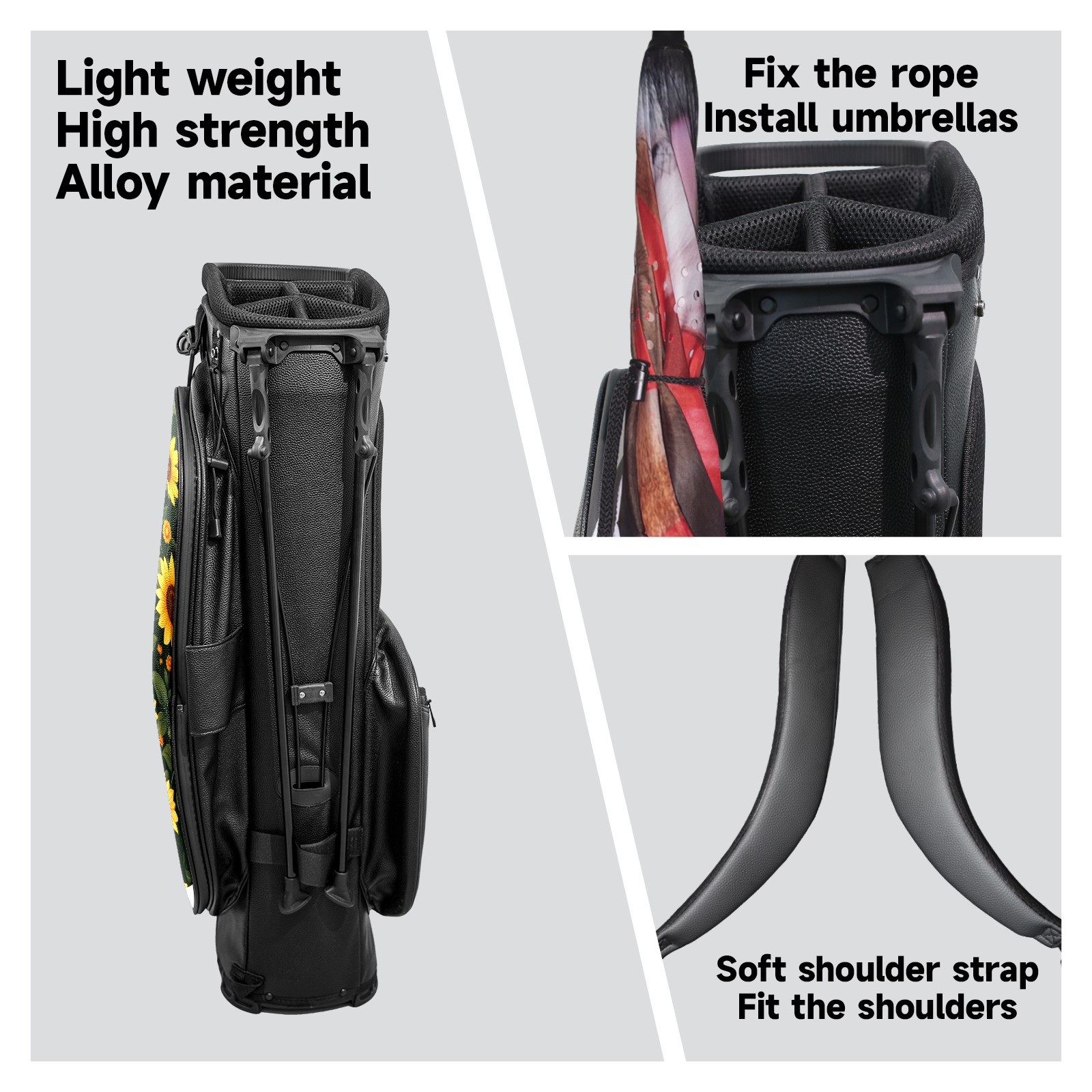 Lightweight Golf Stand Bag - 5-Way Top Divider, Golf Club Carry Bag with Adjustable Double Shoulder Straps, Zipper Storage Pockets + Rain Cover, Ideal for Golfers Yellow Flower Pattern