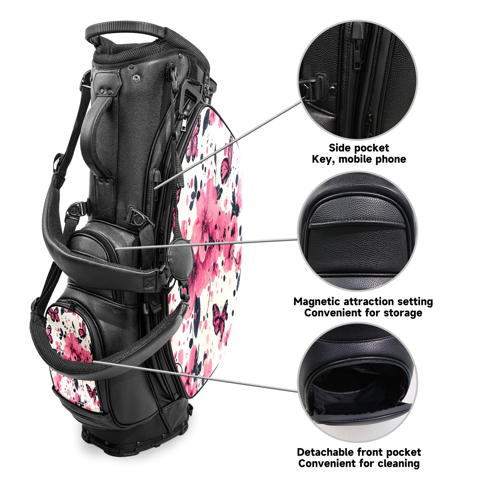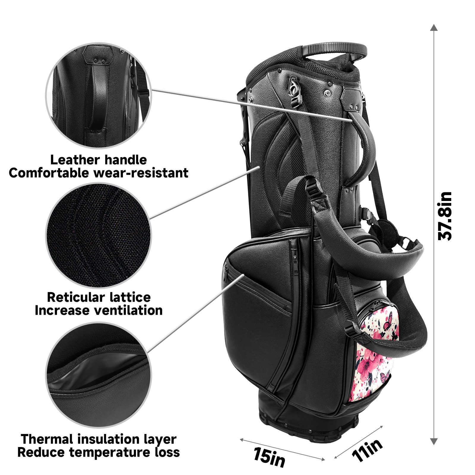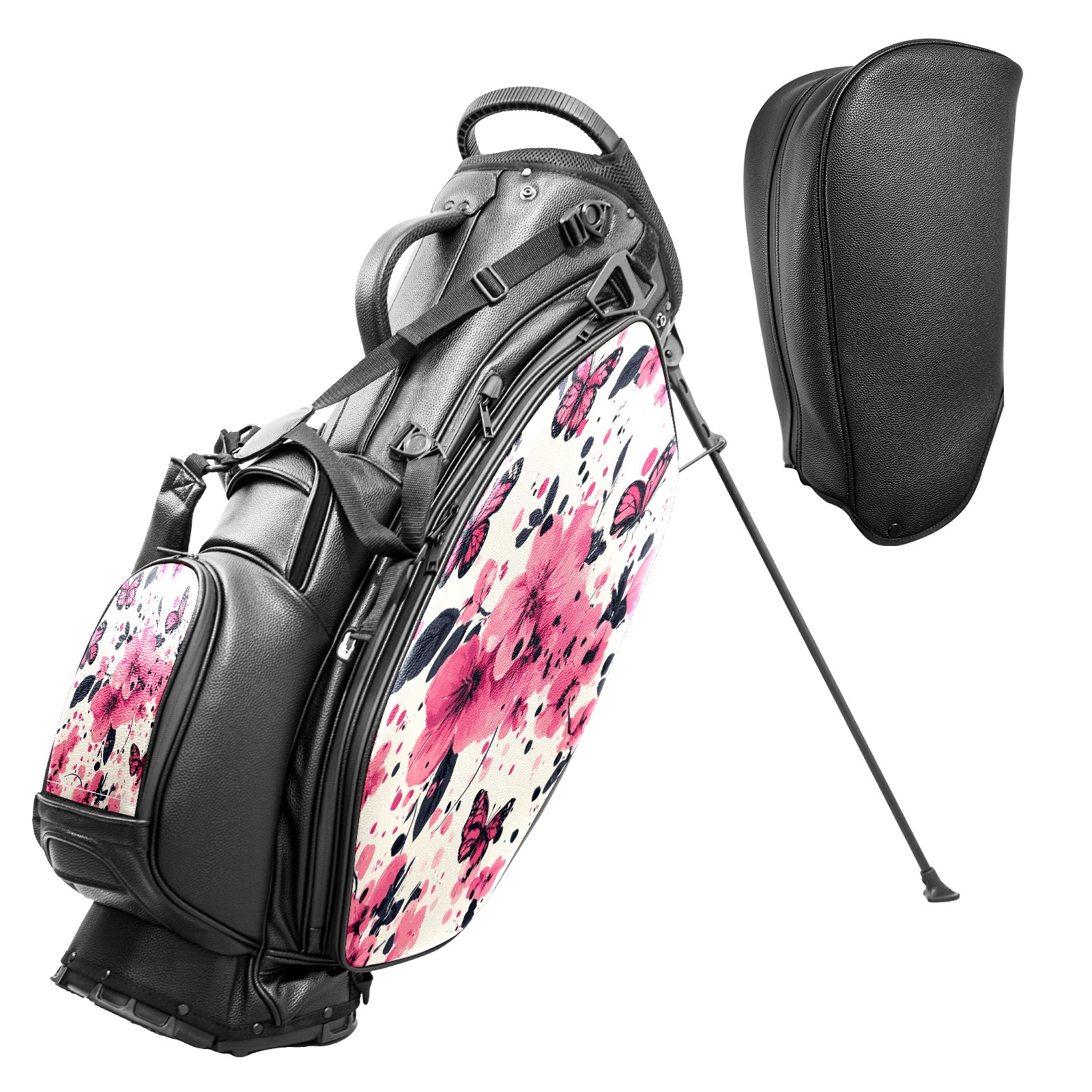 Lightweight Golf Stand Bag - 5-Way Top Divider, Golf Club Carry Bag with Adjustable Double Shoulder Straps, Zipper Storage Pockets + Rain Cover, Ideal for Golfers Pink Flower Pattern