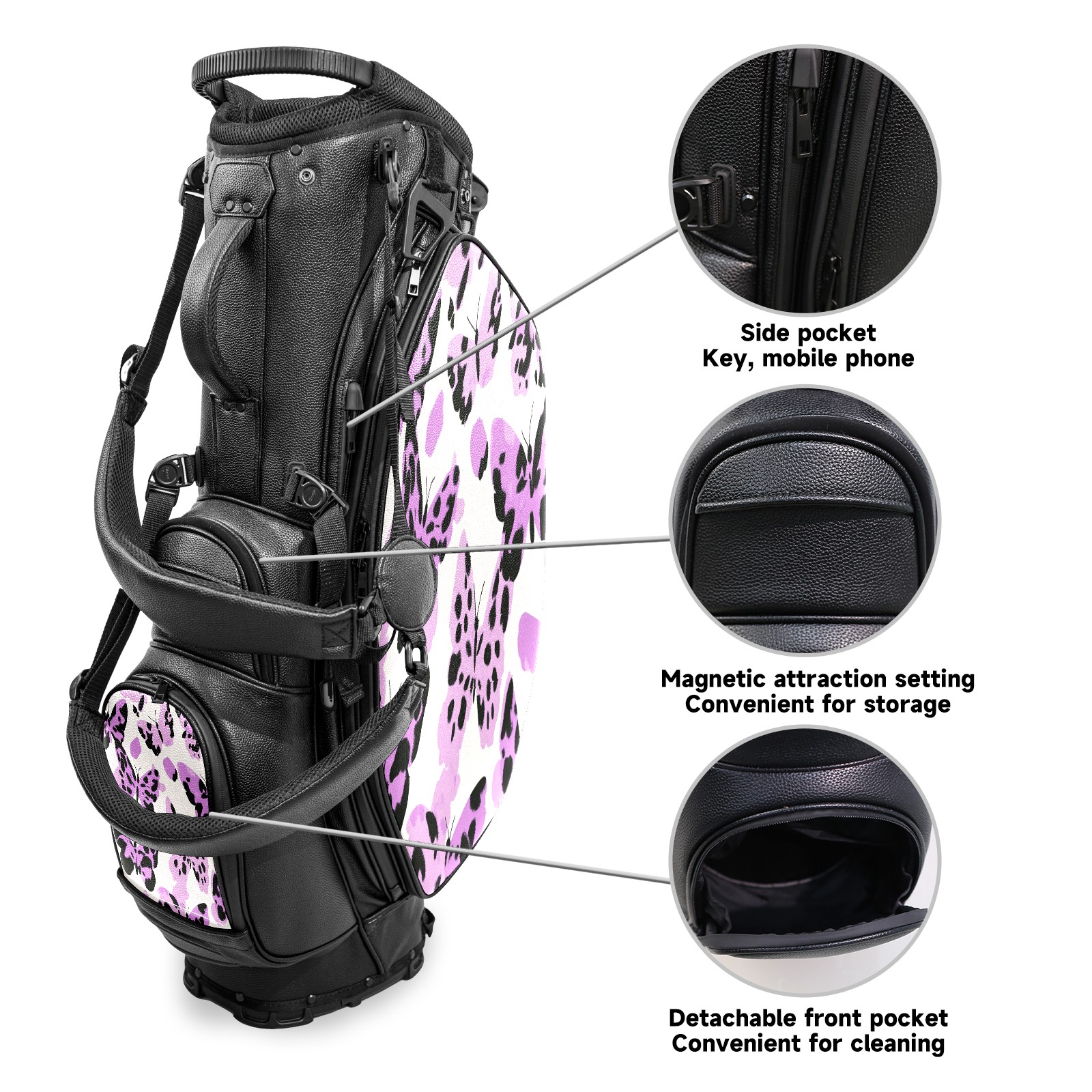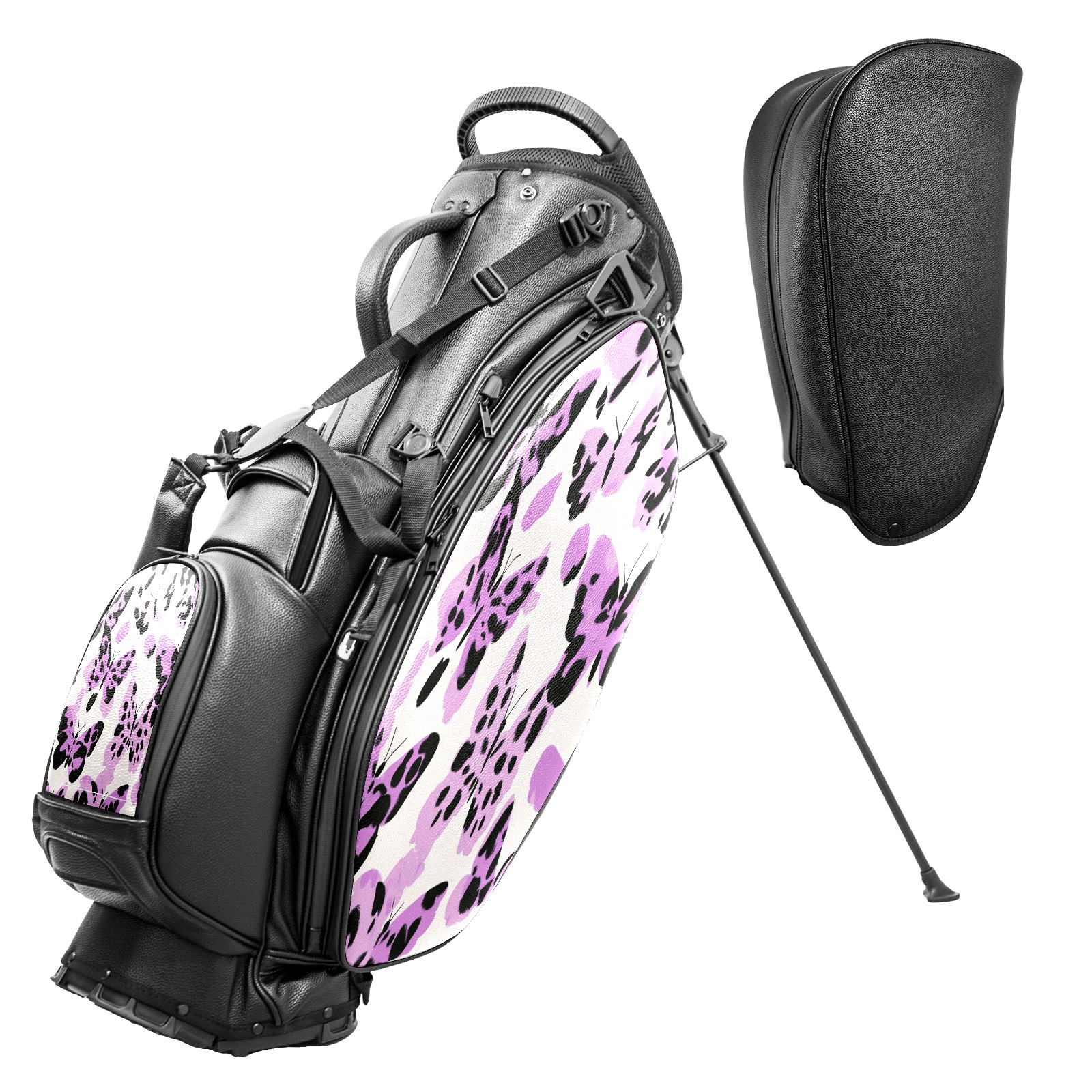 Lightweight Golf Stand Bag - 5-Way Top Divider, Golf Club Carry Bag with Adjustable Double Shoulder Straps, Zipper Storage Pockets + Rain Cover, Ideal for Golfers Purple Butterfly Pattern