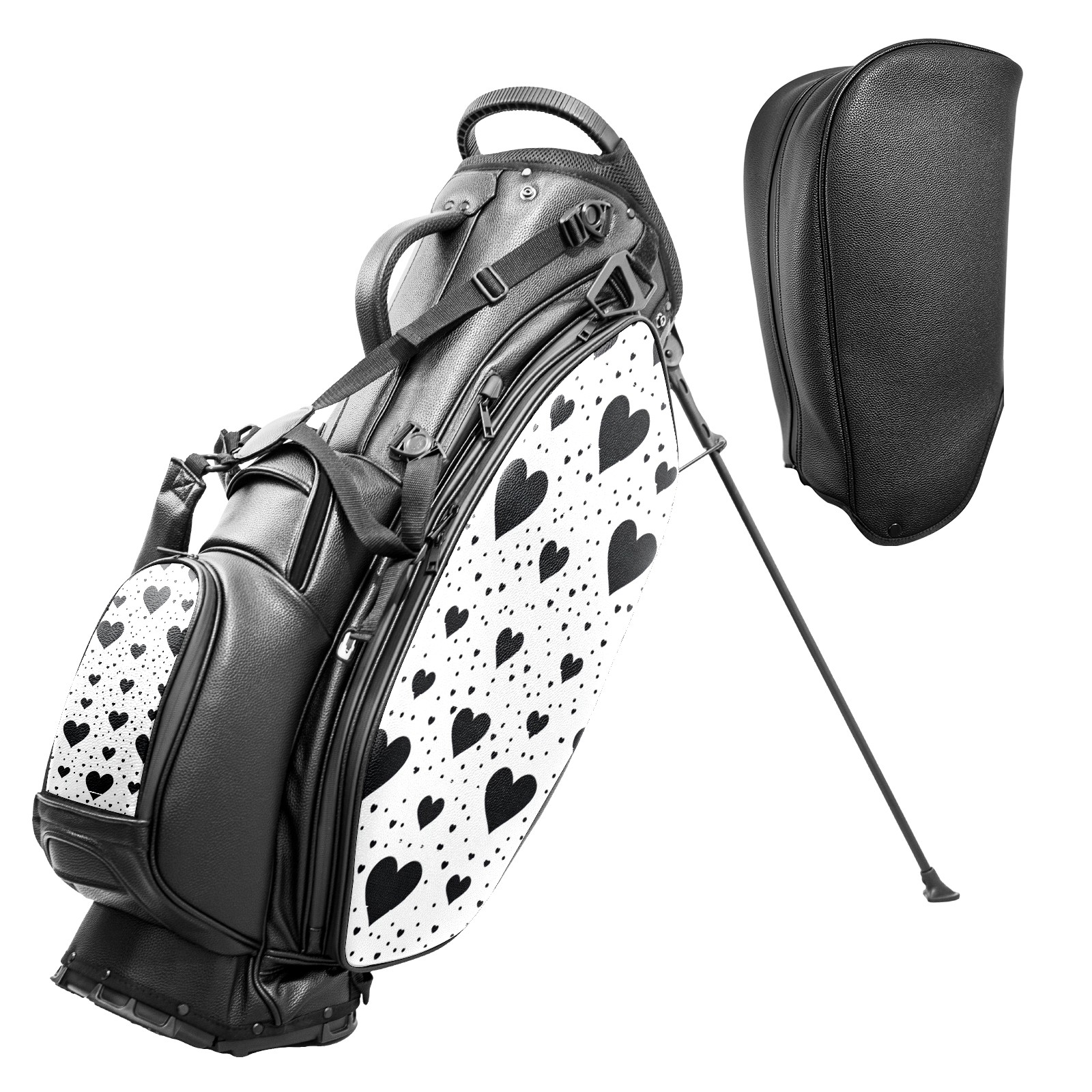 Lightweight Golf Stand Bag - 5-Way Top Divider, Golf Club Carry Bag with Adjustable Double Shoulder Straps, Zipper Storage Pockets + Rain Cover, Ideal for Golfers Black Heart Pattern