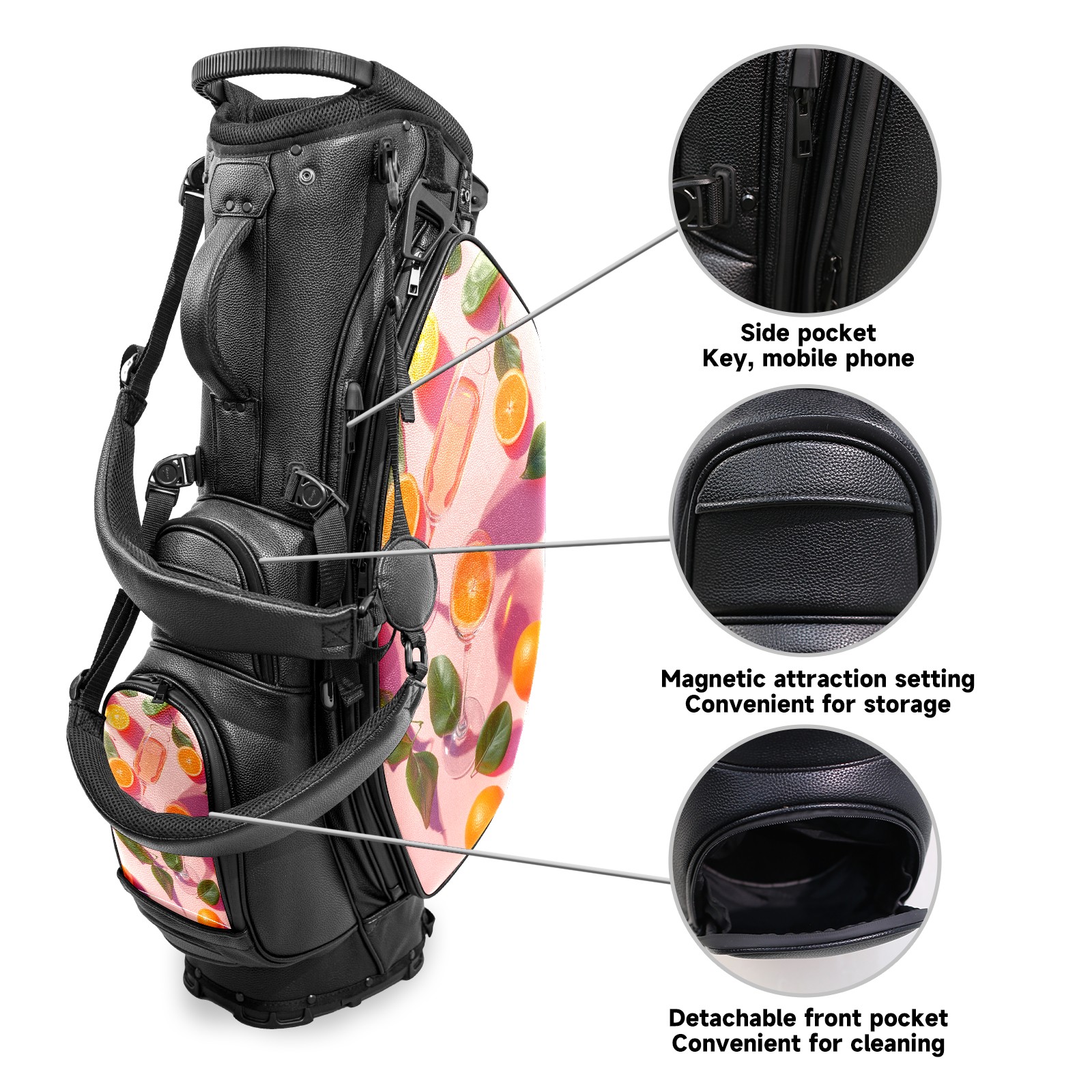 <p>This golf cart bag combines versatility with durability, providing comprehensive protection and convenient access for your clubs. The five-way top compartments provide strategic zoning for easily storing a variety of clubs and protecting them from impacts and wear. The PU fabric and sturdy plastic base combine premium quality with durability. The versatile storage system includes multiple zippered pockets and a separate cooler compartment for storing equipment, accessories, and drinks. The portable rear handle allows for easy transport. The ergonomic, padded shoulder straps are adjustable and removable to fit your shoulder and reduce weight. A built-in rain cover effectively keeps out moisture, ensuring your clubs stay dry and protected in wet weather. This is the ideal golf bag for your golfing adventure.<br></p>