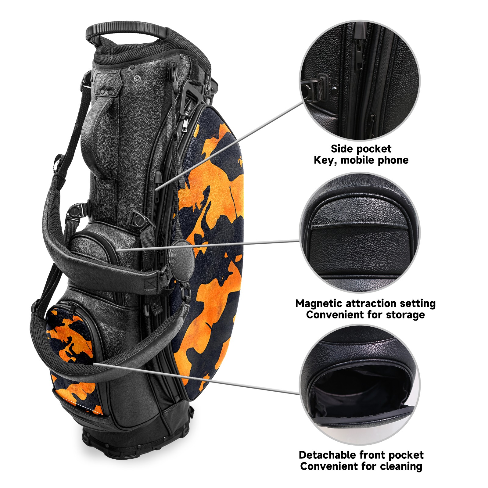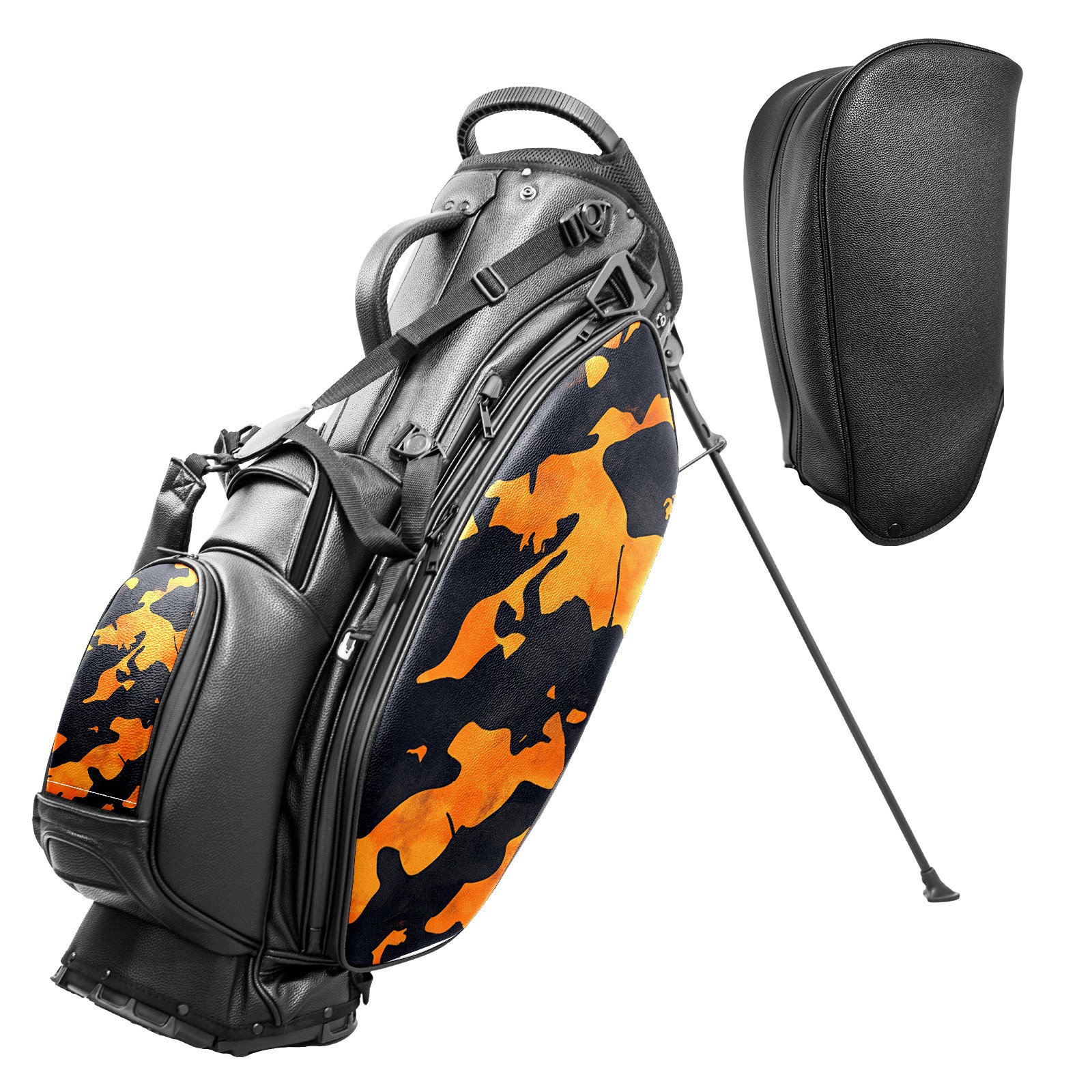 Lightweight Golf Stand Bag - 5-Way Top Divider, Golf Club Carry Bag with Adjustable Double Shoulder Straps, Zipper Storage Pockets + Rain Cover, Ideal for Golfers Orange Camouflage Pattern