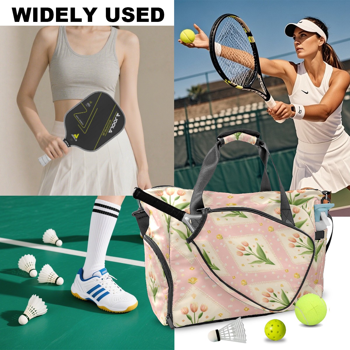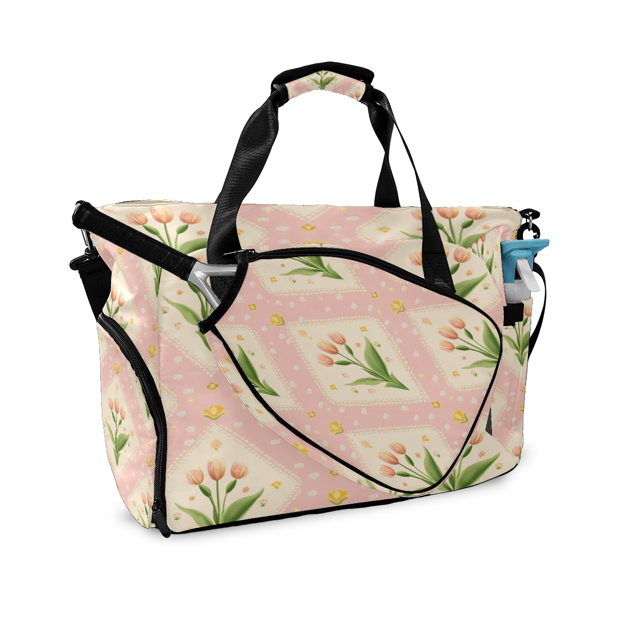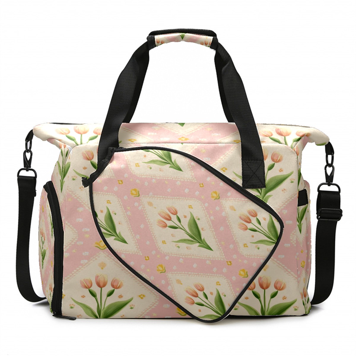 Pickleball Tote Bag Carryall for Paddles Balls and Accessories, Portable Lightweight Gear Bag for Players(Small Tulips)
