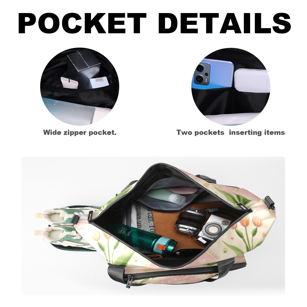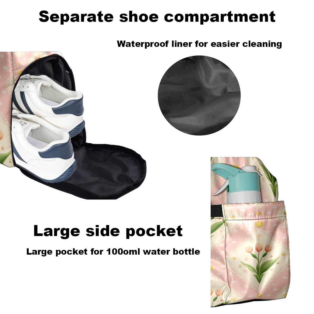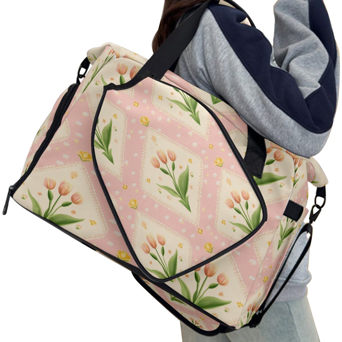 Pickleball Tote Bag Carryall for Paddles Balls and Accessories, Portable Lightweight Gear Bag for Players(Small Tulips)