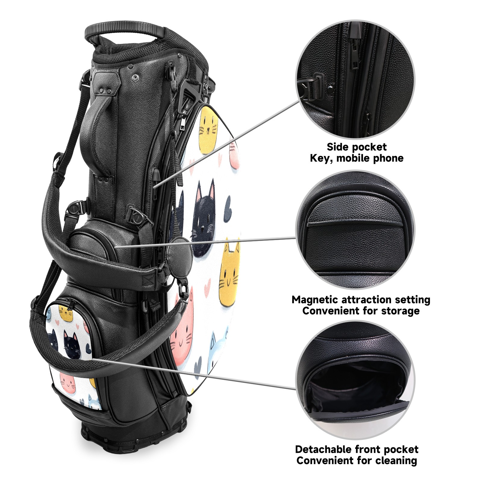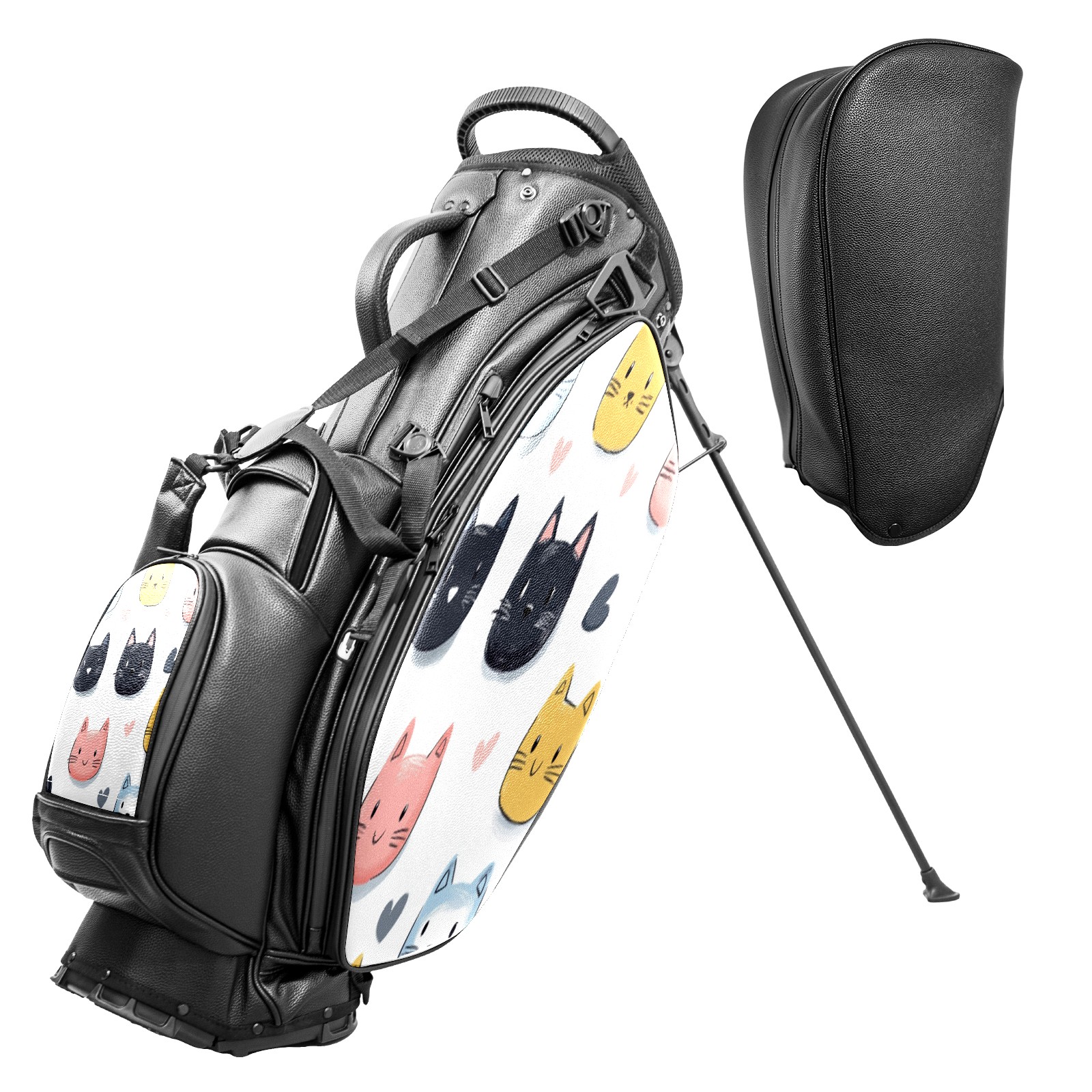 Lightweight Golf Stand Bag - 5-Way Top Divider, Golf Club Carry Bag with Adjustable Double Shoulder Straps, Zipper Storage Pockets + Rain Cover, Ideal for Golfers Cat Pattern