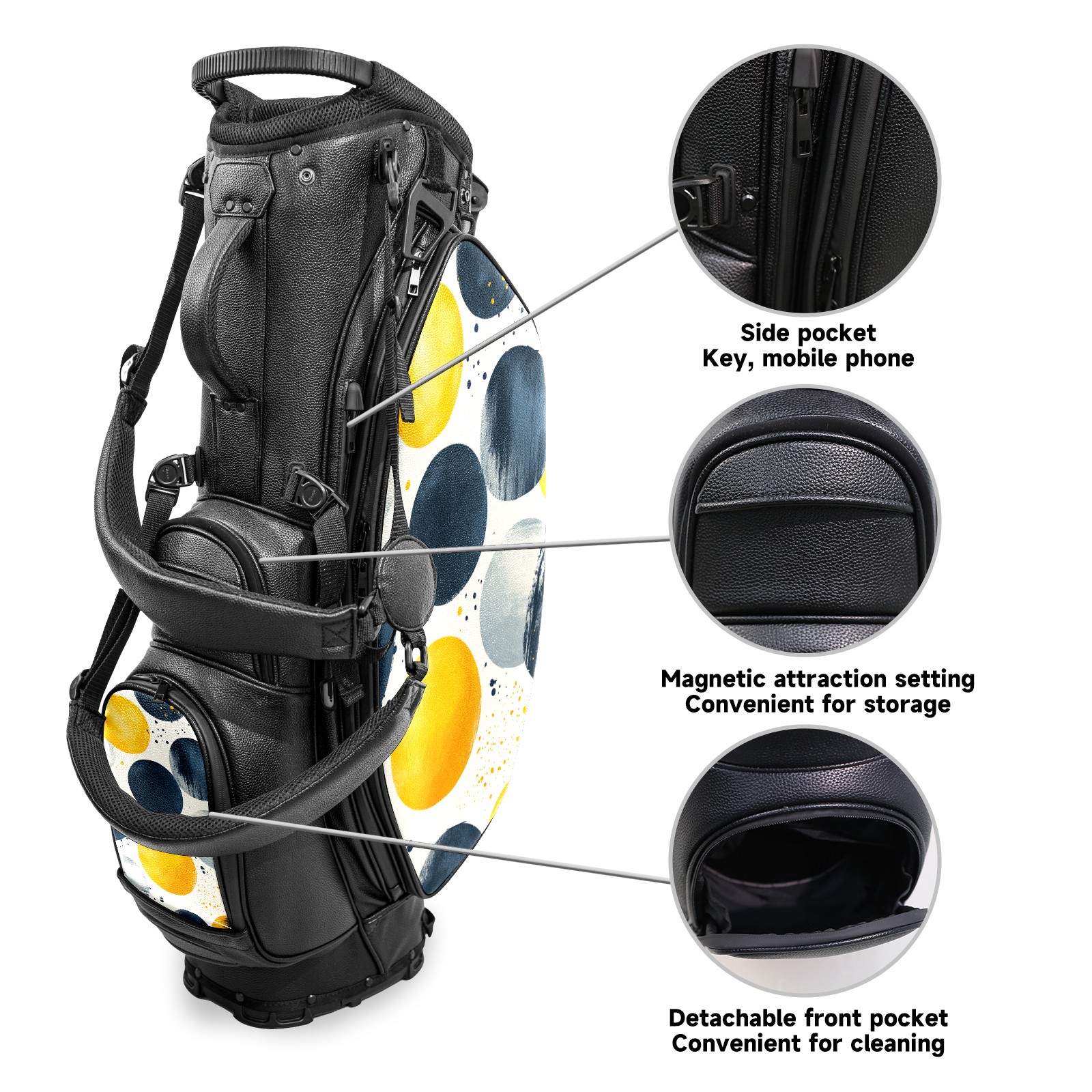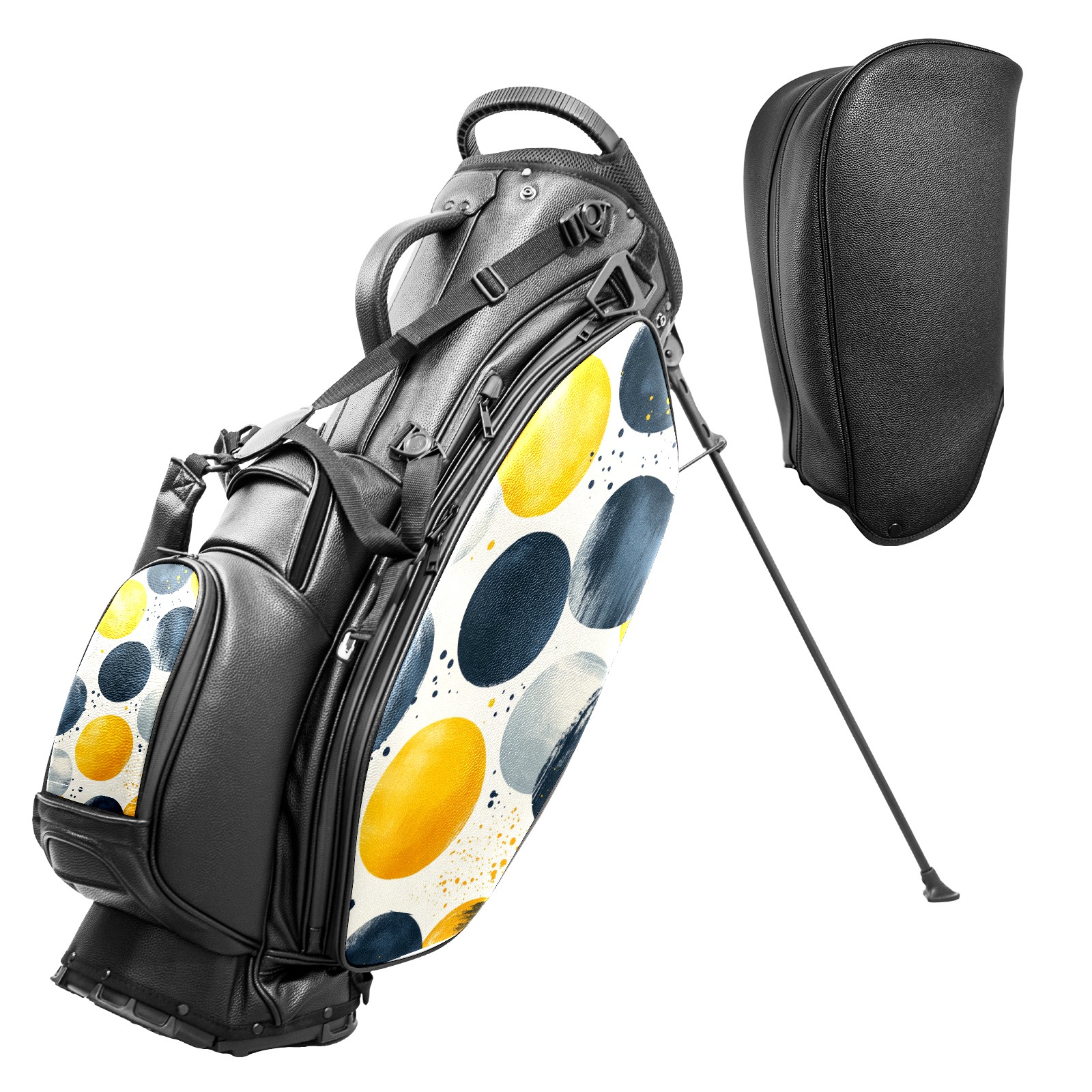 Lightweight Golf Stand Bag - 5-Way Top Divider, Golf Club Carry Bag with Adjustable Double Shoulder Straps, Zipper Storage Pockets + Rain Cover, Ideal for Golfers Yellow Gray Polka Dot Pattern