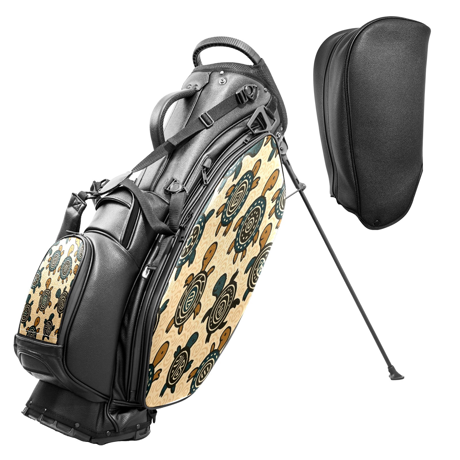 Lightweight Golf Stand Bag - 5-Way Top Divider, Golf Club Carry Bag with Adjustable Double Shoulder Straps, Zipper Storage Pockets + Rain Cover, Ideal for Golfers Vintage Turtle Brown