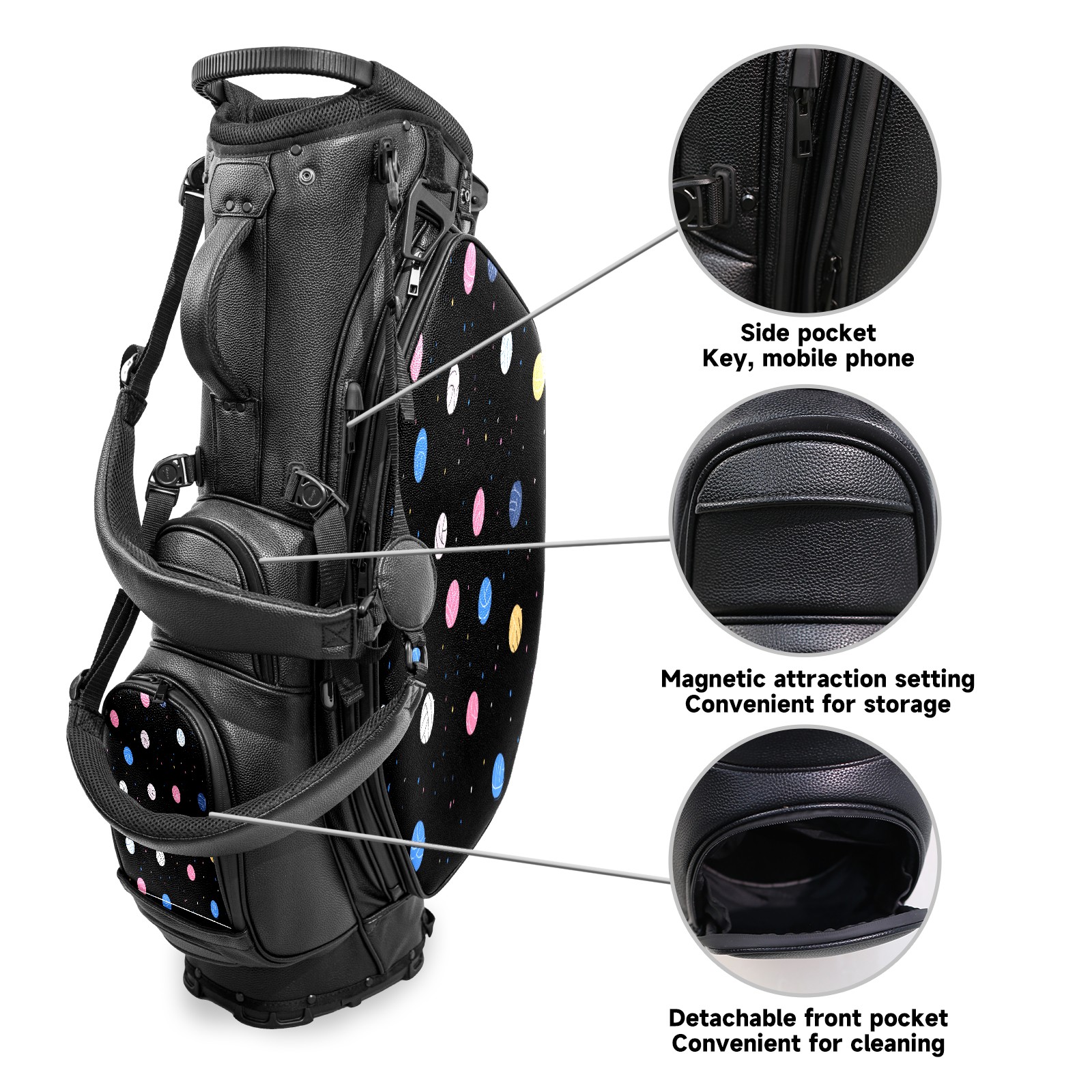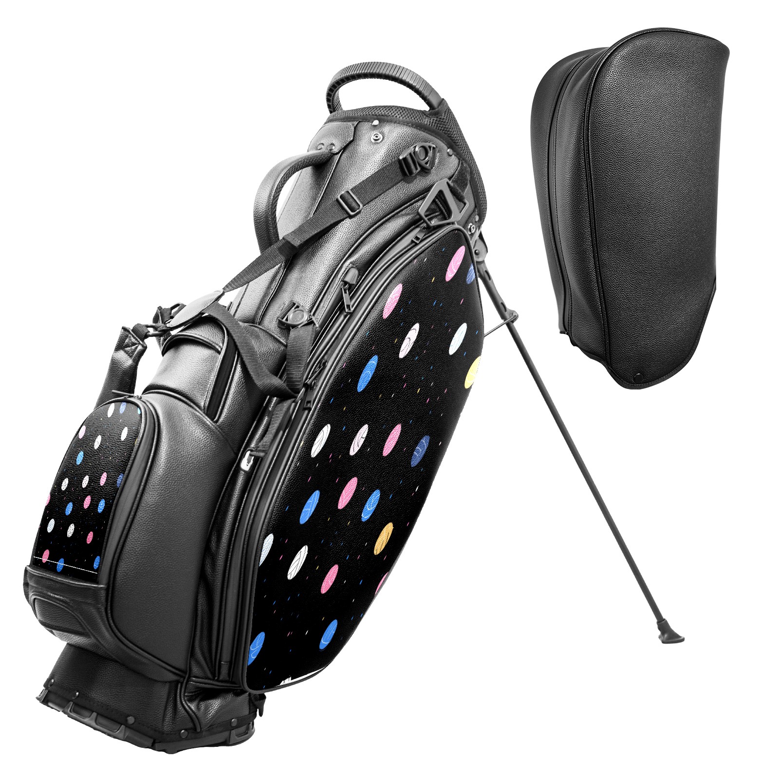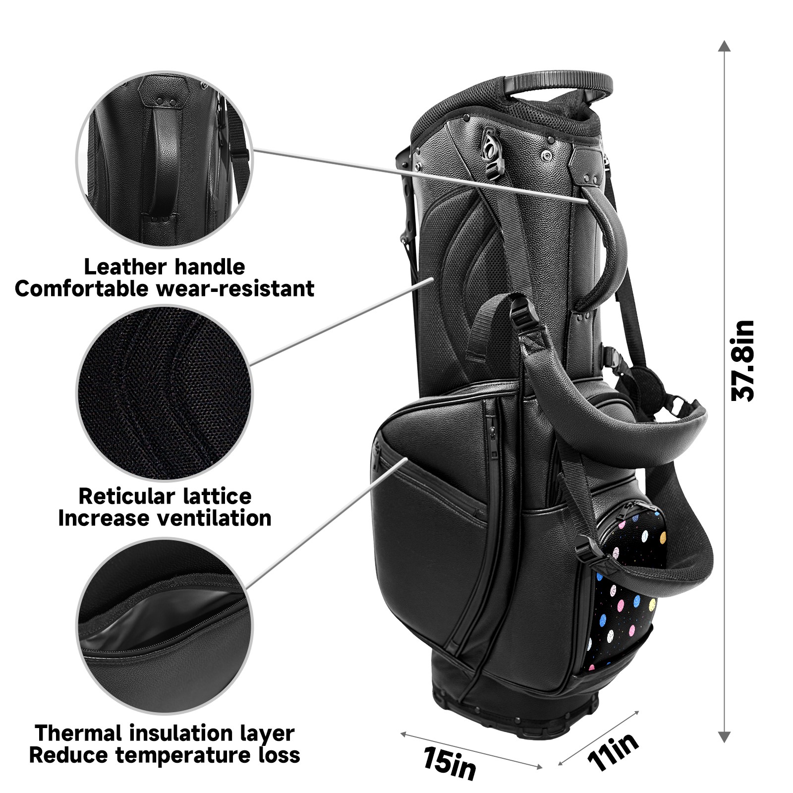 Lightweight Golf Stand Bag - 5-Way Top Divider, Golf Club Carry Bag with Adjustable Double Shoulder Straps, Zipper Storage Pockets + Rain Cover, Ideal for Golfers Dreamy Dot Black