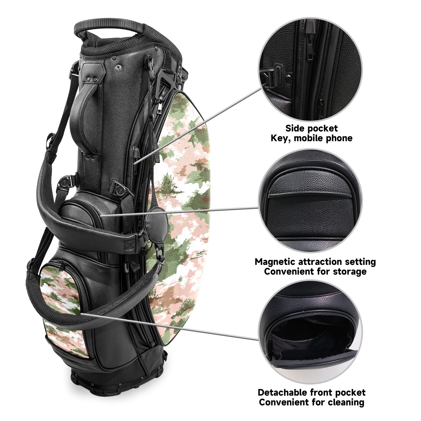 Lightweight Golf Stand Bag - 5-Way Top Divider, Golf Club Carry Bag with Adjustable Double Shoulder Straps, Zipper Storage Pockets + Rain Cover, Ideal for Golfers Soft Camouflage Pink