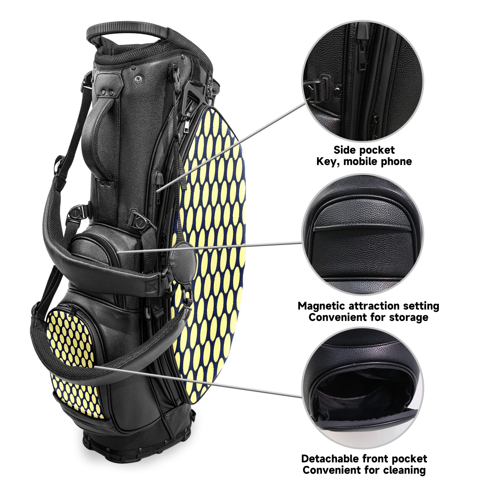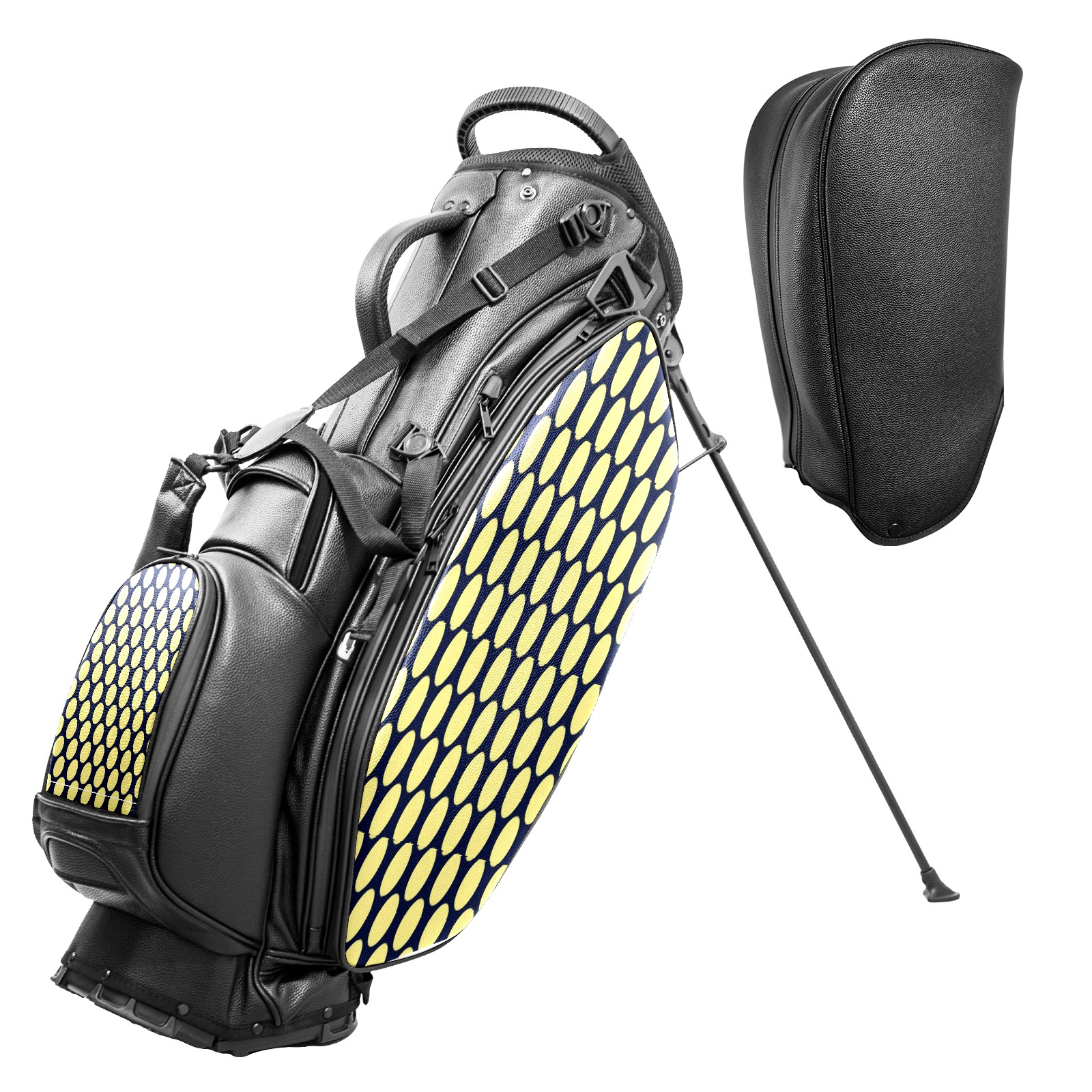 Lightweight Golf Stand Bag - 5-Way Top Divider, Golf Club Carry Bag with Adjustable Double Shoulder Straps, Zipper Storage Pockets + Rain Cover, Ideal for Golfers Yellow Polka Dots