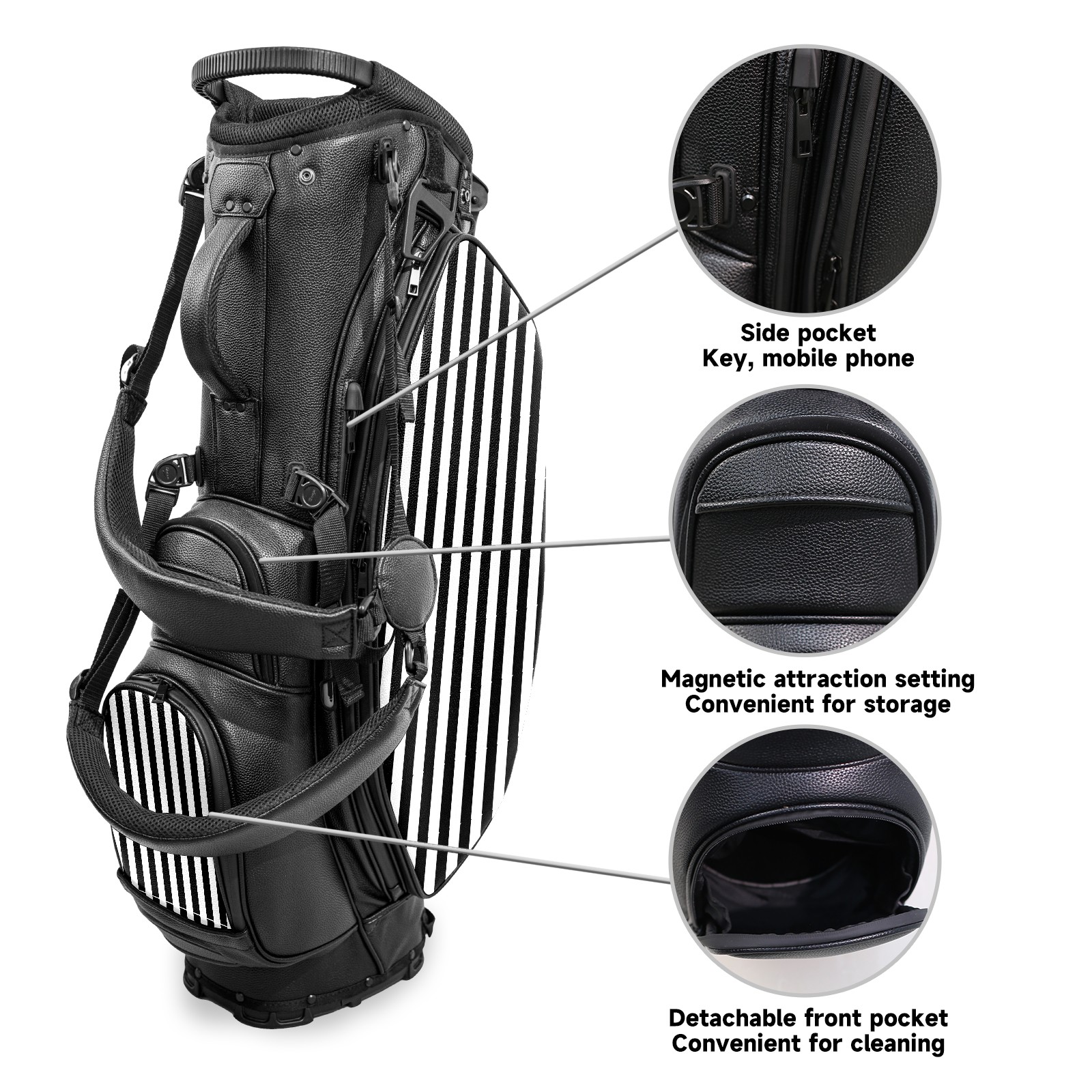 Lightweight Golf Stand Bag - 5-Way Top Divider, Golf Club Carry Bag with Adjustable Double Shoulder Straps, Zipper Storage Pockets + Rain Cover, Ideal for Golfers White And Black Simple Stripes Design