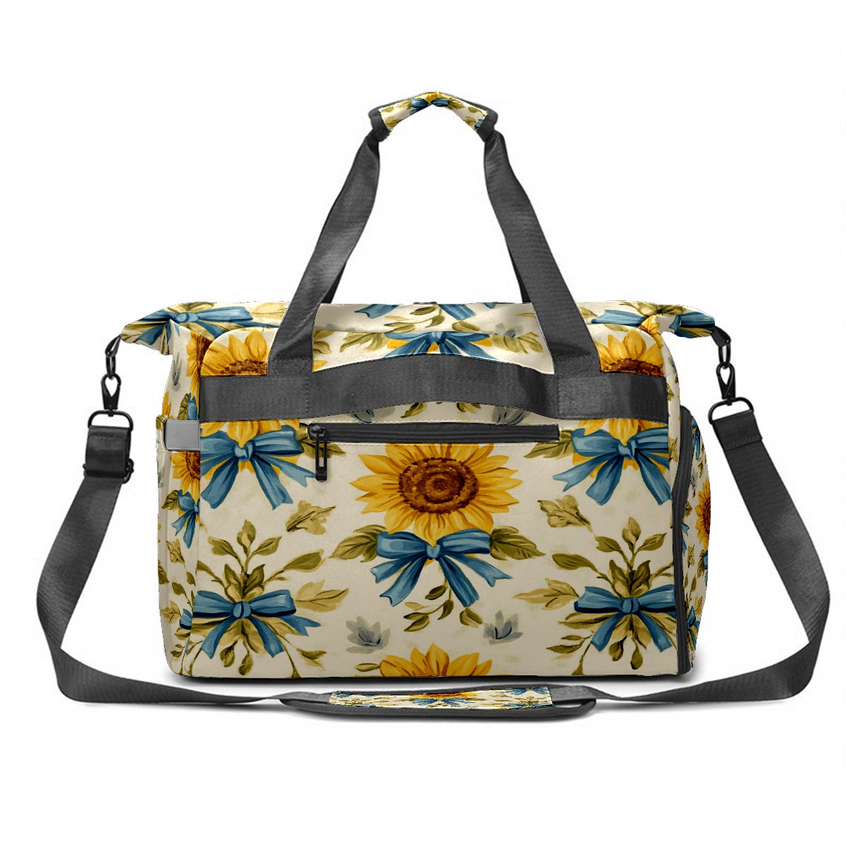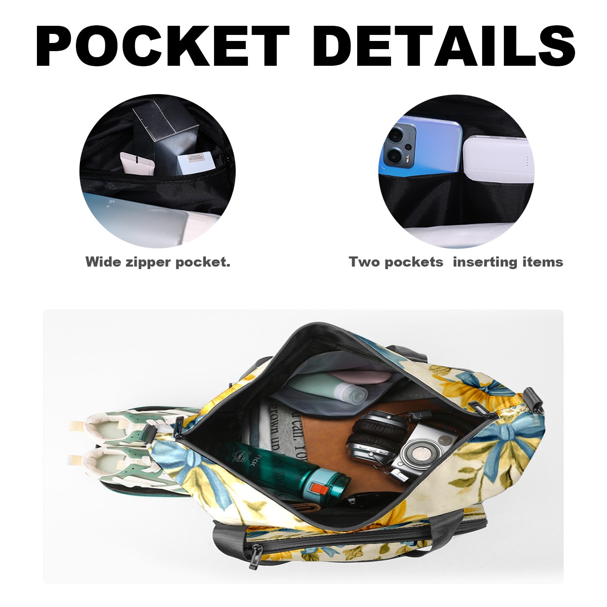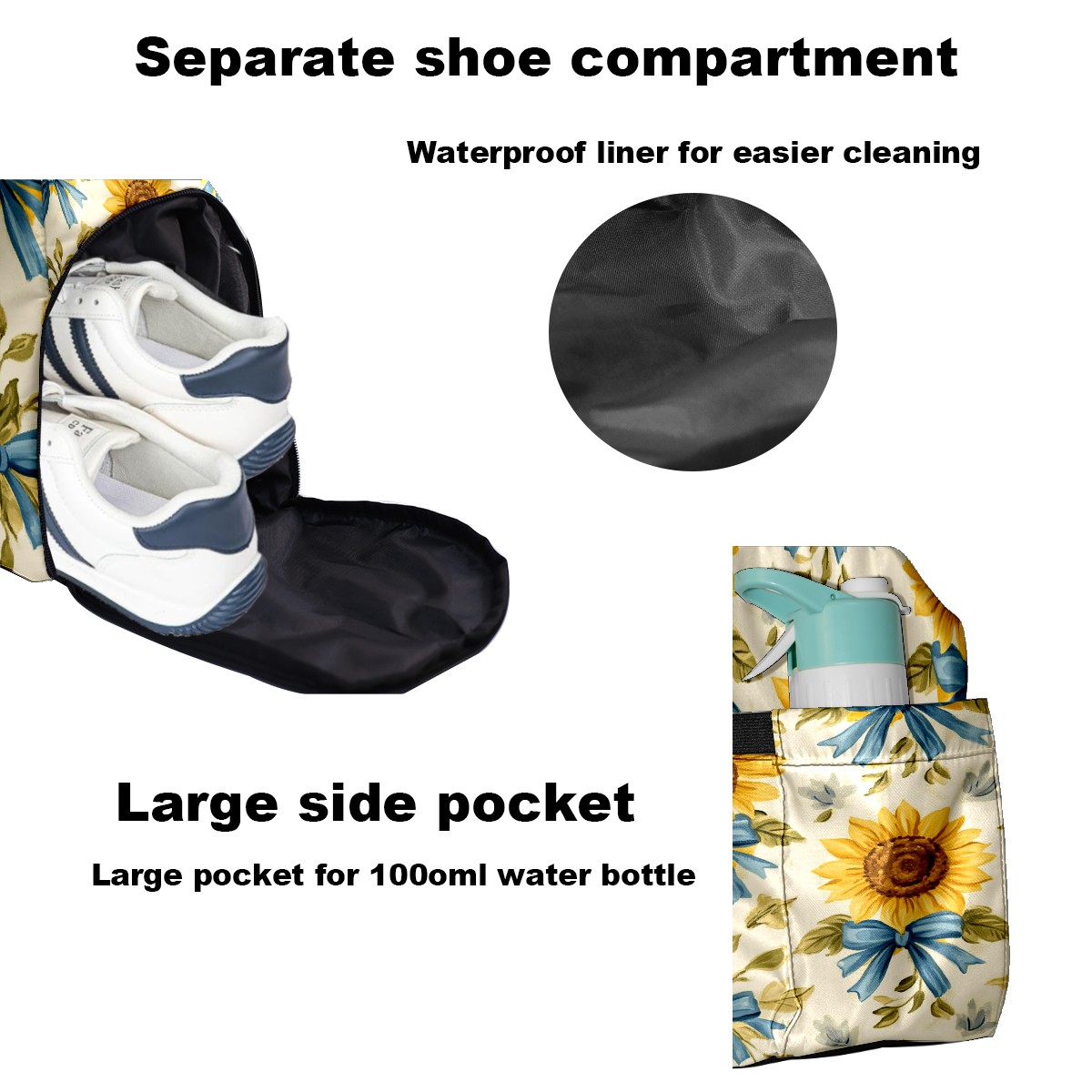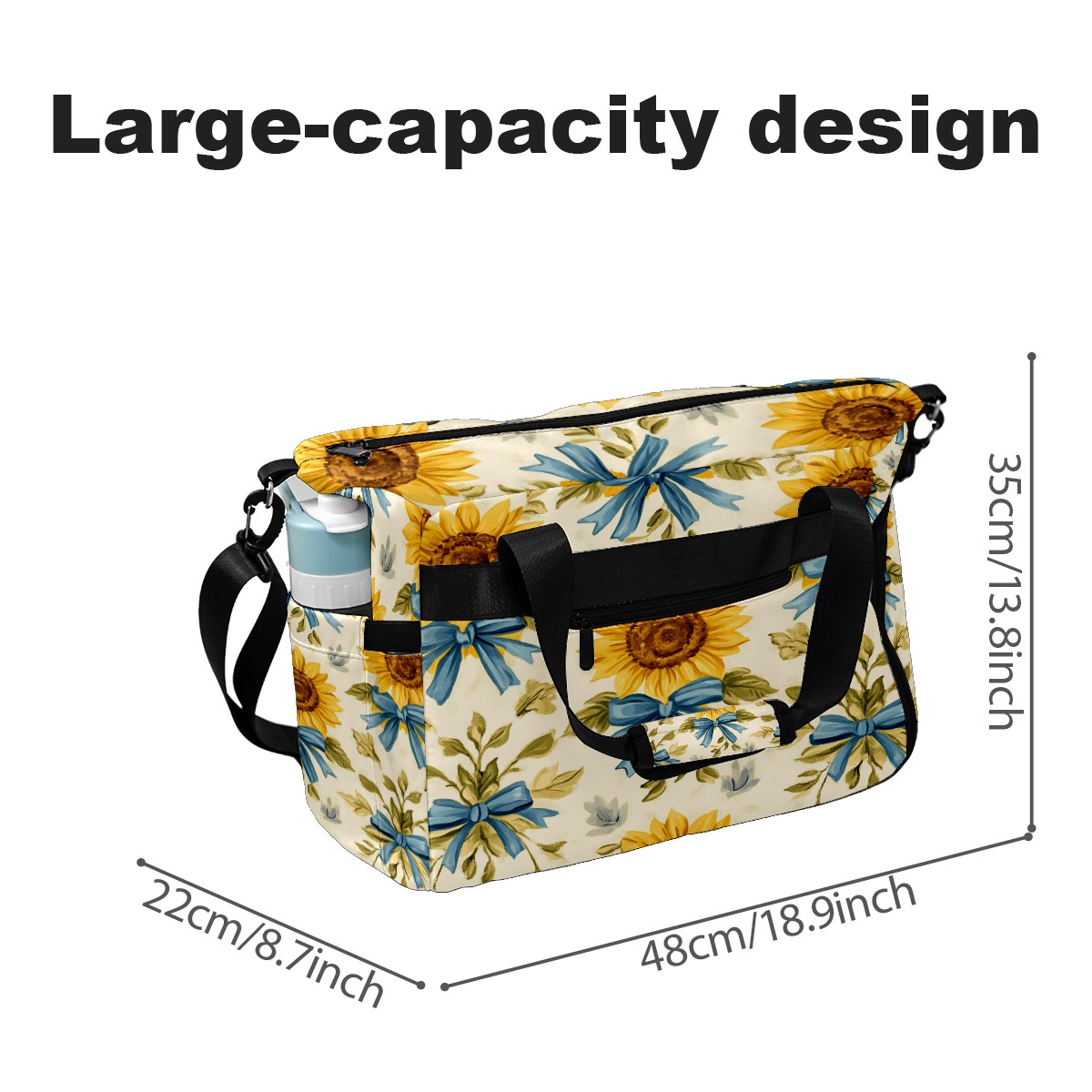 Pickleball Tote Bag Carryall for Paddles Balls and Accessories, Portable Lightweight Gear Bag for Players(Sunflowers And Blue Bows)