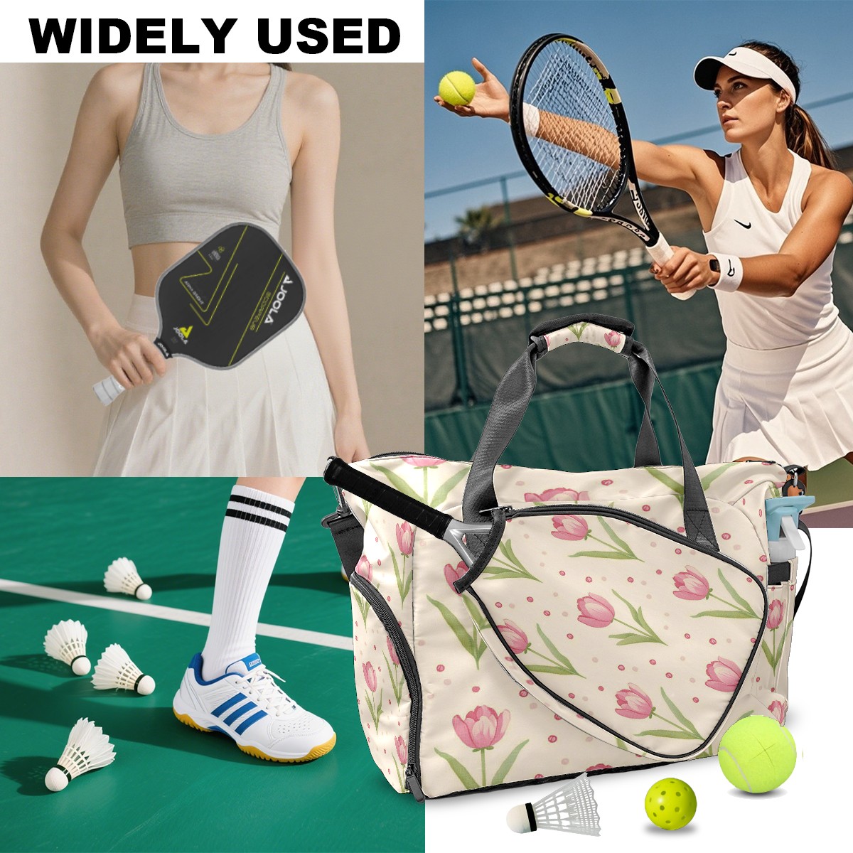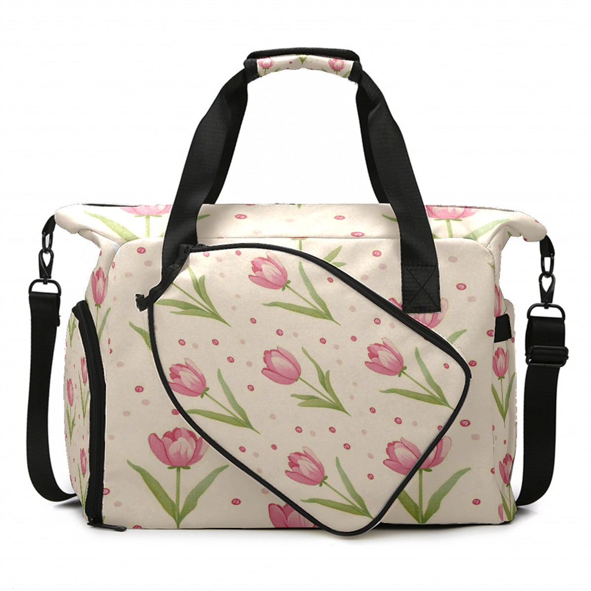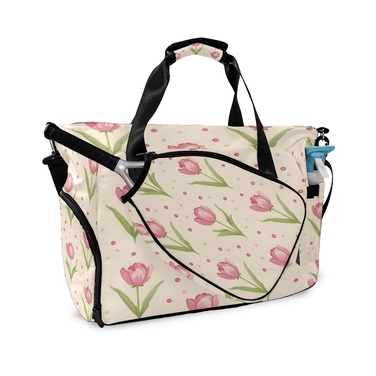 Pickleball Tote Bag Carryall for Paddles Balls and Accessories, Portable Lightweight Gear Bag for Players(Pink Tulip)