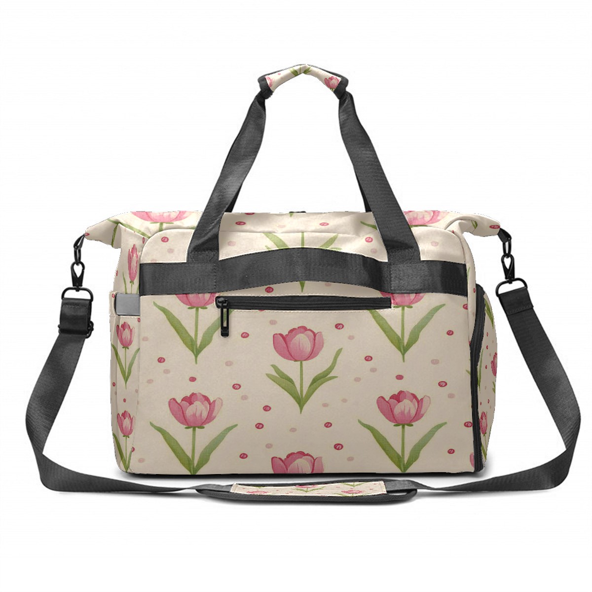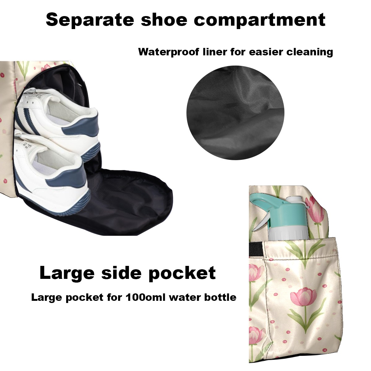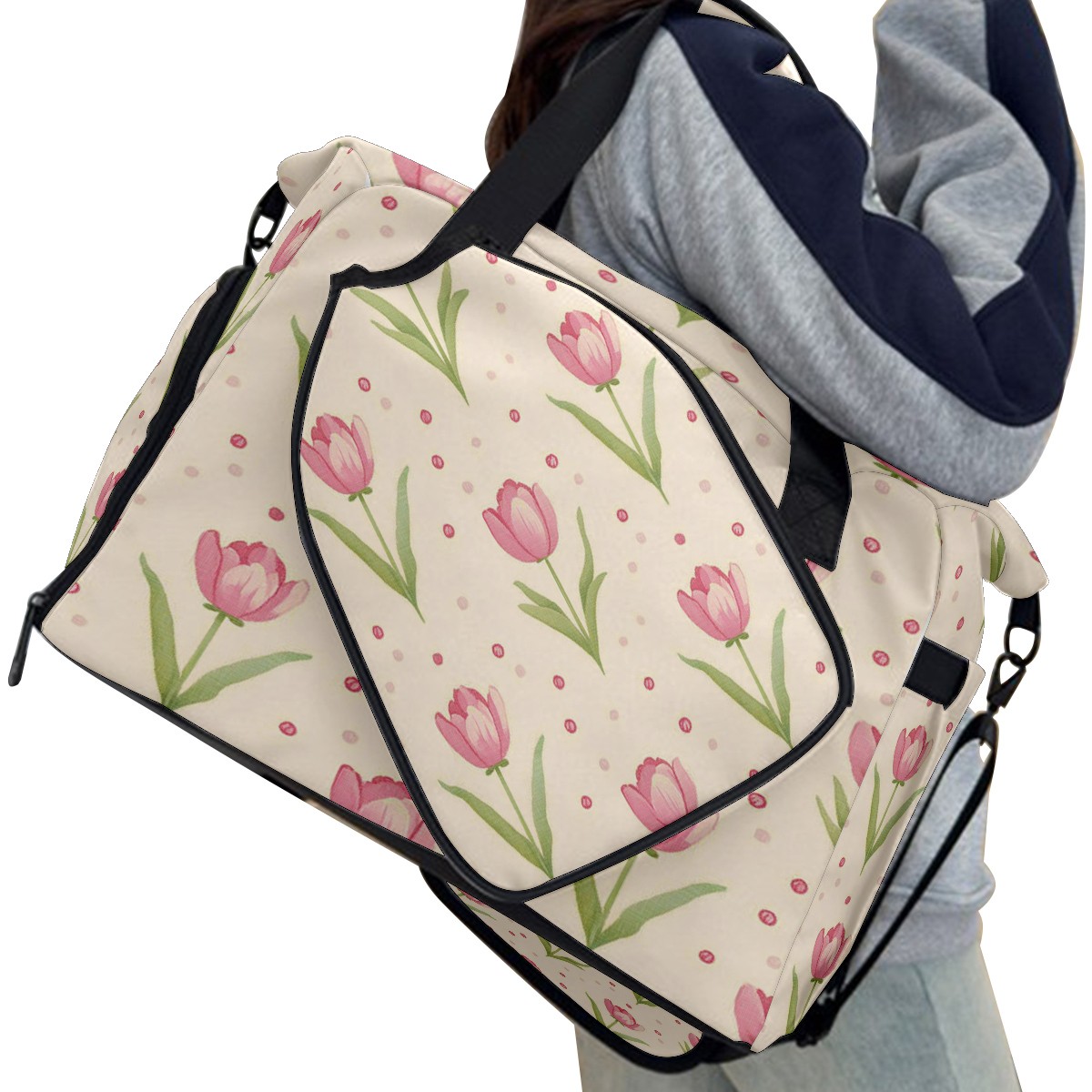 Pickleball Tote Bag Carryall for Paddles Balls and Accessories, Portable Lightweight Gear Bag for Players(Pink Tulip)
