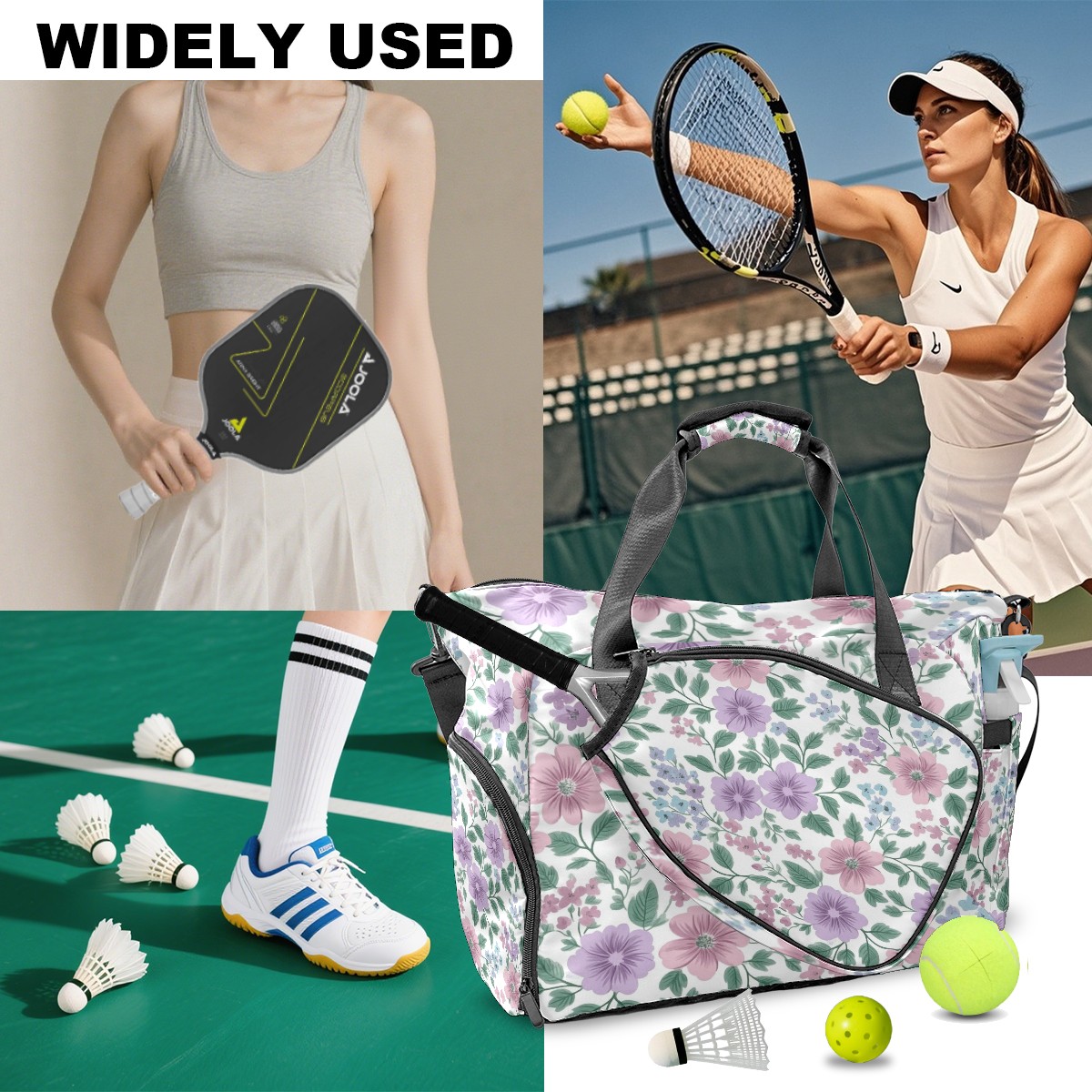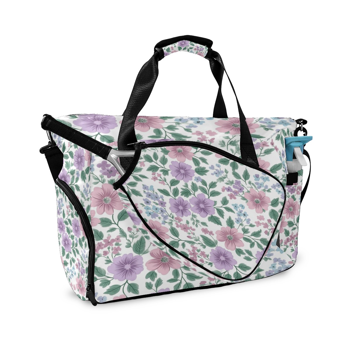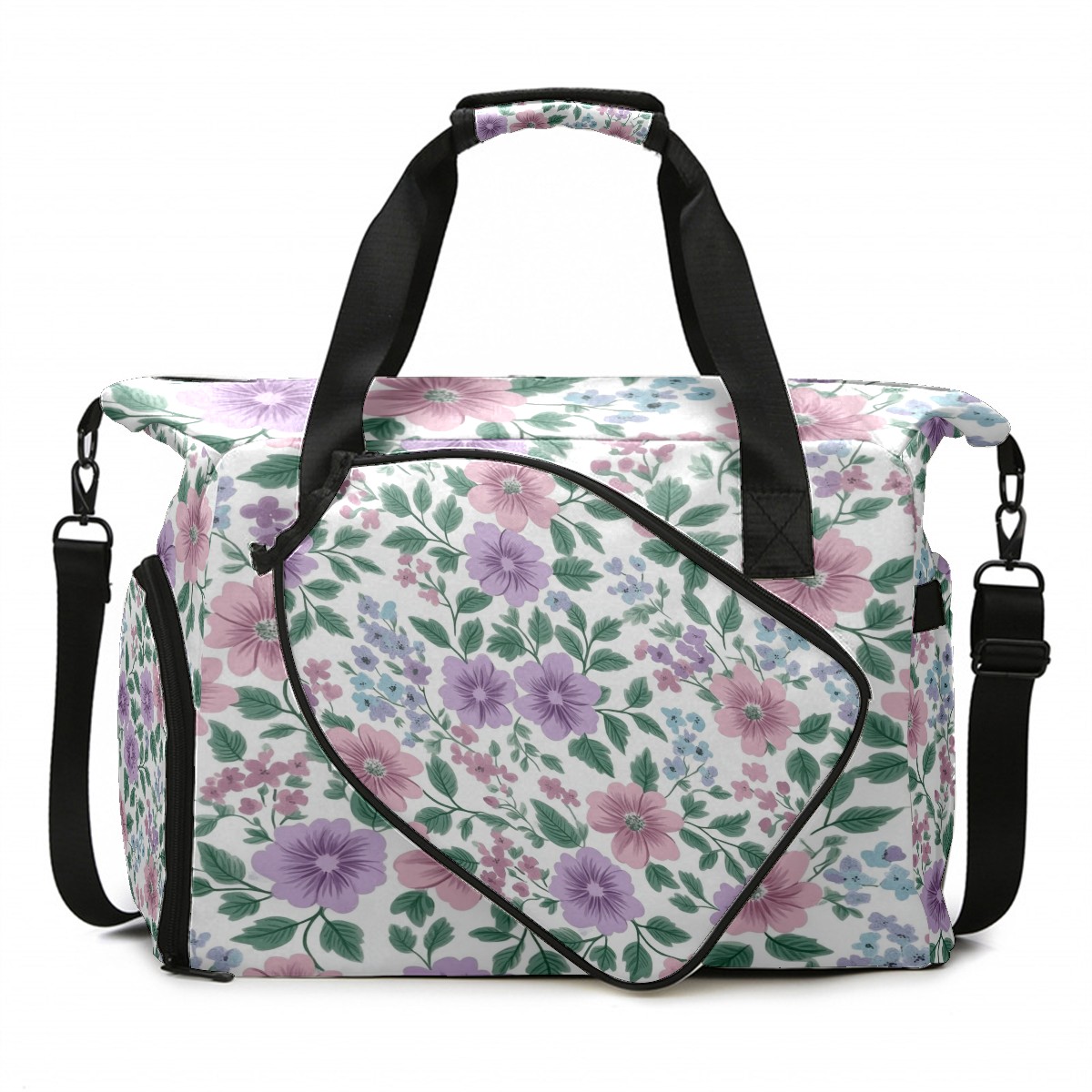 Pickleball Tote Bag Carryall for Paddles Balls and Accessories, Portable Lightweight Gear Bag for Players(Pink Lavender Floral)