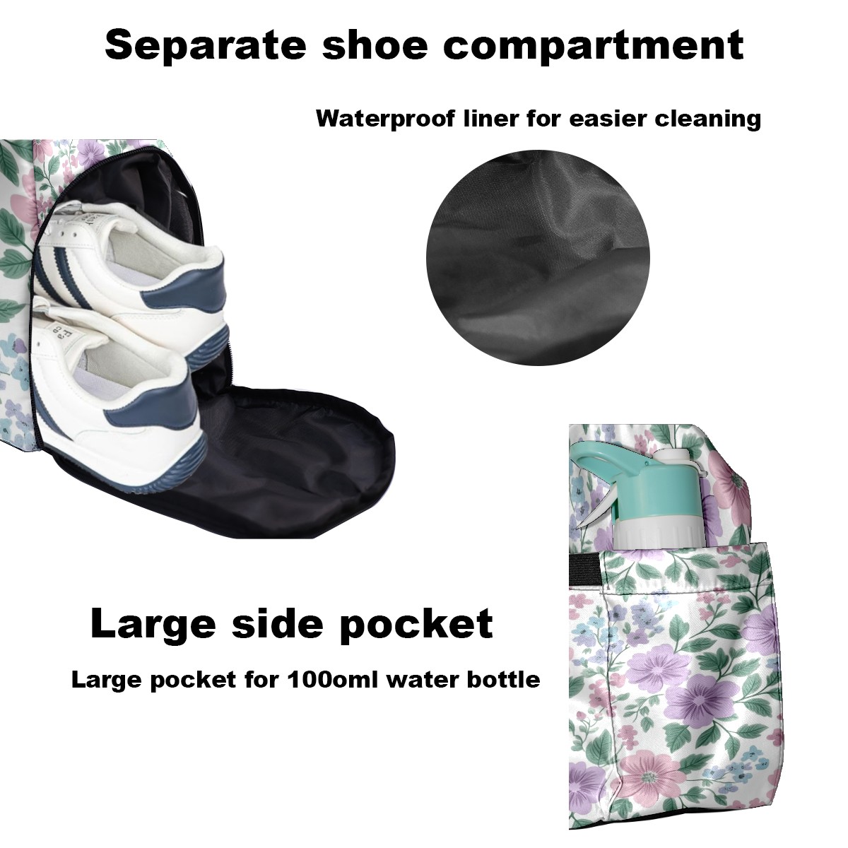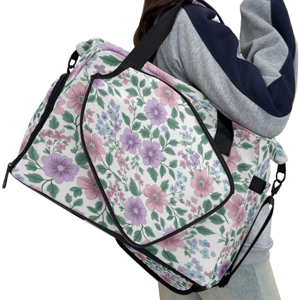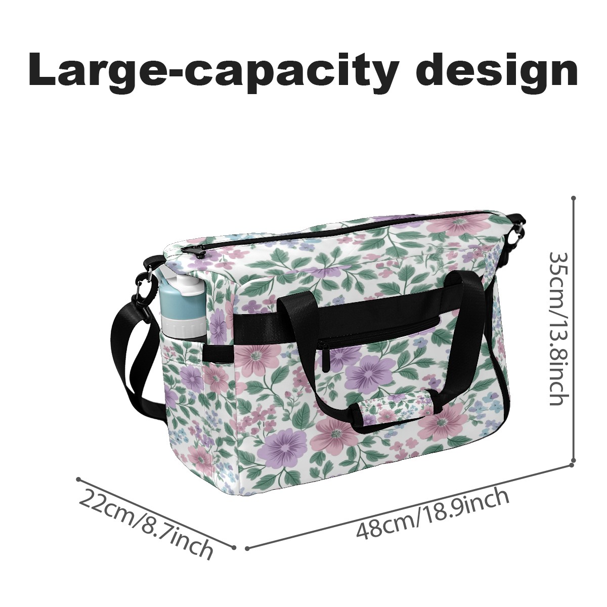 Pickleball Tote Bag Carryall for Paddles Balls and Accessories, Portable Lightweight Gear Bag for Players(Pink Lavender Floral)