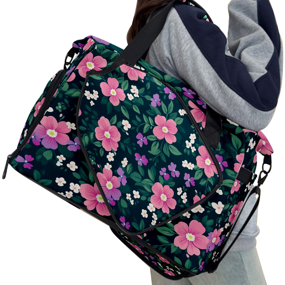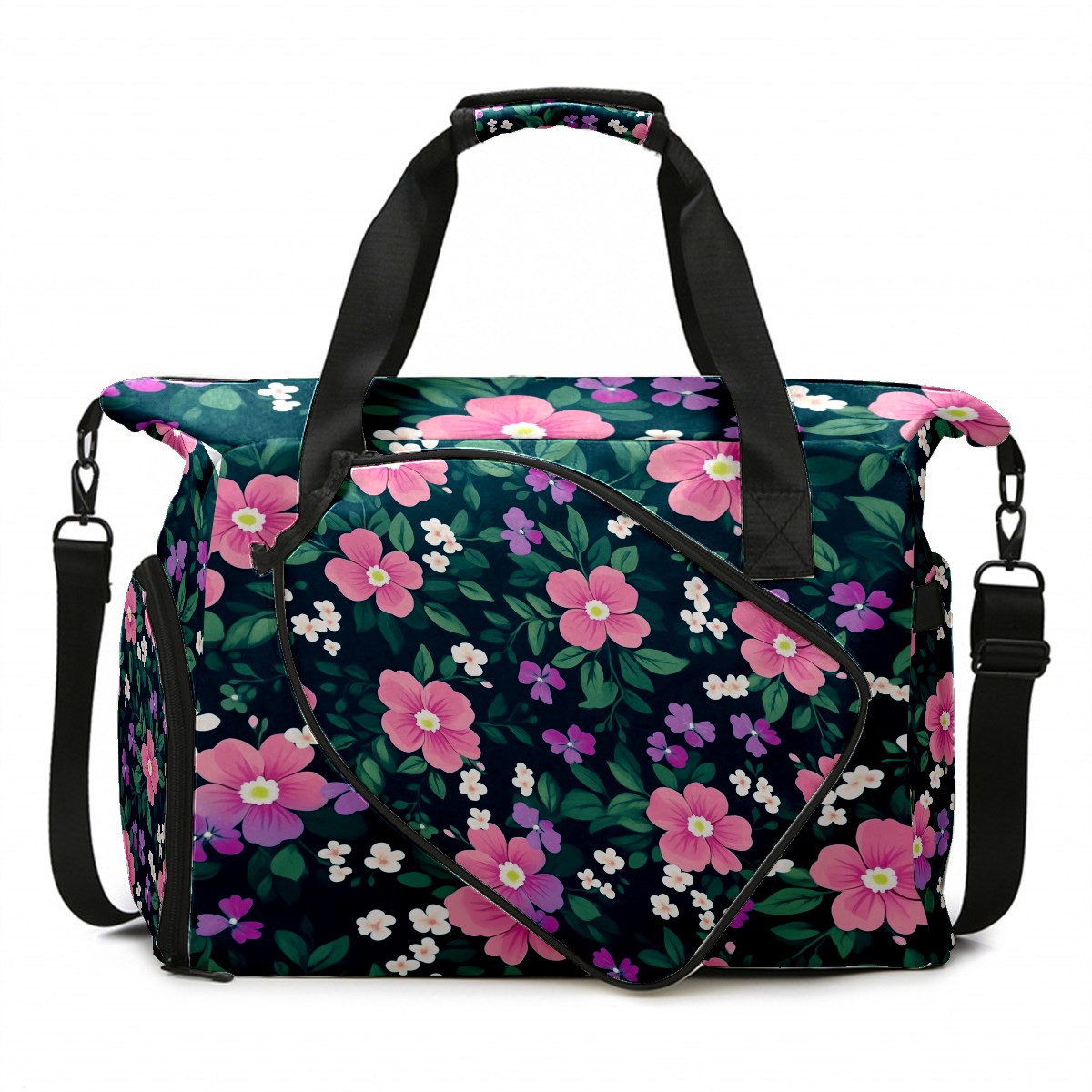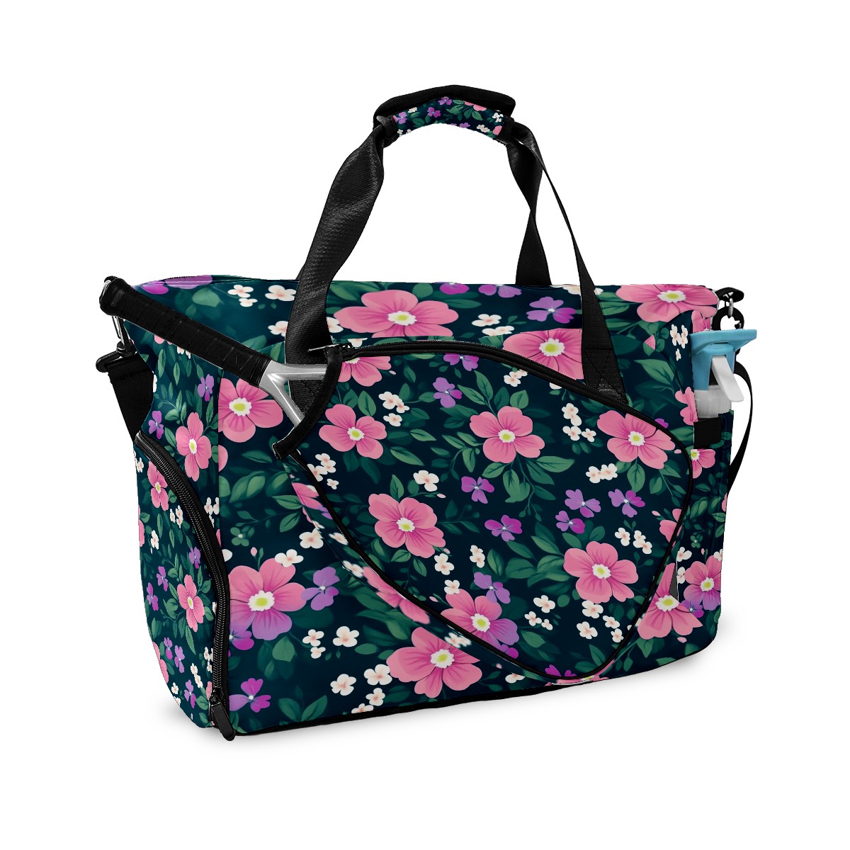 Pickleball Tote Bag Carryall for Paddles Balls and Accessories, Portable Lightweight Gear Bag for Players(Pink And Green Floral)