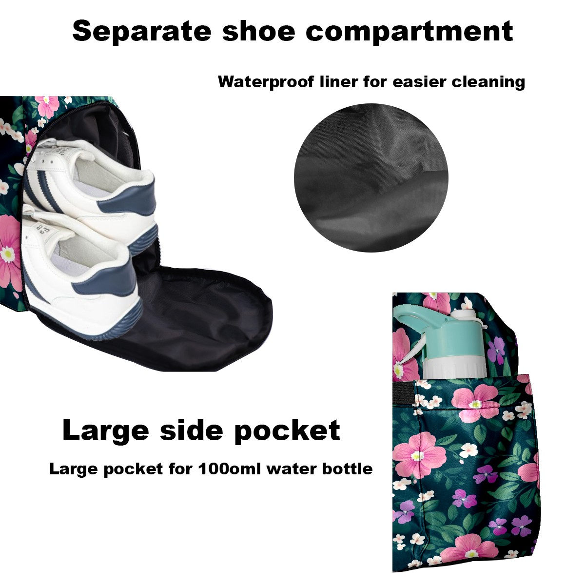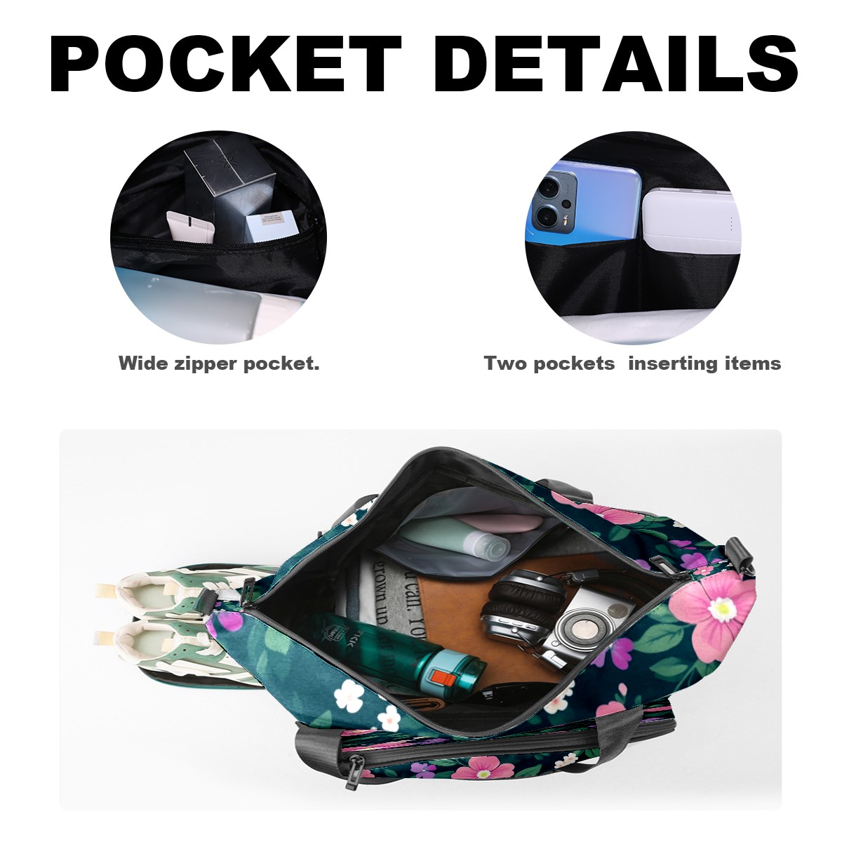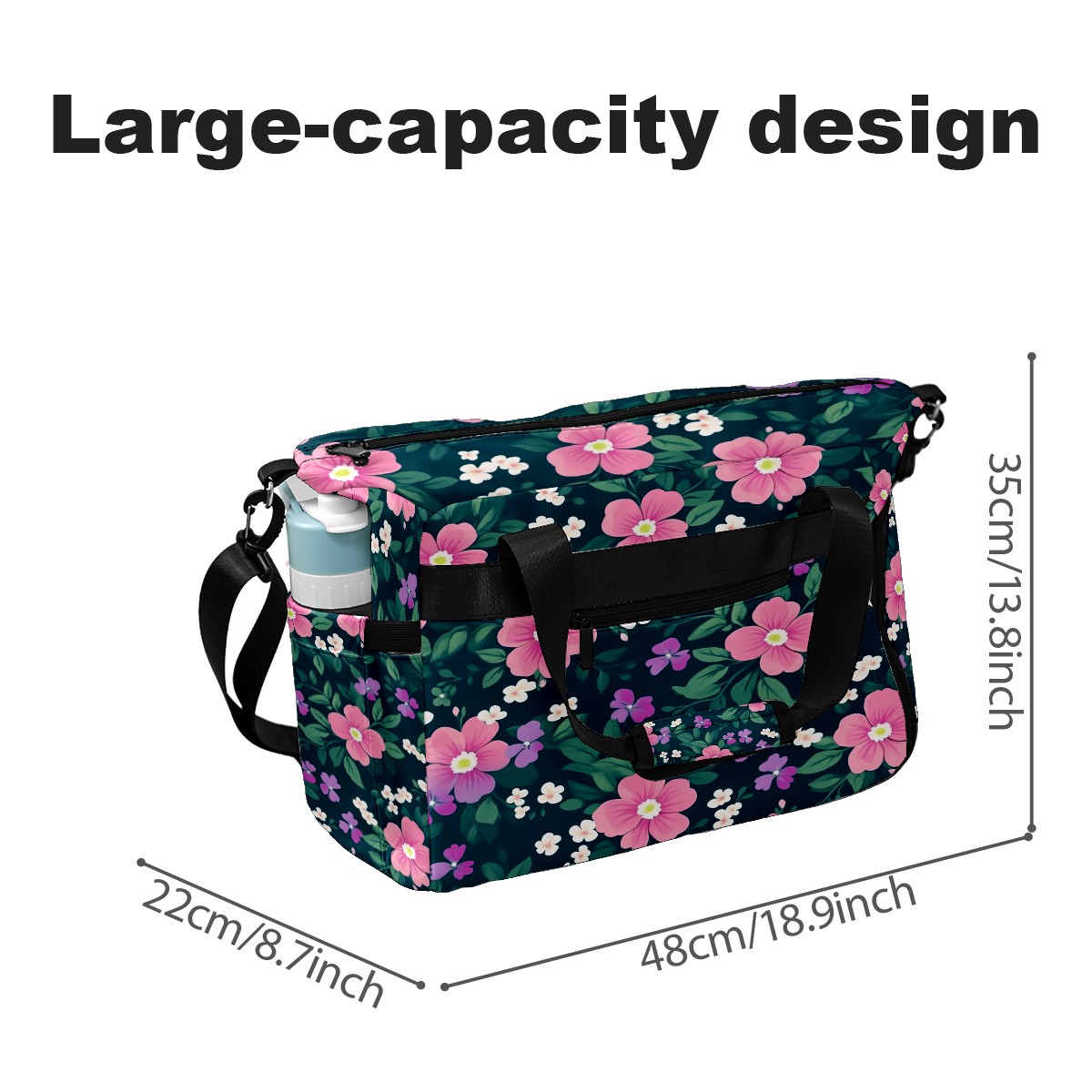 Pickleball Tote Bag Carryall for Paddles Balls and Accessories, Portable Lightweight Gear Bag for Players(Pink And Green Floral)
