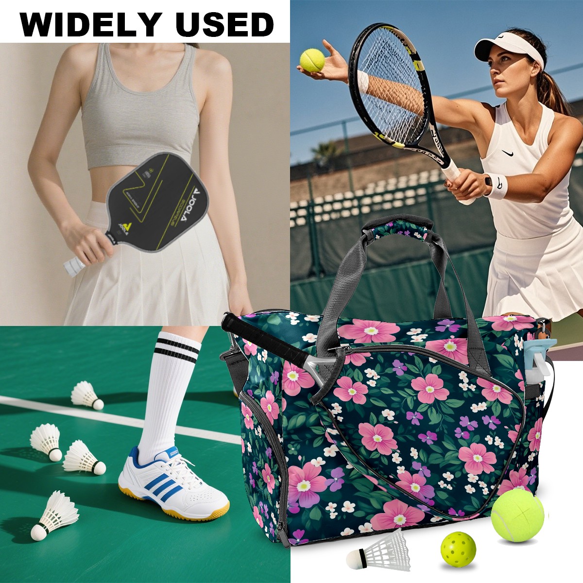 <p>Meet your ultimate court companion – the premium pickleball bag designed for players who demand durability and smart organization. Whether you're heading to a local tournament or a casual game with friends, our meticulously crafted bag keeps your gear secure, accessible, and tournament-ready.</p> <p><b>Built for the Active Lifestyle:</b></p> <p>From casual pickleball games to competitive leagues, this bag adapts to your needs. Store paddles, balls, towels, water bottles, and phones in intelligently placed pockets. The nylon fabric construction withstands court abrasions and daily use season after season.</p>