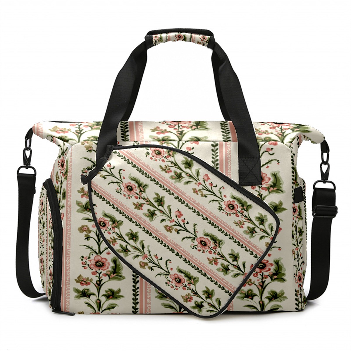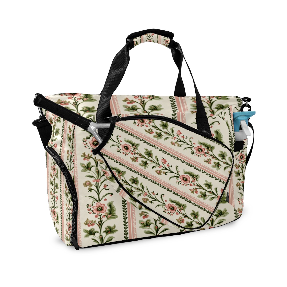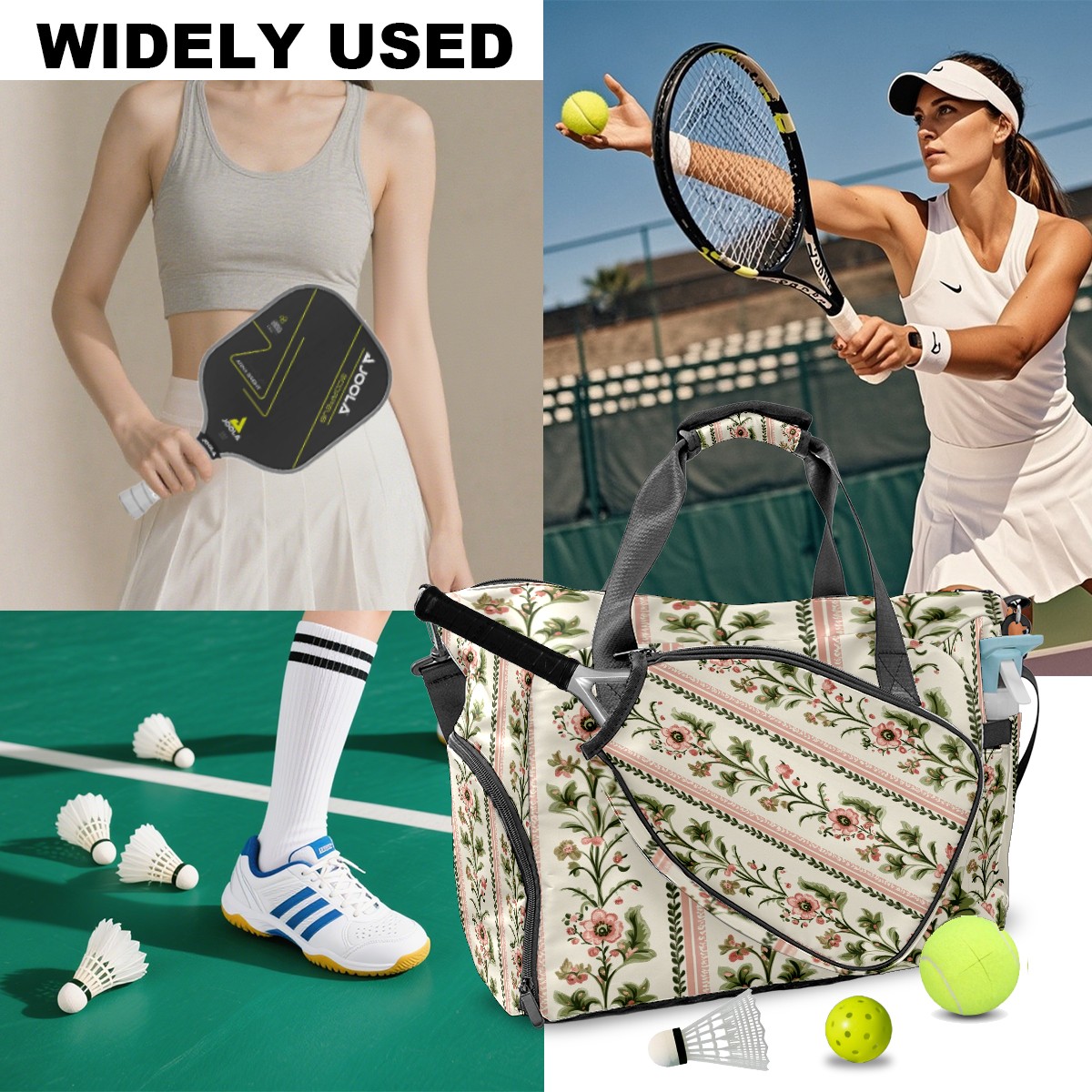 Pickleball Tote Bag Carryall for Paddles Balls and Accessories, Portable Lightweight Gear Bag for Players(Pink And Green Flowers)