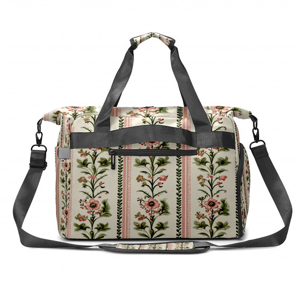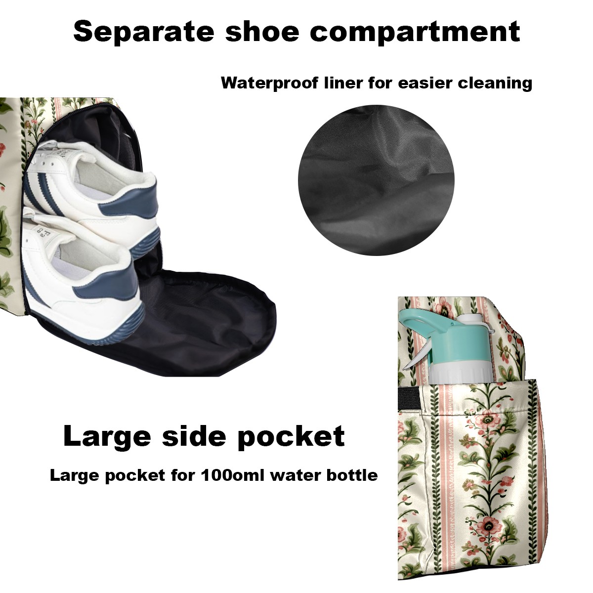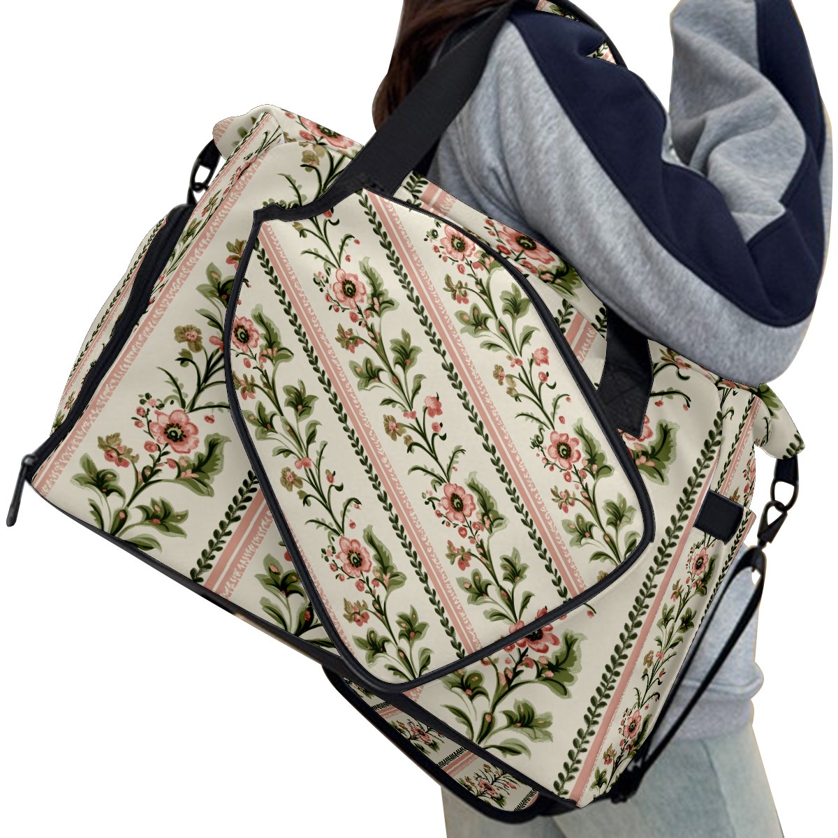 Pickleball Tote Bag Carryall for Paddles Balls and Accessories, Portable Lightweight Gear Bag for Players(Pink And Green Flowers)