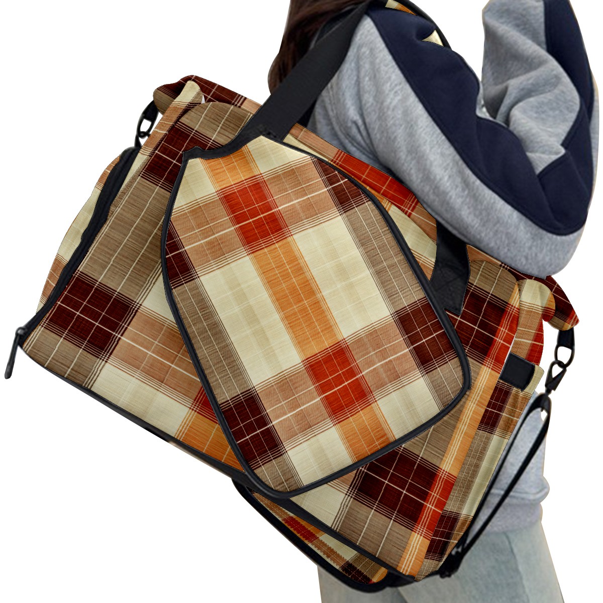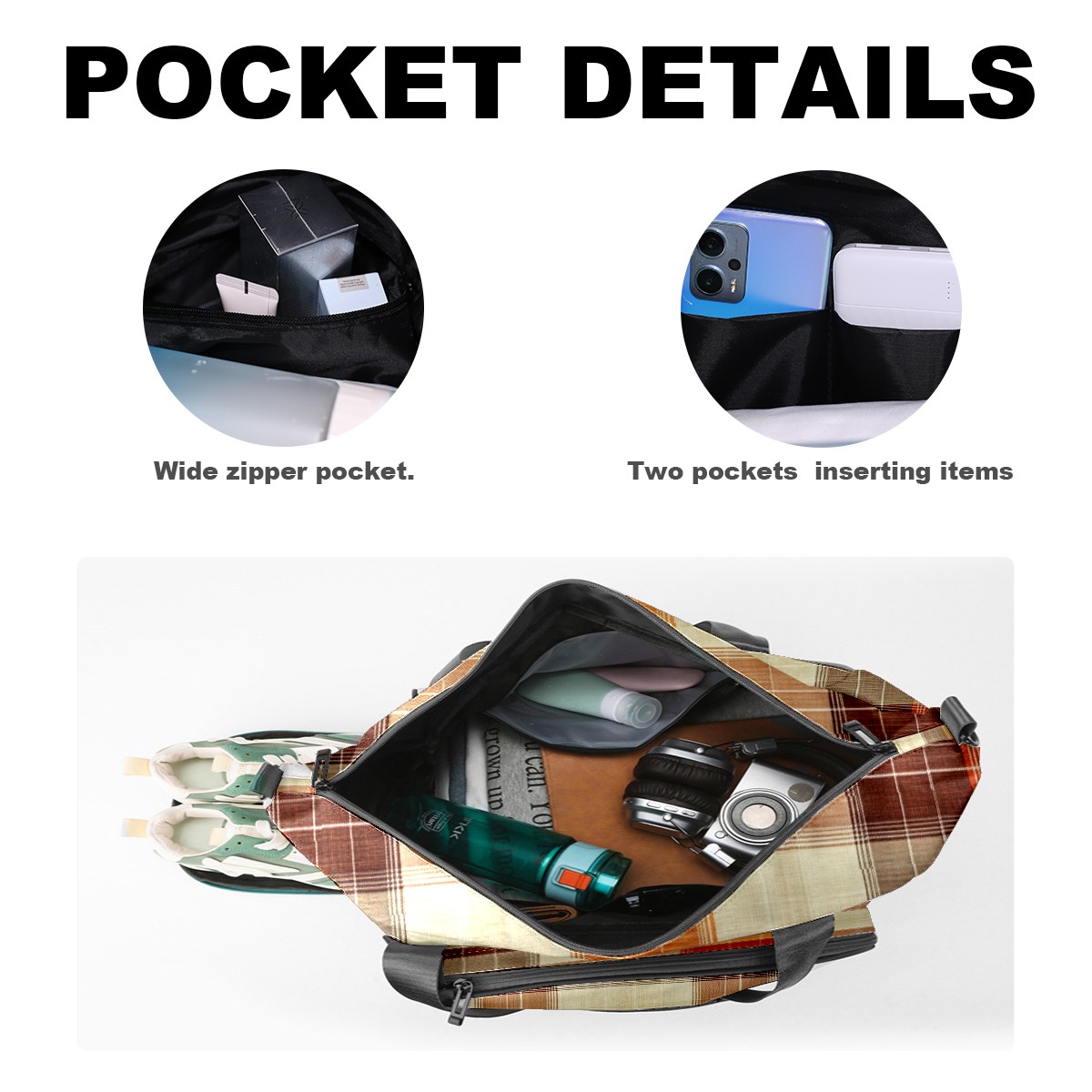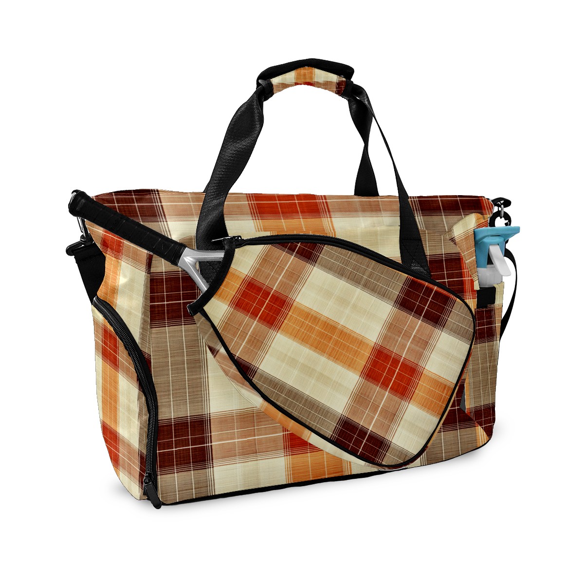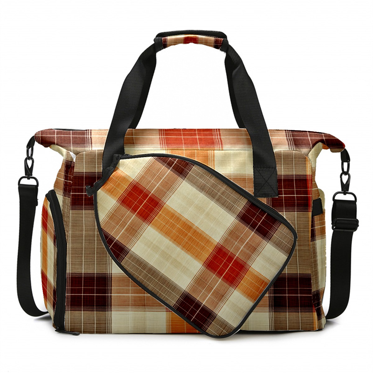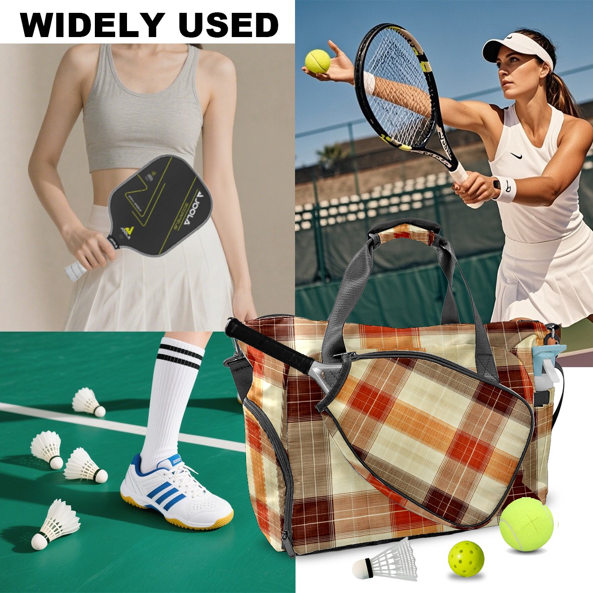 Lightweight Pickleball Tote Bag with Large Capacity, Shoe Compartment, Large Paddle Storage, Water Bottle Holder & Fence Hook for Women & Men Brown Checkered Pattern
