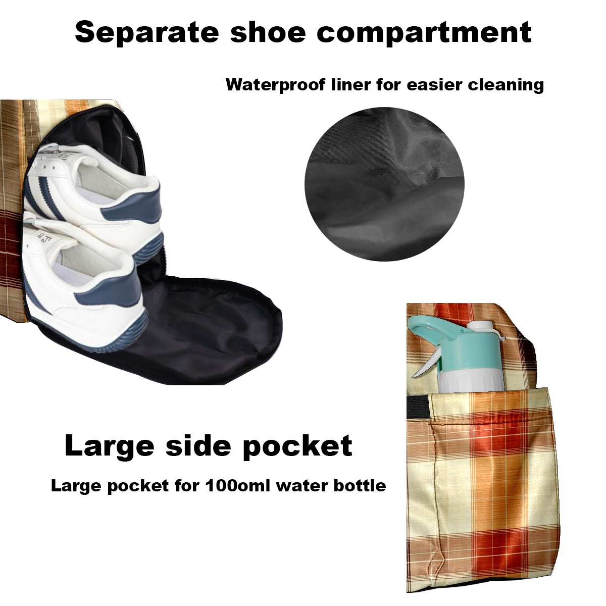 <p>Multifunctional Gym Travel Bag Made of Twill Fabric 22cm x 48cm x 35cm (8.7in x 18.9in x 13.8in) Made of lightweight and durable twill fabric, this bag is perfect for an active lifestyle. The spacious main compartment easily holds clothing, towels, and a full set of gym gear. A smart pocket precisely stores your phone, earphones, and gym membership card. A ventilated shoe compartment can hold size 10 athletic shoes, and a waterproof wet bag isolates swimwear or sweaty clothing, effectively preventing odors and clutter. It's a professional gym bag suitable for spinning and strength training, a stylish everyday handbag, and can also meet diverse needs such as pickleball, weekend trips, and overnight stays. Combining functionality and style, it seamlessly integrates into various scenarios.<br></p>