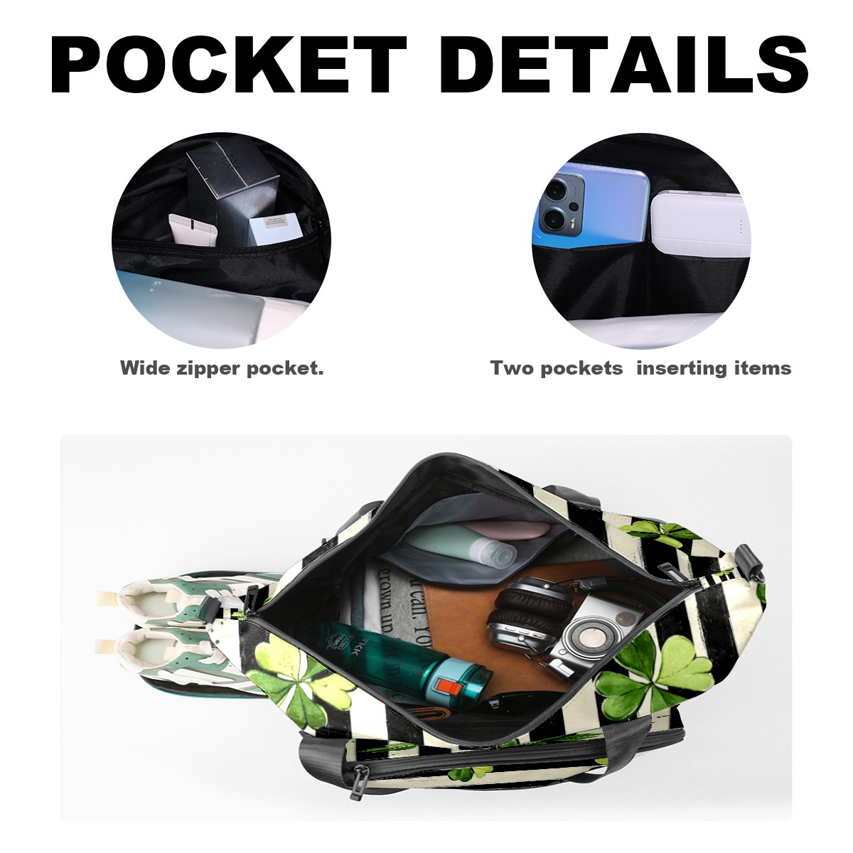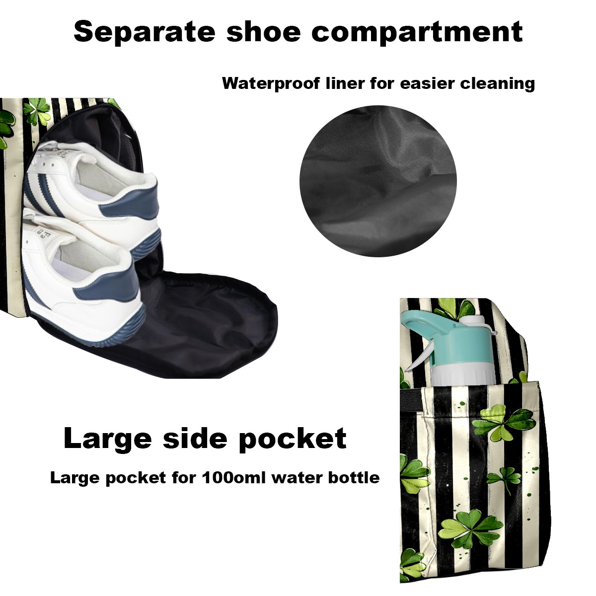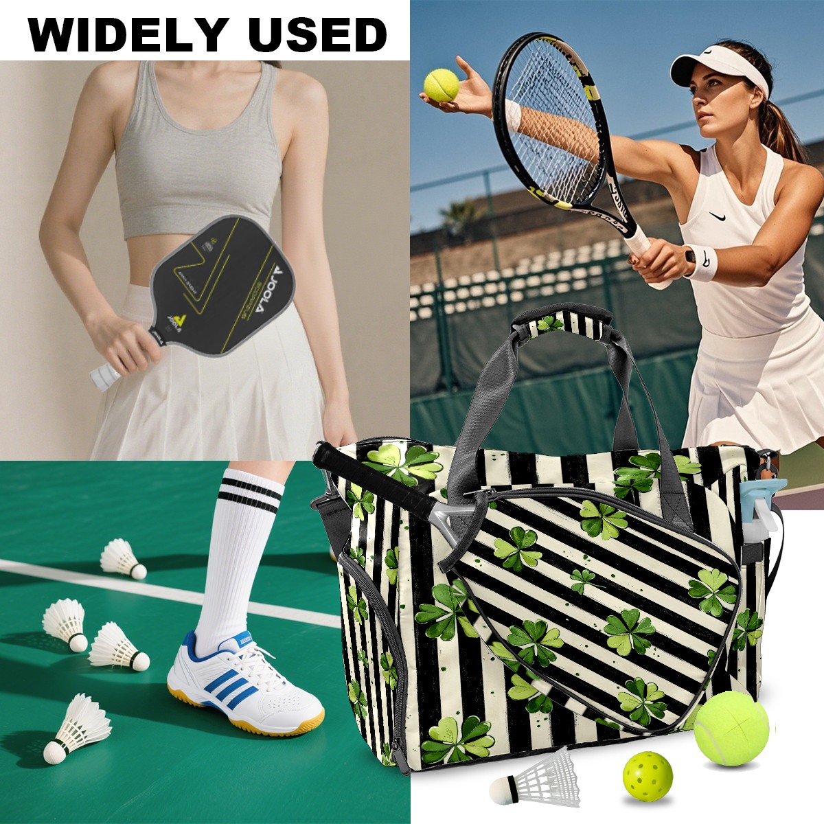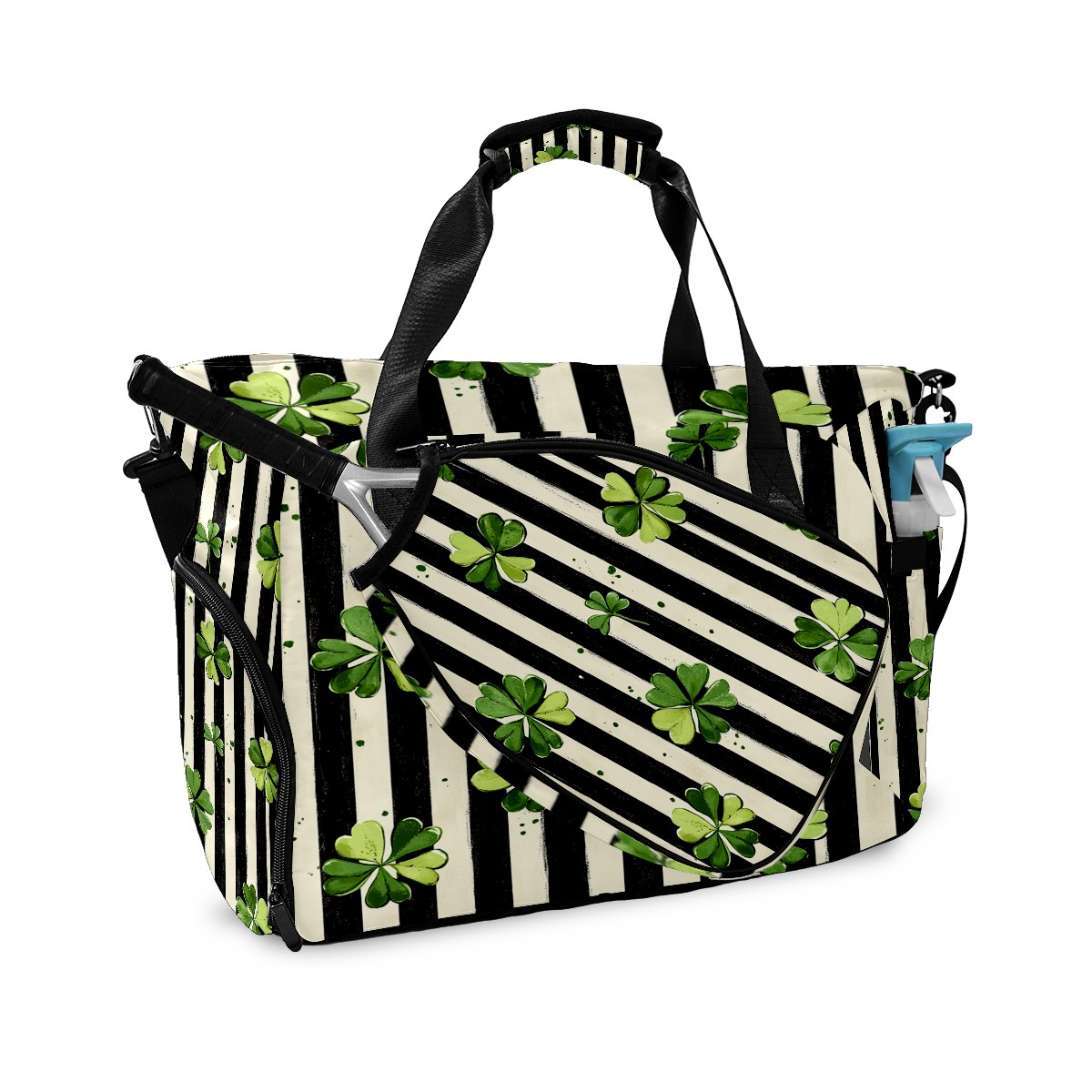 Lightweight Pickleball Tote Bag with Large Capacity, Shoe Compartment, Large Paddle Storage, Water Bottle Holder & Fence Hook for Women & Men Striped Clover Pattern3
