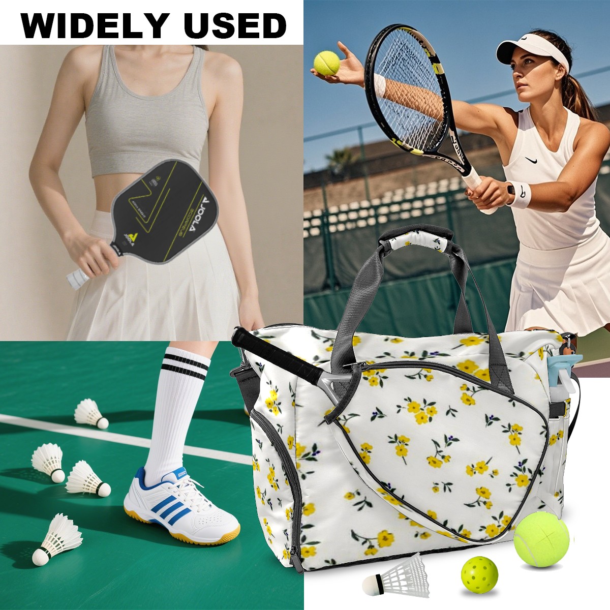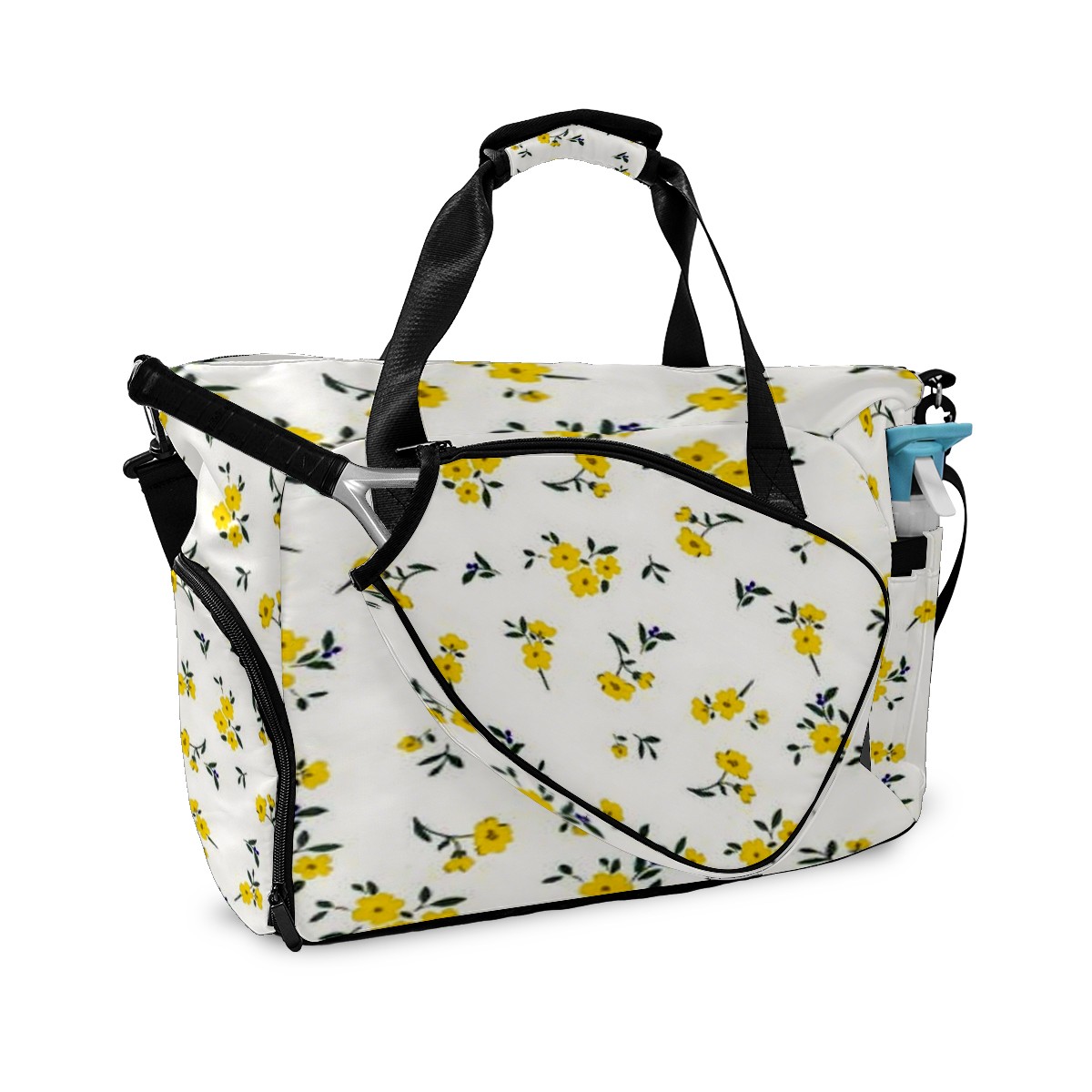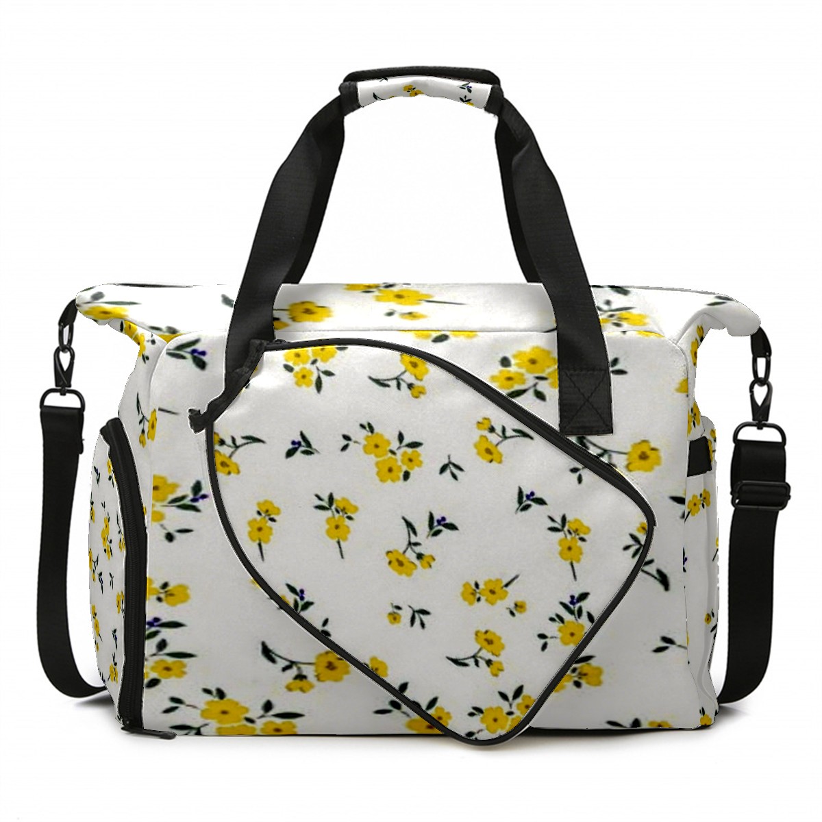 Lightweight Pickleball Tote Bag with Large Capacity, Shoe Compartment, Large Paddle Storage, Water Bottle Holder & Fence Hook for Women & Men Flower