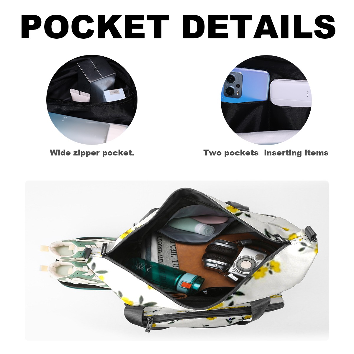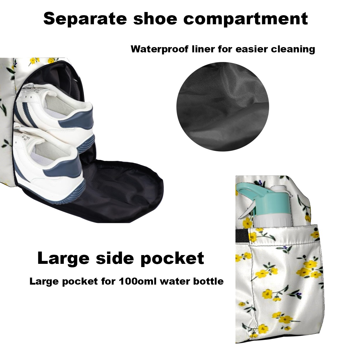 • <p>Multifunctional Gym Travel Bag Made of Twill Fabric 22cm x 48cm x 35cm (8.7in x 18.9in x 13.8in) Made of lightweight and durable twill fabric, this bag is perfect for an active lifestyle. The spacious main compartment easily holds clothing, towels, and a full set of gym gear. A smart pocket precisely stores your phone, earphones, and gym membership card. A ventilated shoe compartment can hold size 10 athletic shoes, and a waterproof wet bag isolates swimwear or sweaty clothing, effectively preventing odors and clutter. It's a professional gym bag suitable for spinning and strength training, a stylish everyday handbag, and can also meet diverse needs such as pickleball, weekend trips, and overnight stays. Combining functionality and style, it seamlessly integrates into various scenarios.<br></p>