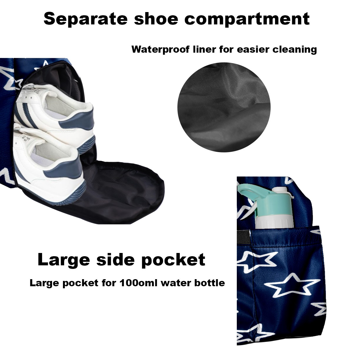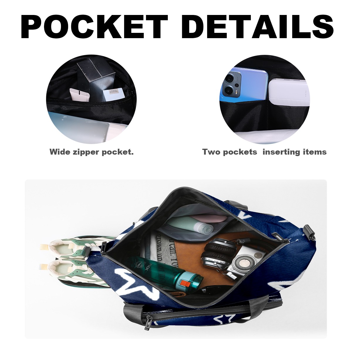 • <p>Multifunctional Gym Travel Bag Made of Twill Fabric 22cm x 48cm x 35cm (8.7in x 18.9in x 13.8in) Made of lightweight and durable twill fabric, this bag is perfect for an active lifestyle. The spacious main compartment easily holds clothing, towels, and a full set of gym gear. A smart pocket precisely stores your phone, earphones, and gym membership card. A ventilated shoe compartment can hold size 10 athletic shoes, and a waterproof wet bag isolates swimwear or sweaty clothing, effectively preventing odors and clutter. It's a professional gym bag suitable for spinning and strength training, a stylish everyday handbag, and can also meet diverse needs such as pickleball, weekend trips, and overnight stays. Combining functionality and style, it seamlessly integrates into various scenarios.<br></p>