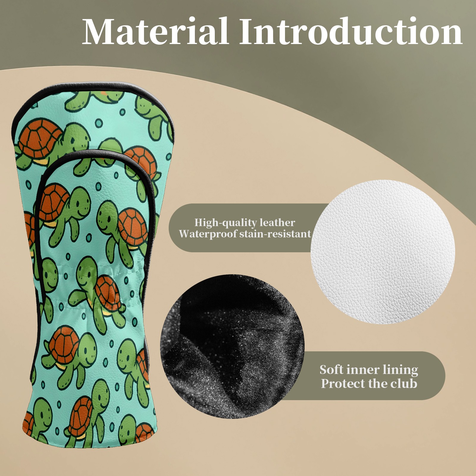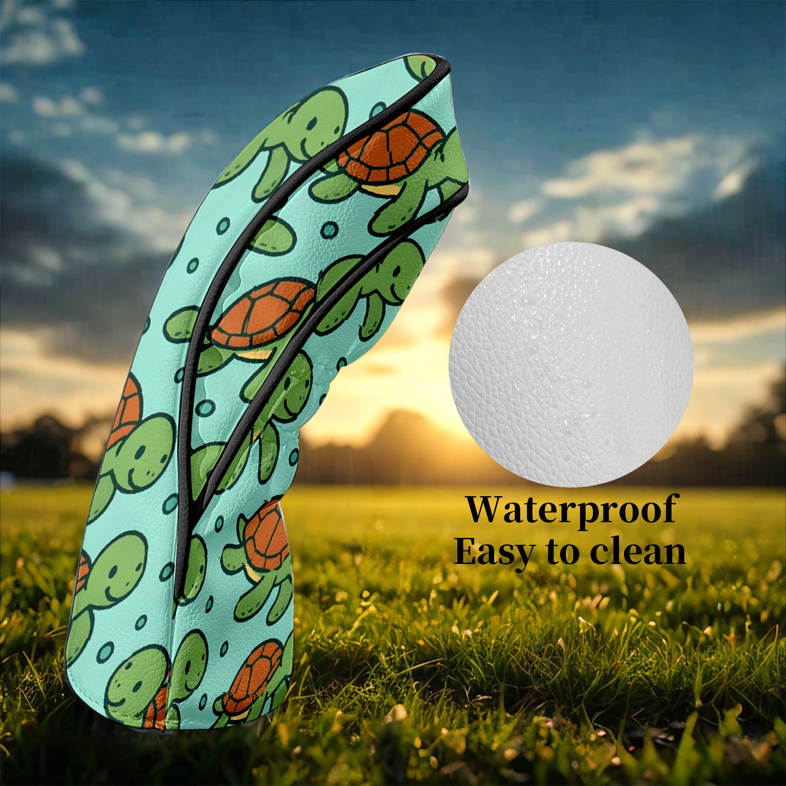 Golf Club Head Covers Fresh Turtle Teal Premium Plush Velvet Lining, Waterproof Golf Headcovers Driver & Fairway Woods for Scratch Protection Novelty Gift for Men & Women
