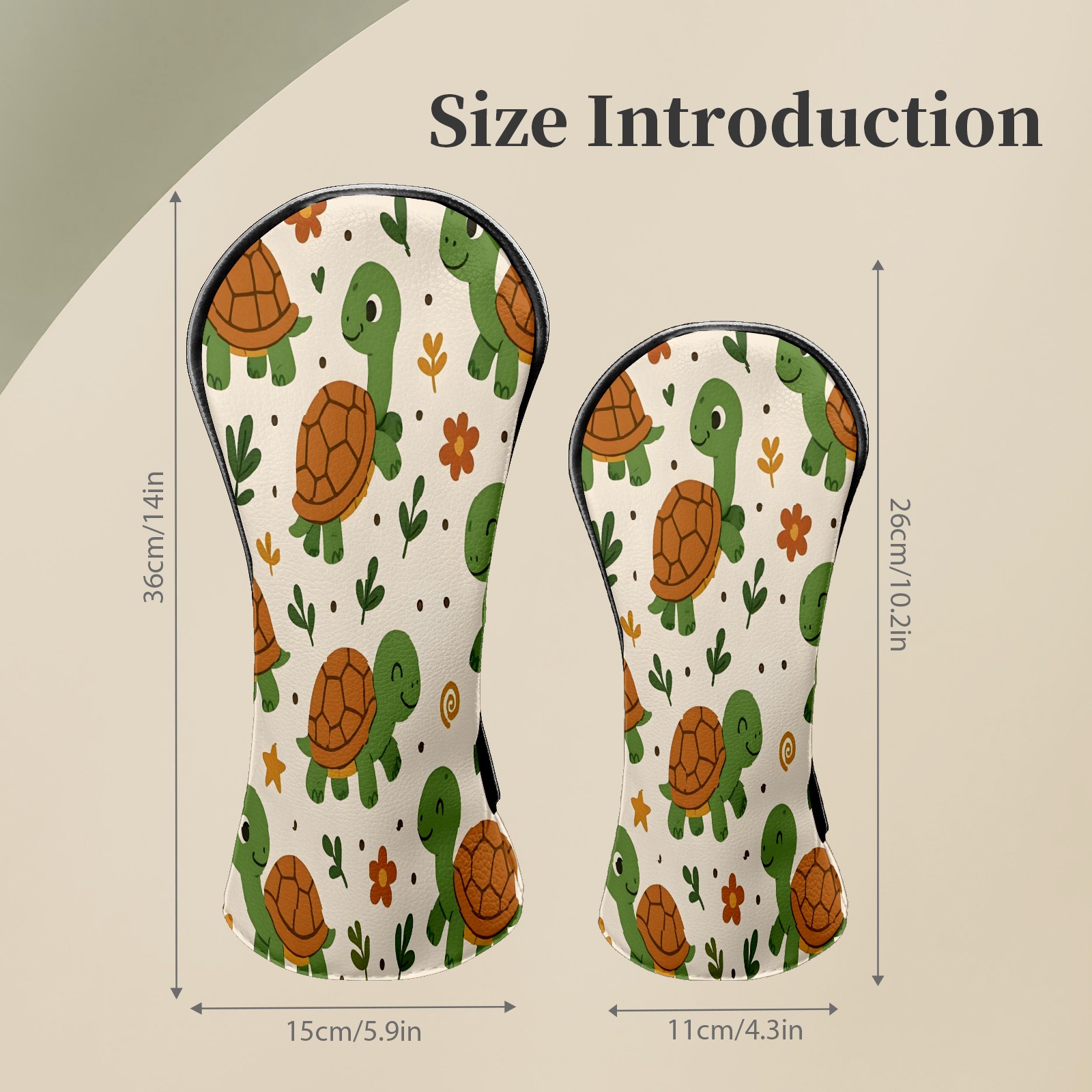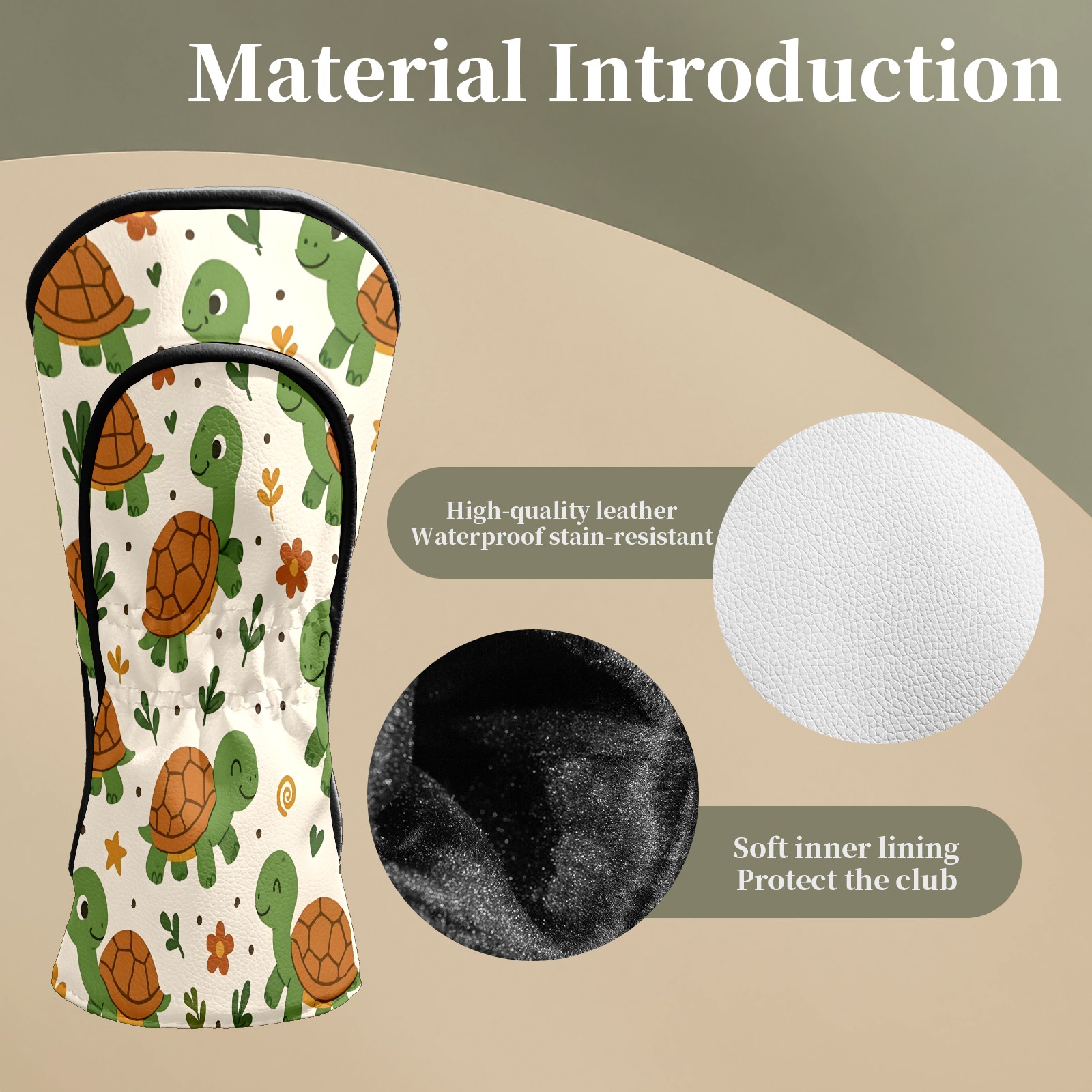Golf Club Head Covers Cute Turtle Beige Premium Plush Velvet Lining, Waterproof Golf Headcovers Driver & Fairway Woods for Scratch Protection Novelty Gift for Men & Women