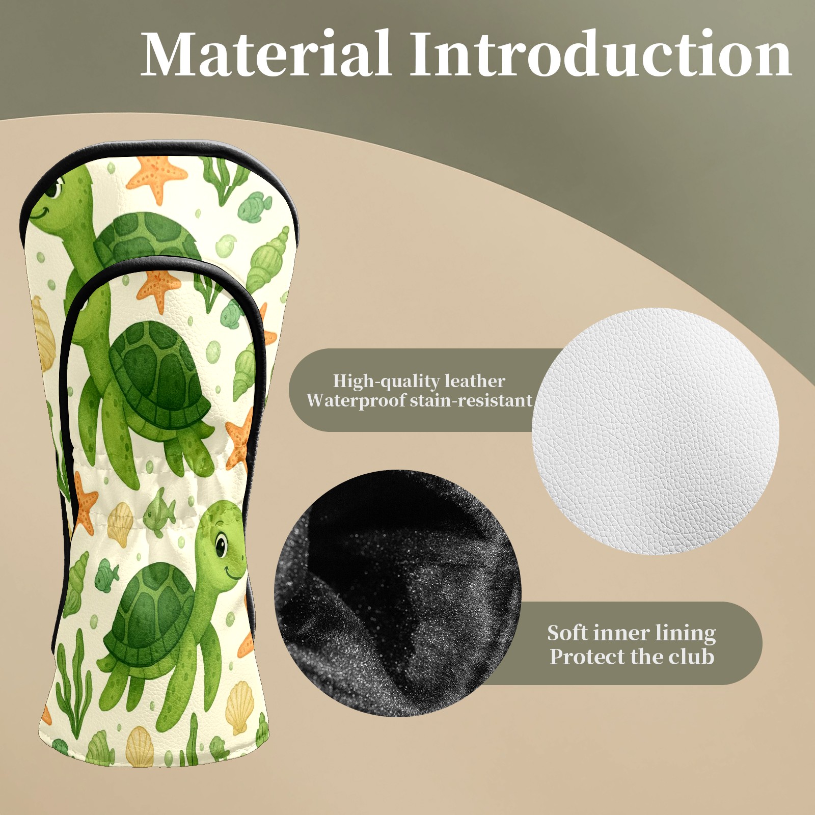 Golf Club Head Covers Fresh Turtle Yellow Premium Plush Velvet Lining, Waterproof Golf Headcovers Driver & Fairway Woods for Scratch Protection Novelty Gift for Men & Women