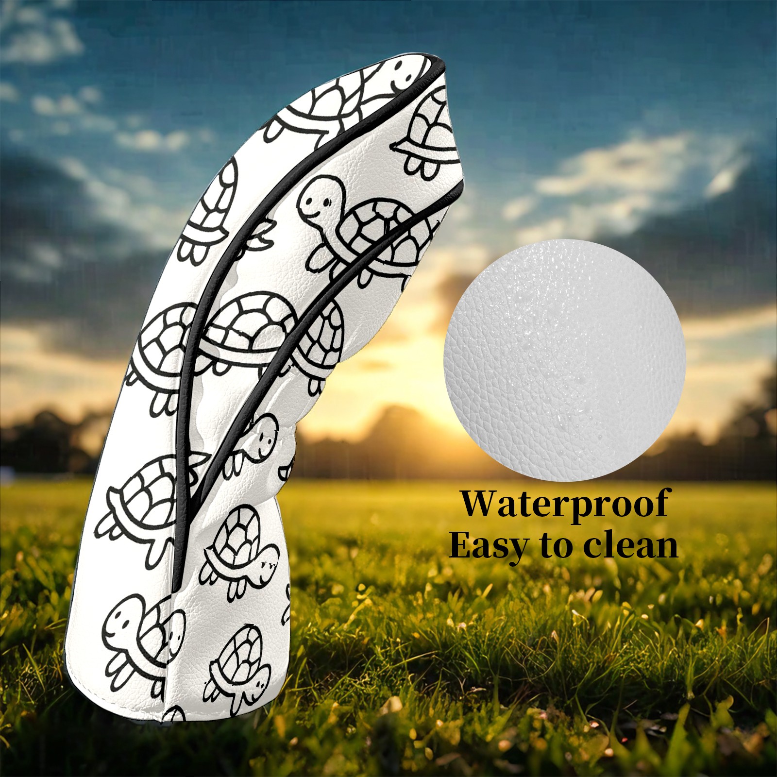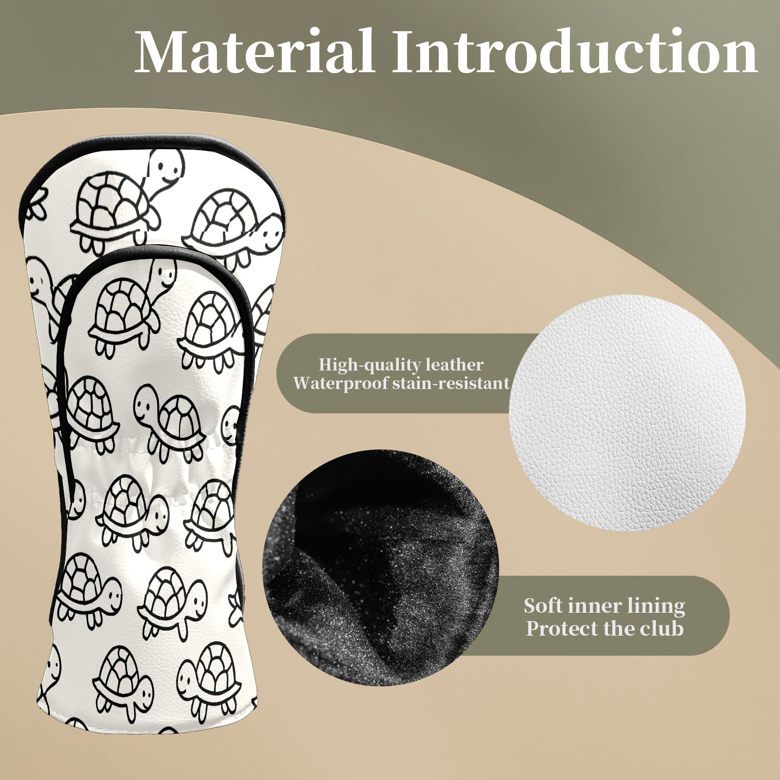 Golf Club Head Covers Simple Turtle White Premium Plush Velvet Lining, Waterproof Golf Headcovers Driver & Fairway Woods for Scratch Protection Novelty Gift for Men & Women