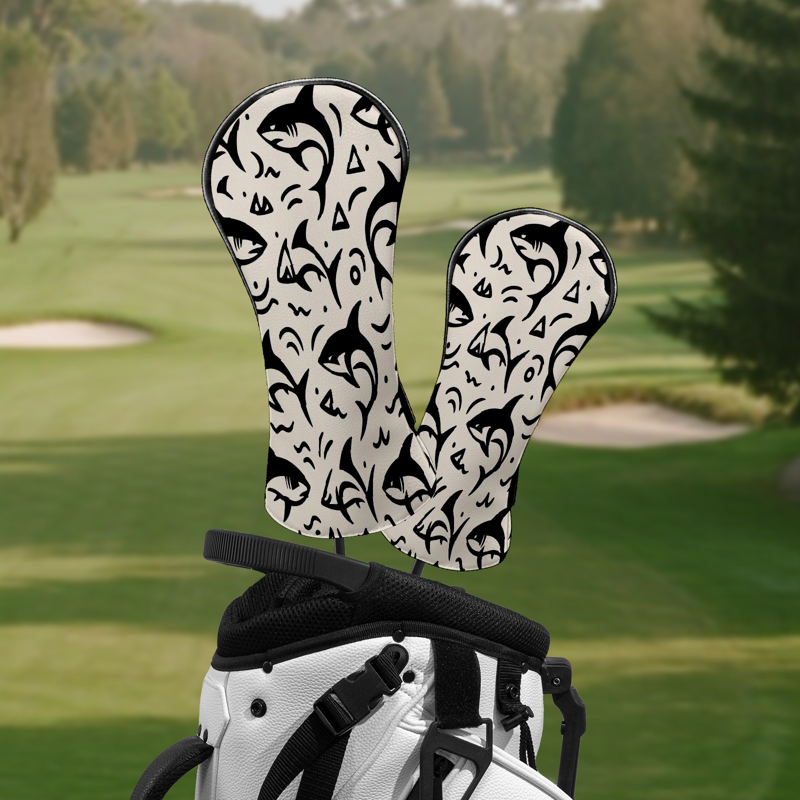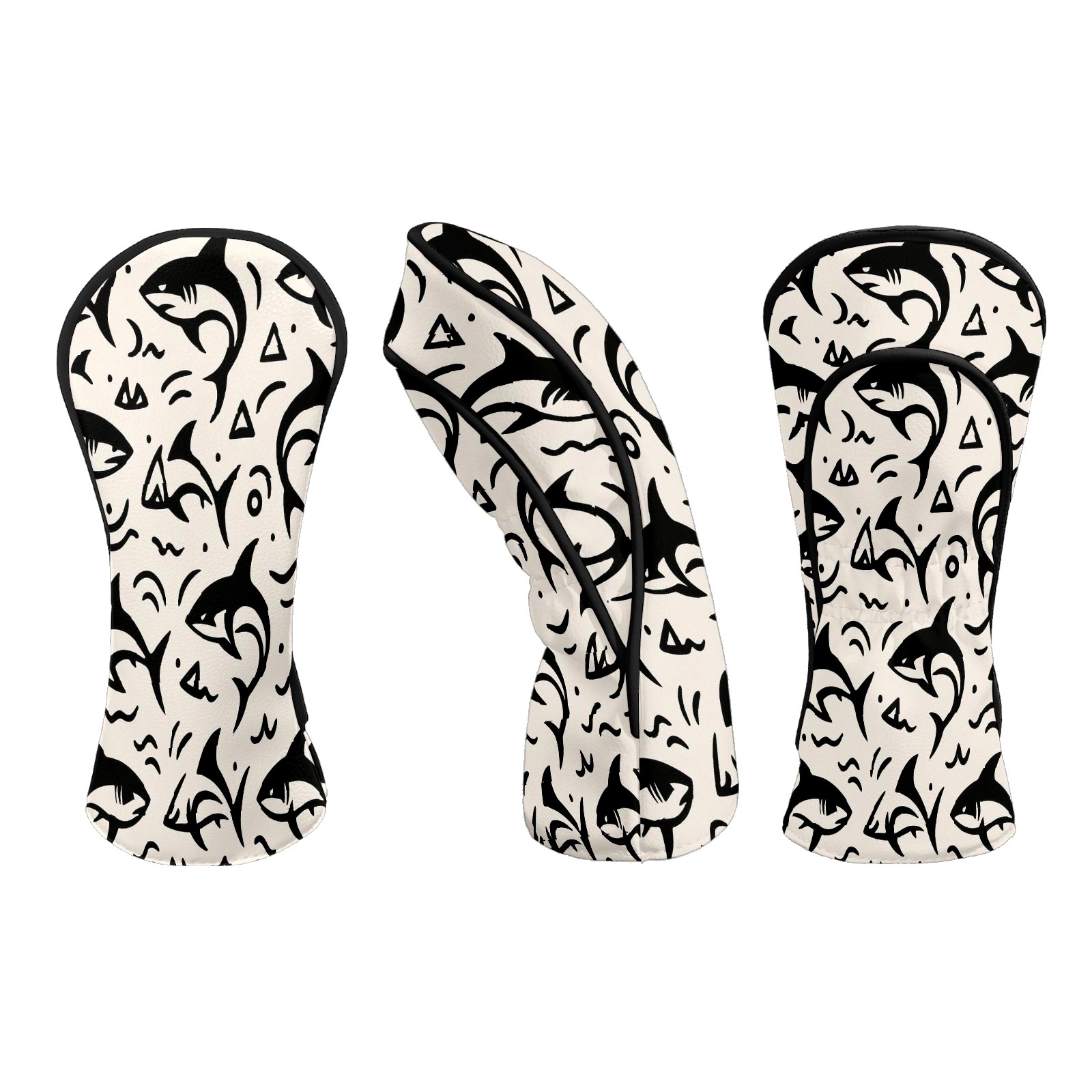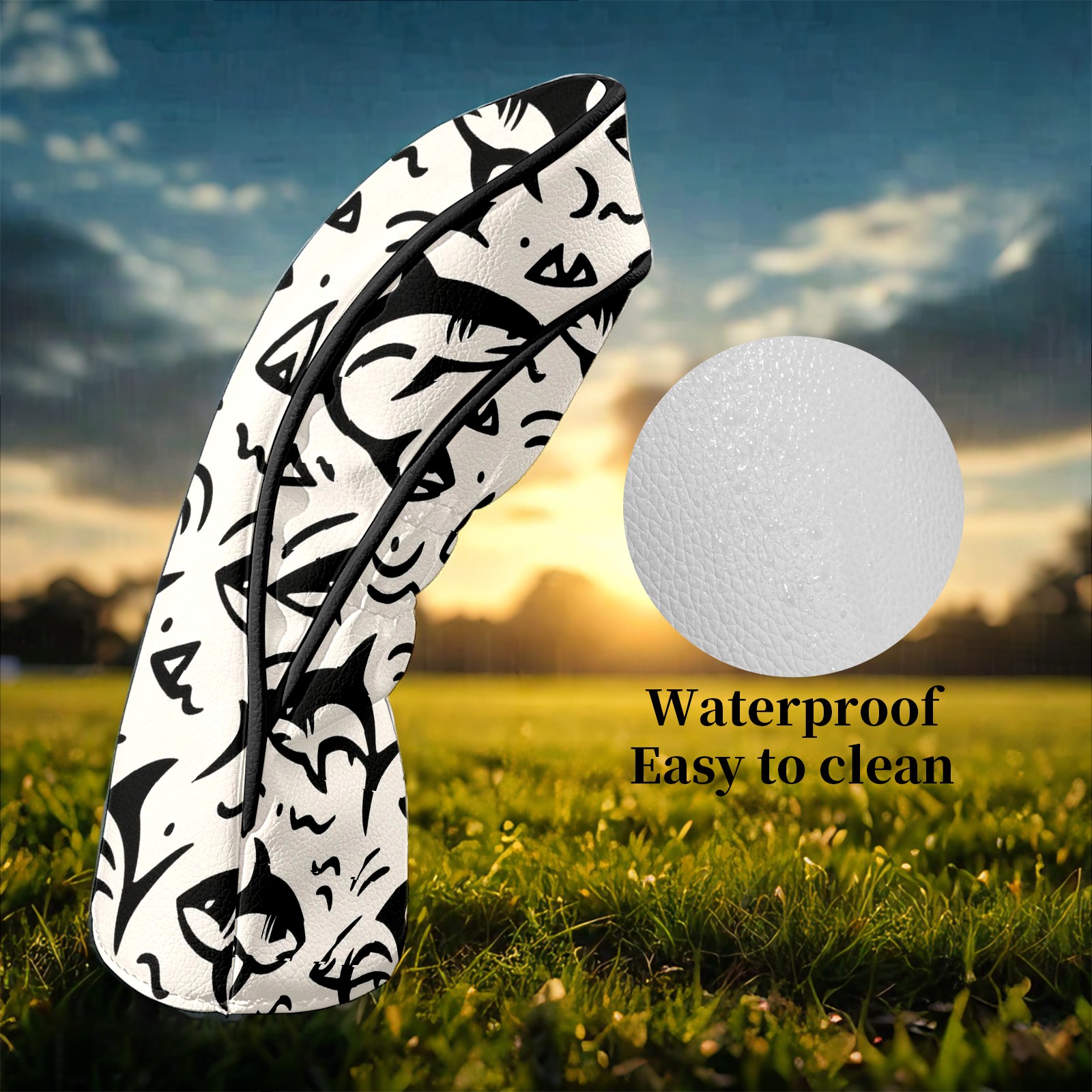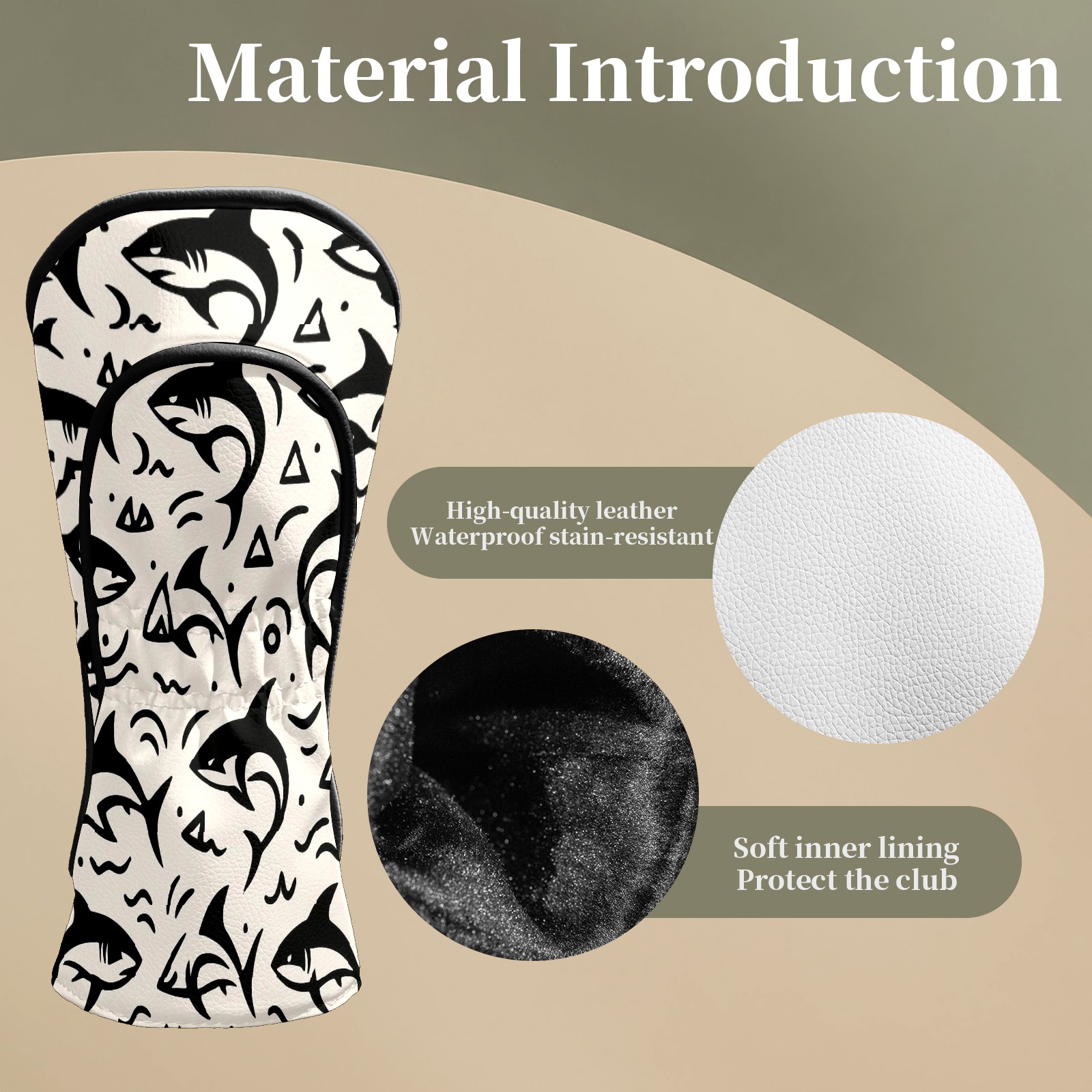 Golf Club Head Covers Cool Shark Black Premium Plush Velvet Lining, Waterproof Golf Headcovers Driver & Fairway Woods for Scratch Protection Novelty Gift for Men & Women