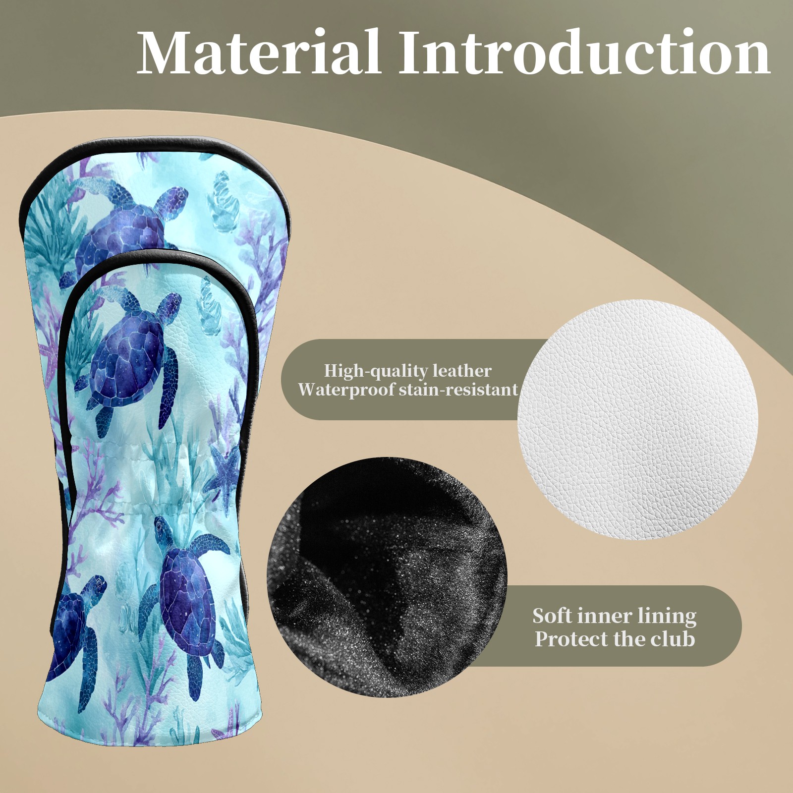 Golf Club Head Covers Dreamy Turtle Blue Premium Plush Velvet Lining, Waterproof Golf Headcovers Driver & Fairway Woods for Scratch Protection Novelty Gift for Men & Women